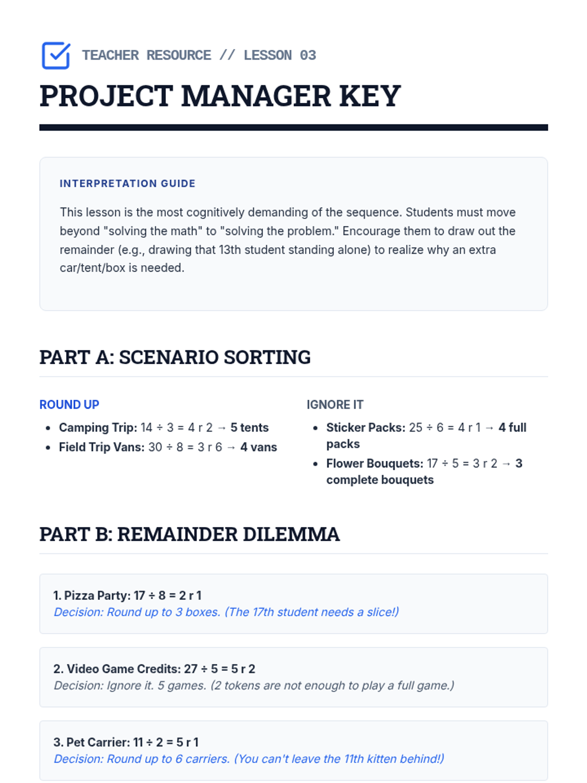 A 12-lesson Tier 2 intervention sequence for 6th-grade students struggling with multi-digit division. This sequence uses the Illustrative Mathematics approach (area models and partial quotients) and aligns with the All Learners Network's High Leverage Concepts to build deep conceptual understanding of the relationship between multiplication and division.
