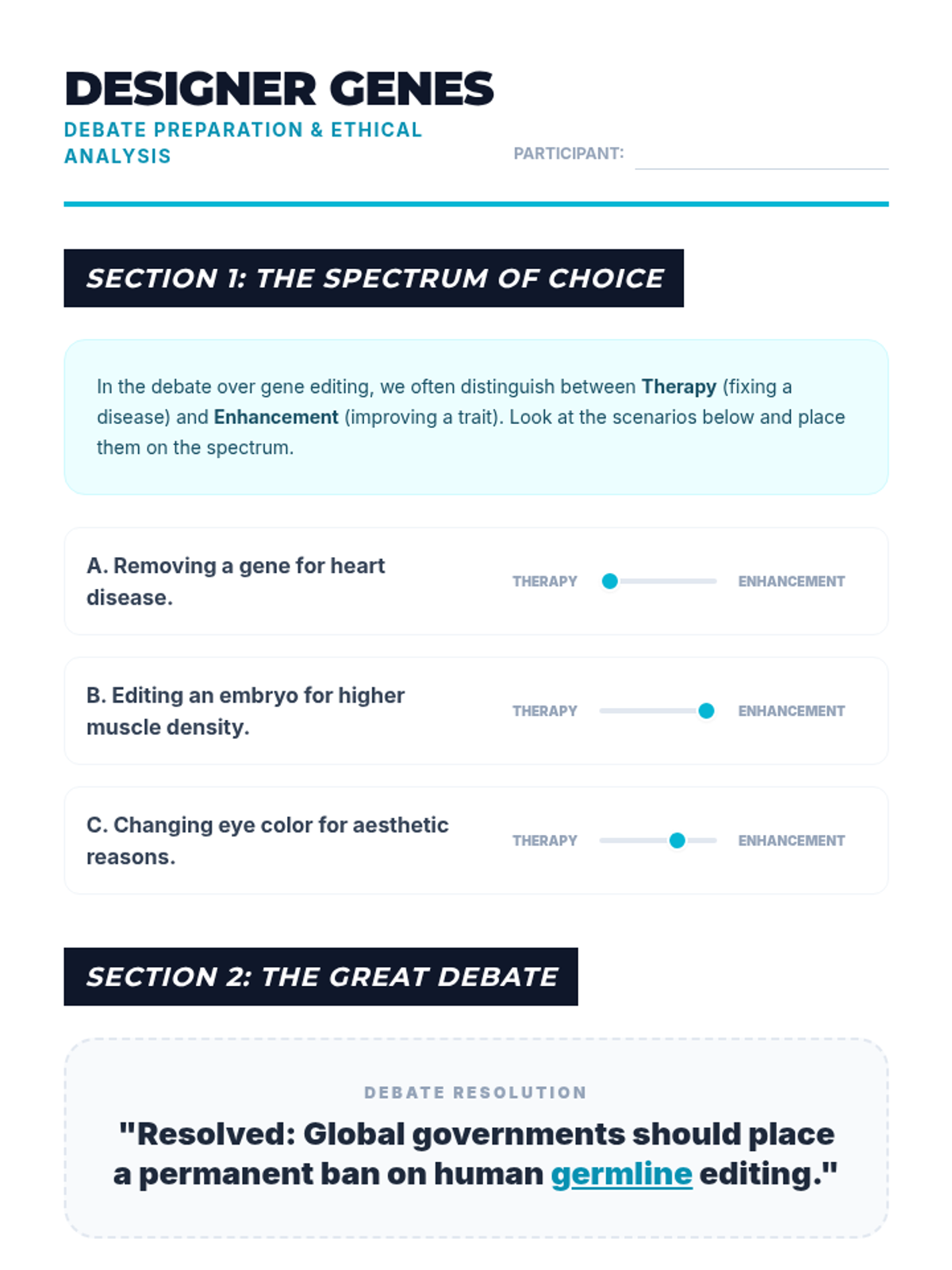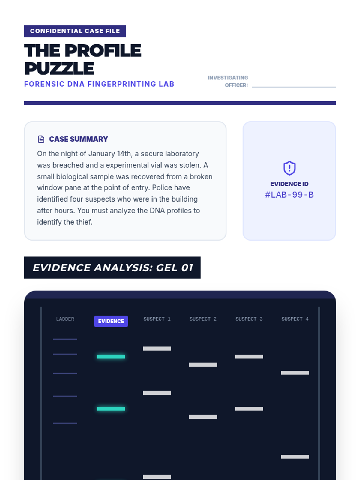 A 5-lesson sequence exploring DNA technology through the lens of forensics and biotechnology. Students apply knowledge of DNA structure to understand restriction enzymes, gel electrophoresis, DNA profiling, PCR, and the ethics of genetic engineering.