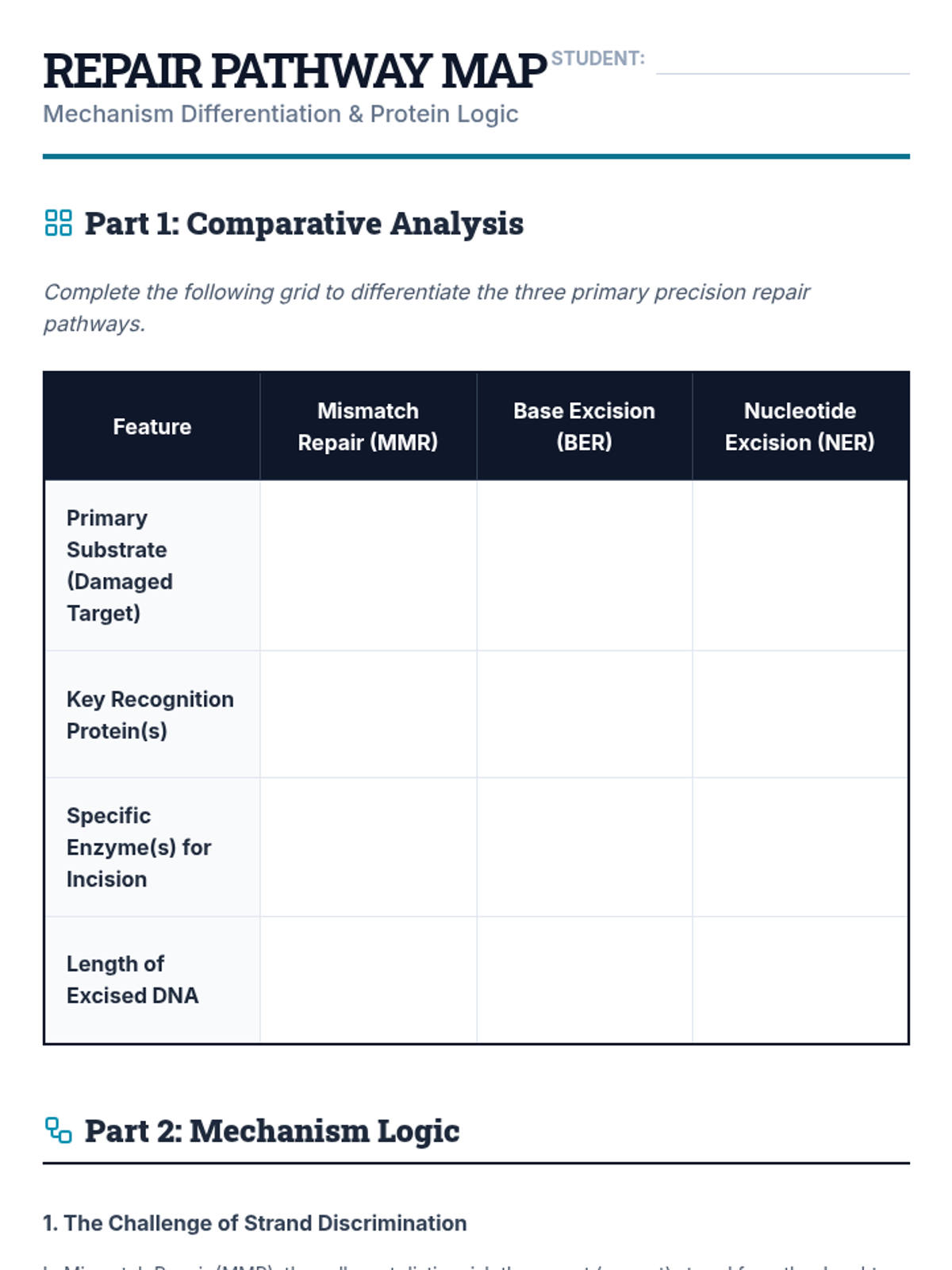 A comprehensive undergraduate-level sequence exploring the molecular biology of DNA damage, repair mechanisms, and the genomic consequences of instability, from chemical lesions to cancer progression.