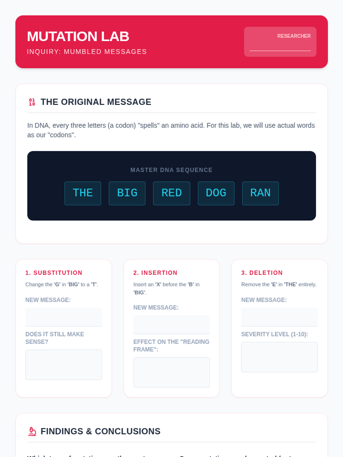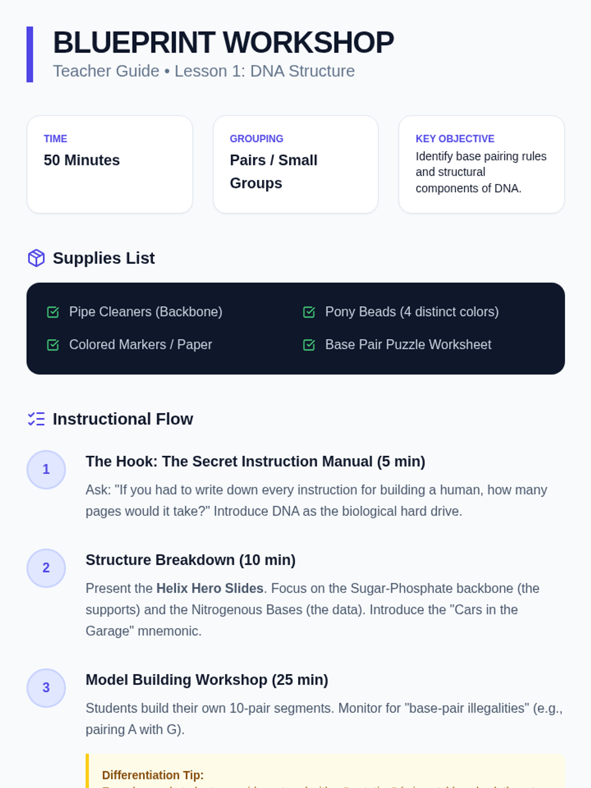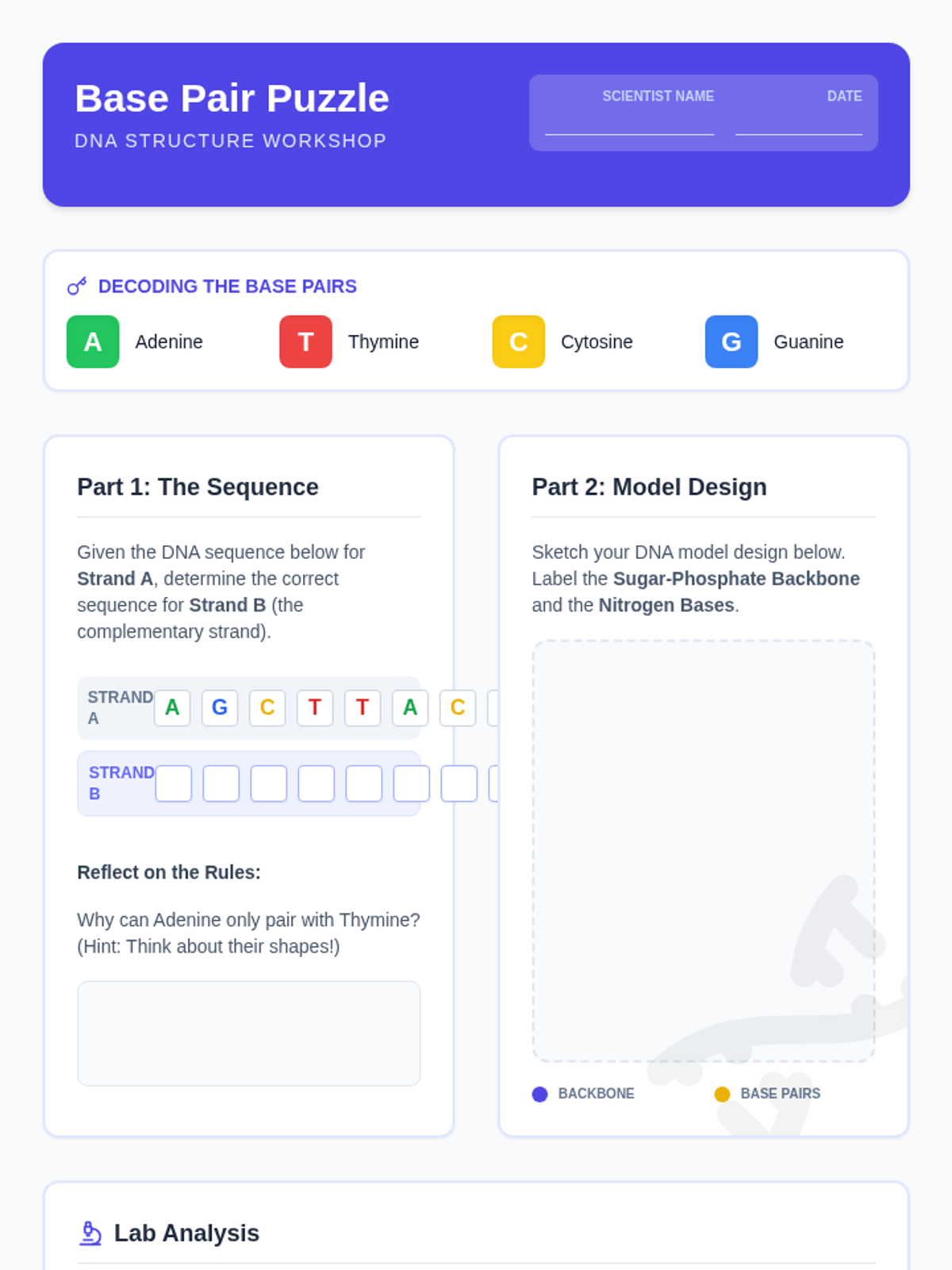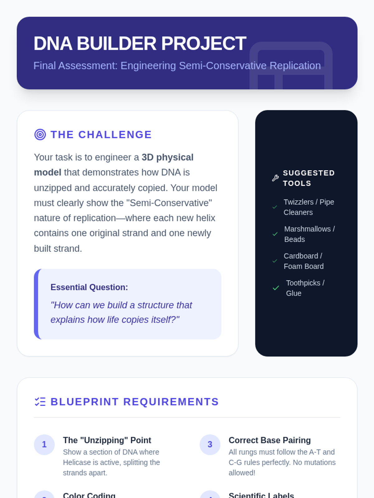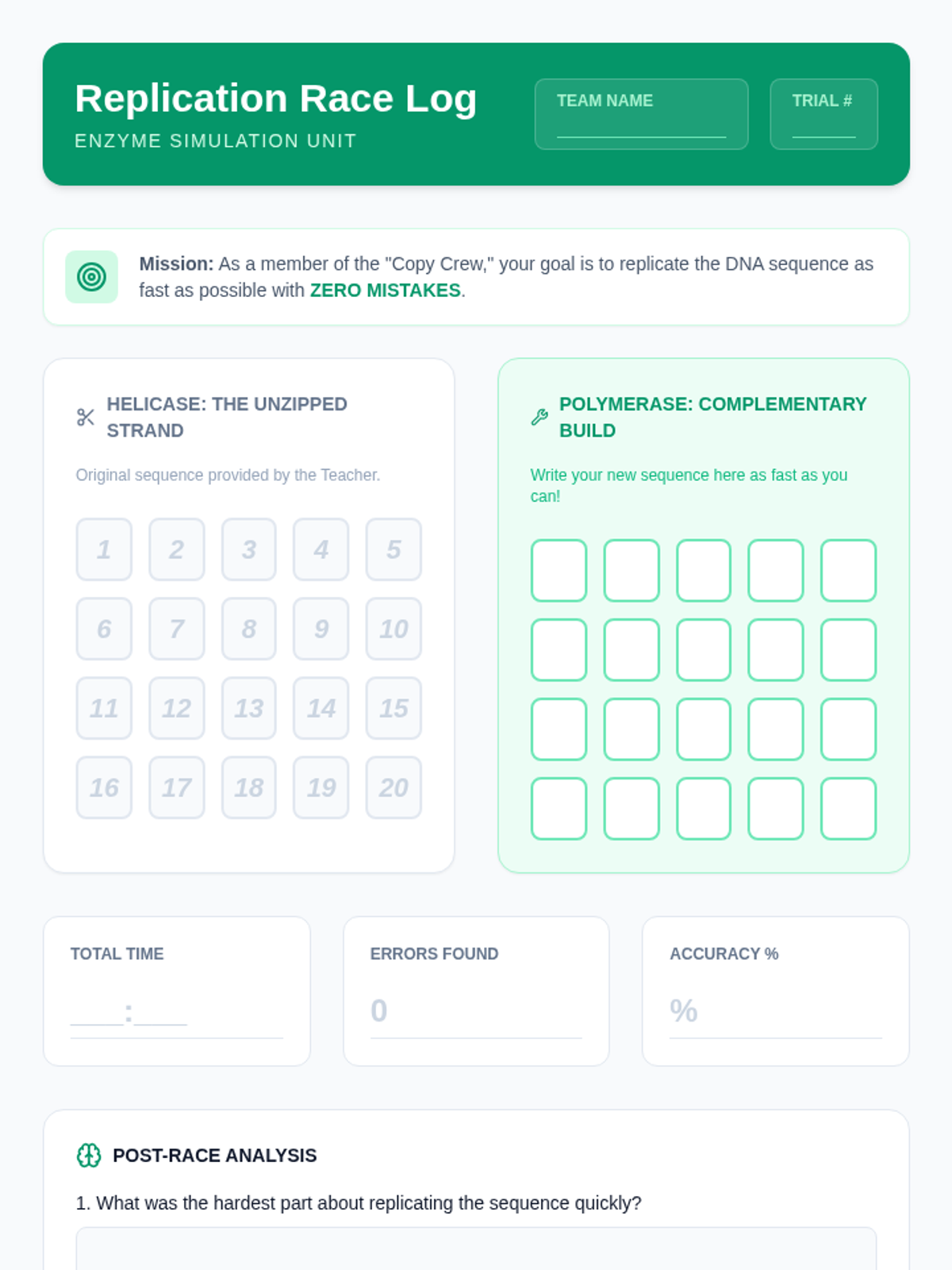 Students explore the molecular mechanisms of DNA replication, focusing on base-pairing rules, the role of enzymes, and the impact of mutations to understand how genetic continuity is maintained across generations.