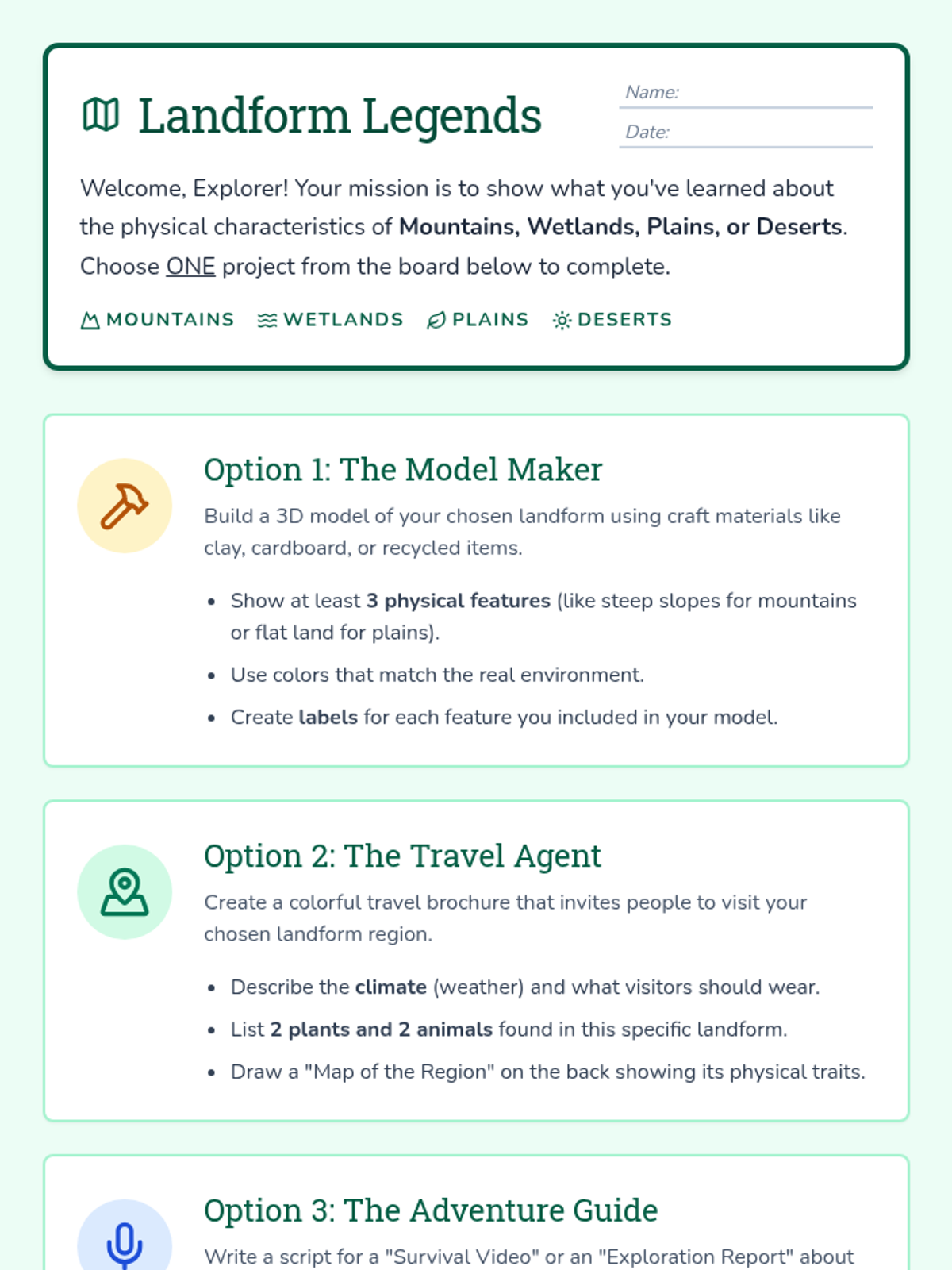 A collection of project-based STEM and social studies lessons designed to engage 3rd and 6th grade students in creative exploration and technical skill-building.