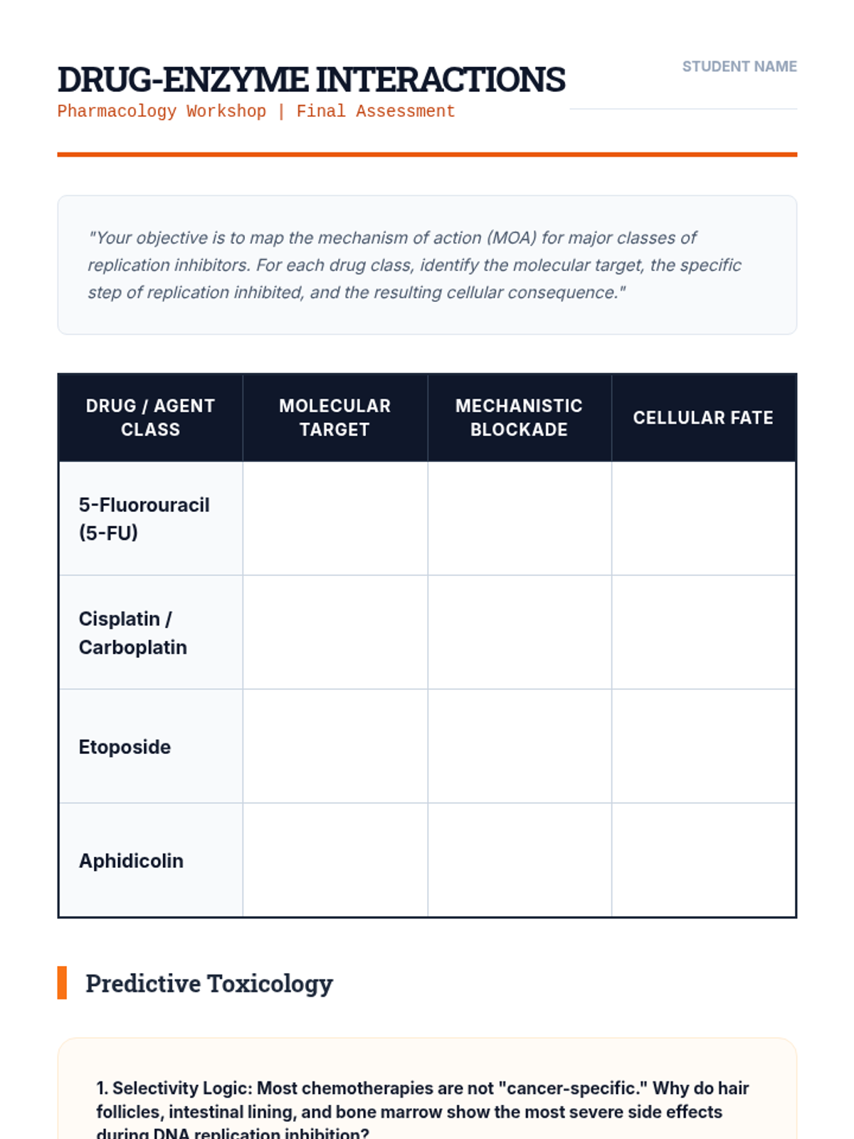 A comprehensive undergraduate-level sequence on the enzymology and kinetics of DNA replication, exploring the molecular machinery, fidelity mechanisms, and clinical applications of replication inhibition.