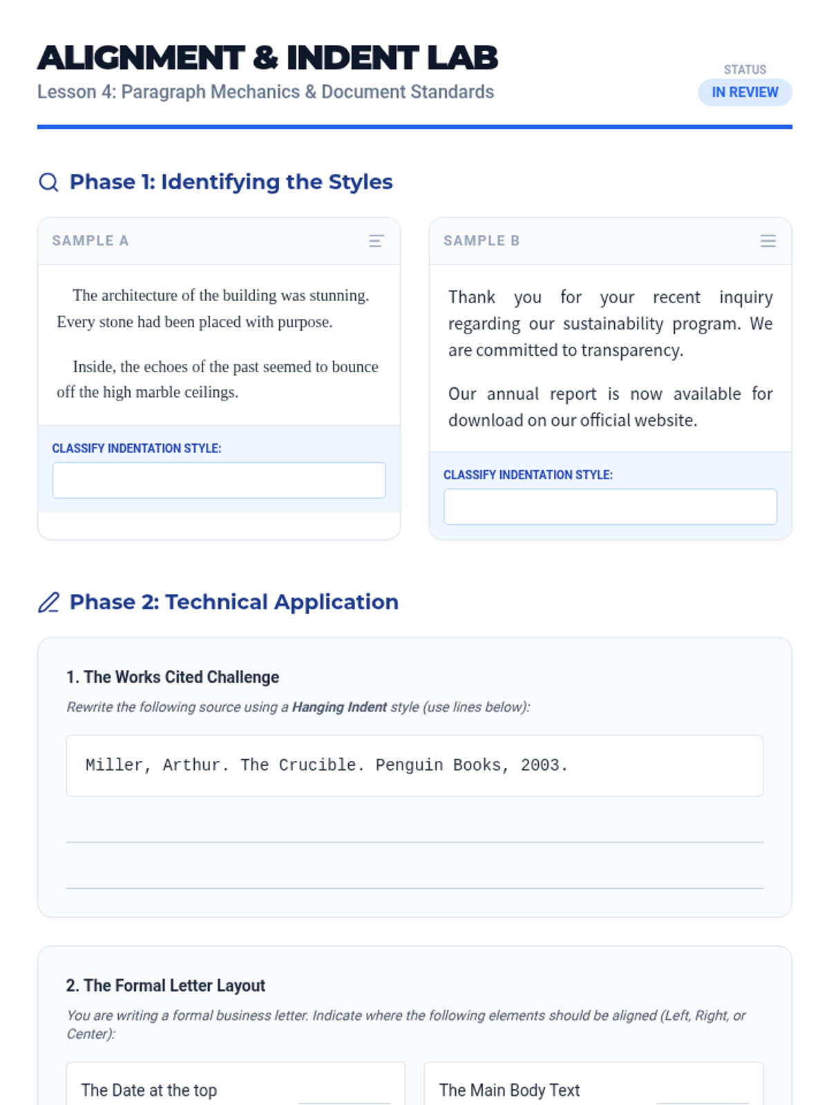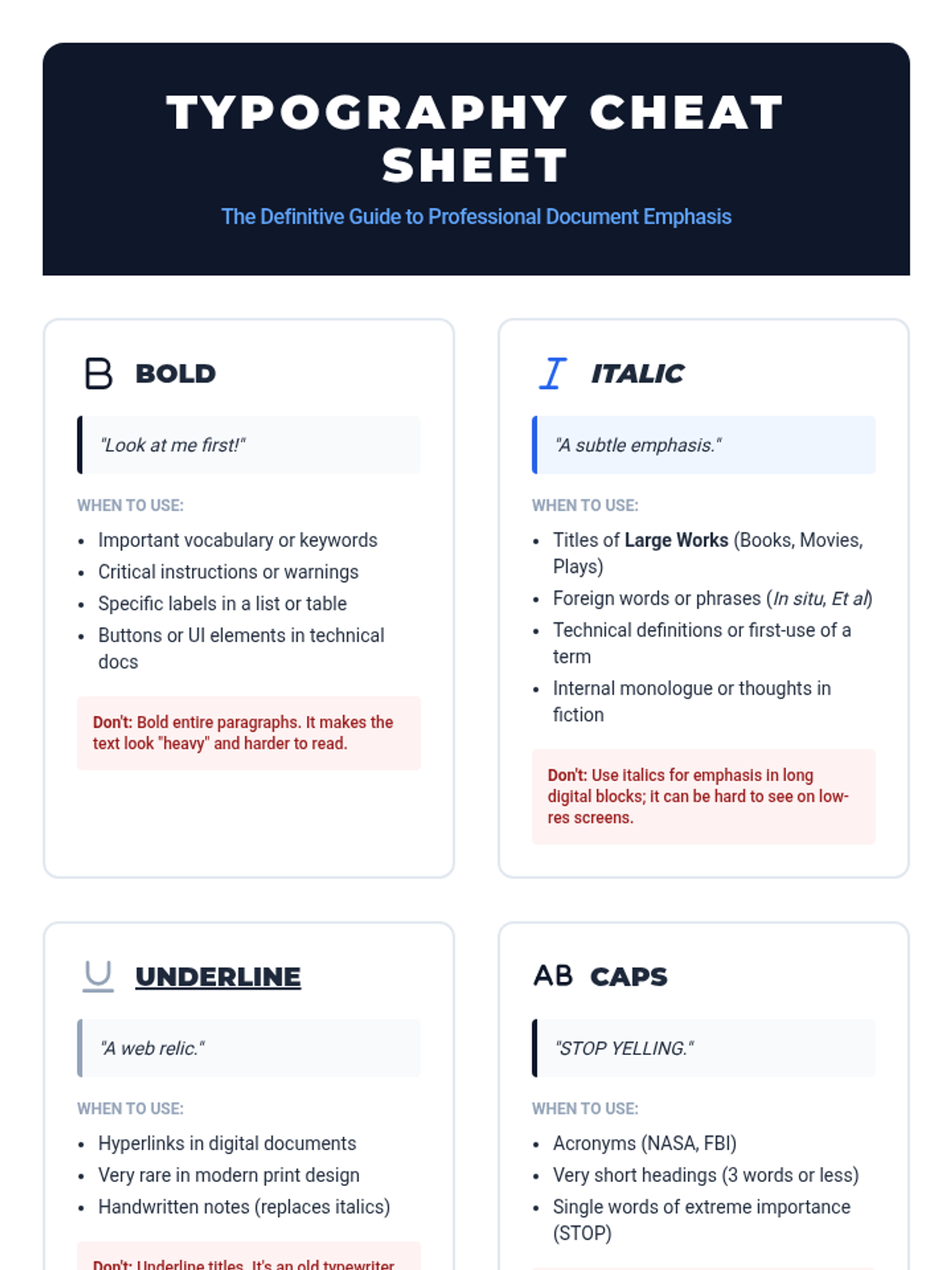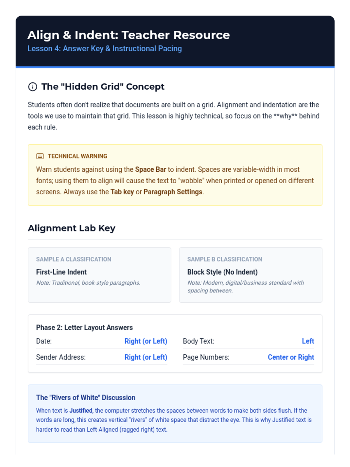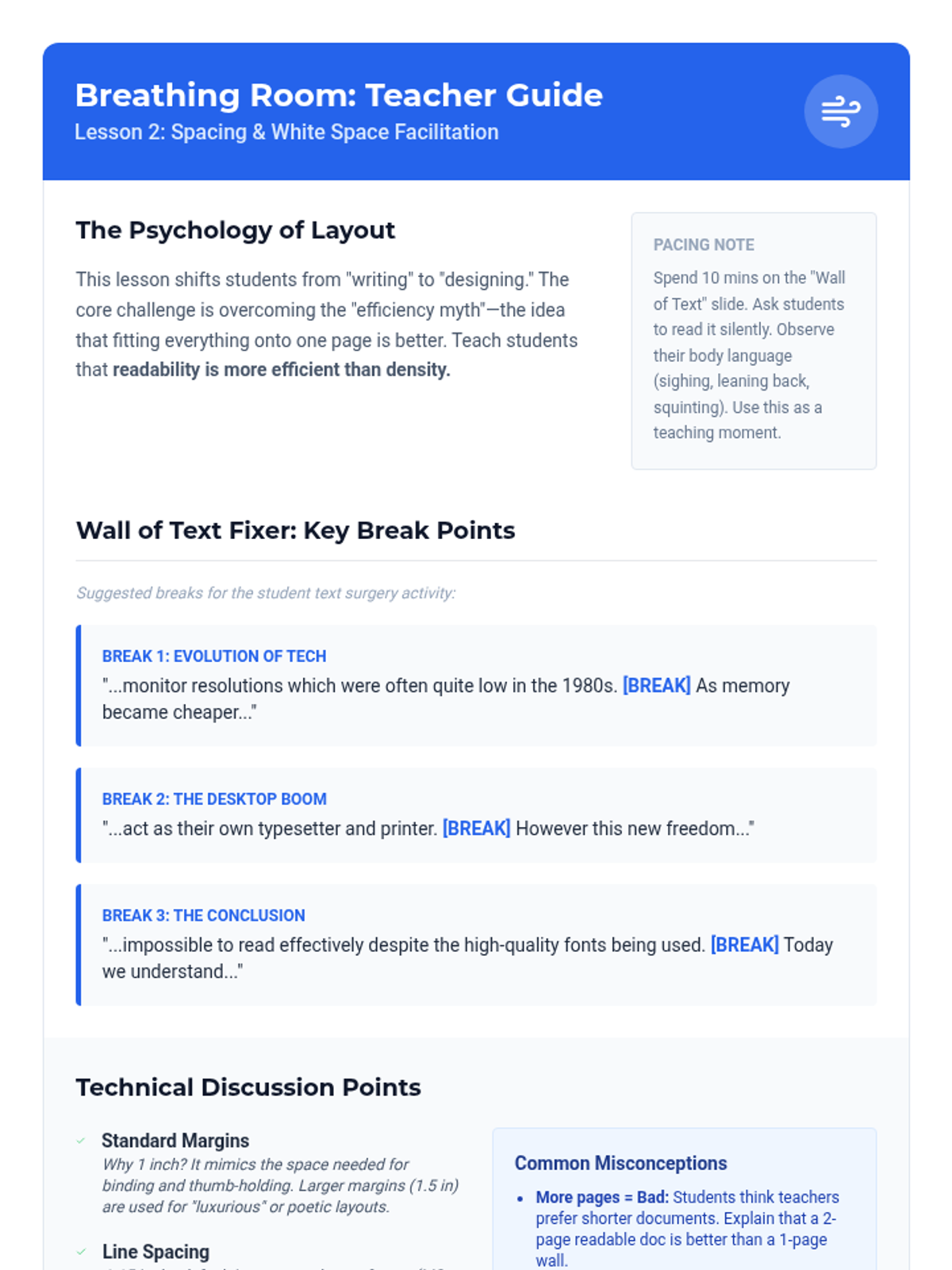 This sequence teaches 10th-grade students the principles of document design and visual hierarchy. Students explore how headings, white space, typography, and alignment function as tools for cognitive accessibility and effective communication.