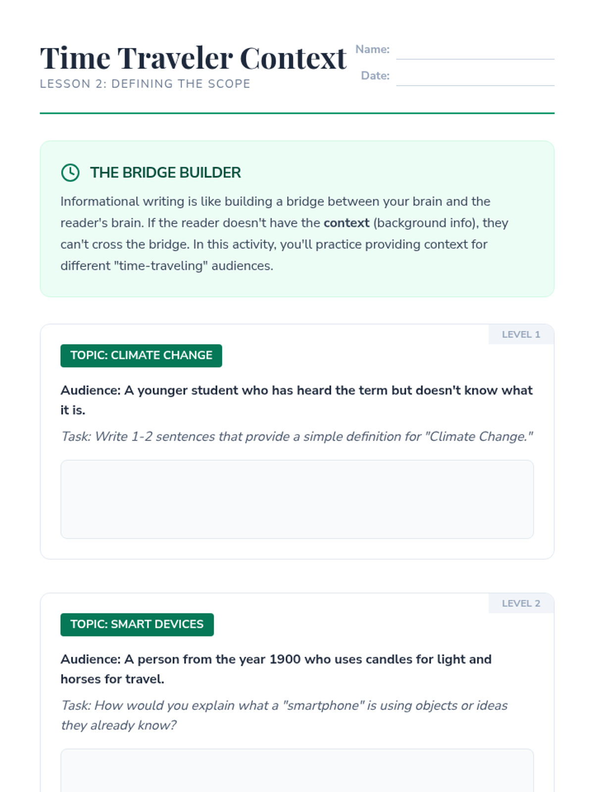 A 5-lesson sequence for 6th-grade students focused on drafting effective introductions and conclusions for informational writing. Students learn to create roadmaps for their readers, establish necessary context, synthesize information in conclusions, and use the 'circle back' technique for structural cohesion.