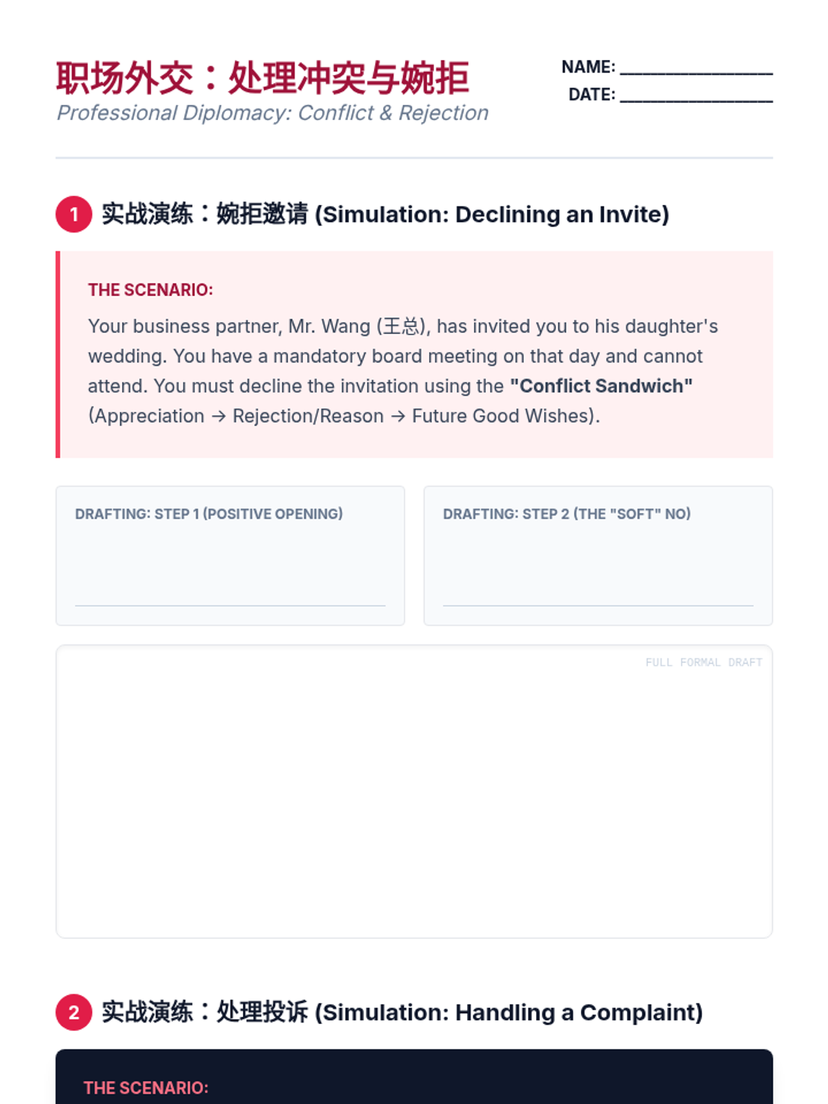 This sequence prepares advanced 12th Grade Mandarin students for professional environments by mastering formal written Chinese (Gong Wen). Students explore register, honorifics, and indirect communication strategies across various business scenarios.