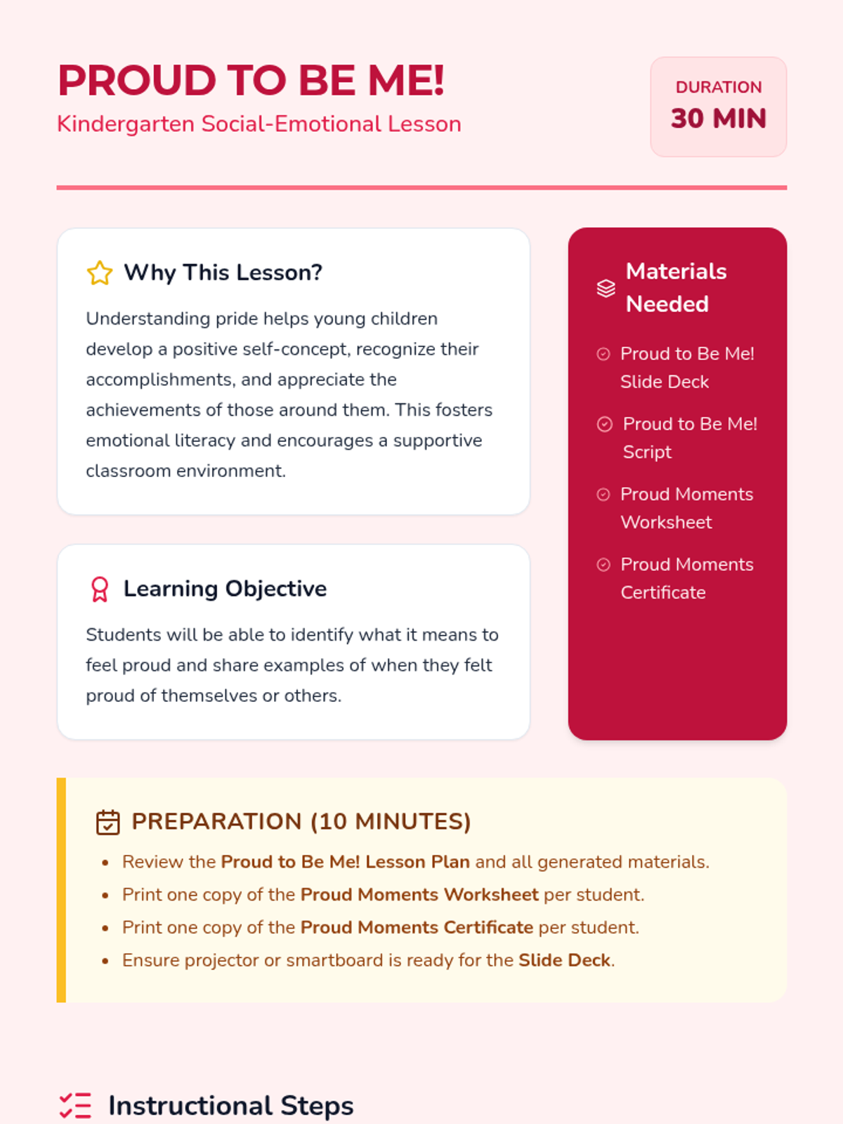 A social-emotional learning sequence for elementary students focused on empathy, community, and self-worth. It includes a lesson on Martin Luther King Jr.'s message of peace and equality, followed by a lesson on recognizing and celebrating personal pride and accomplishments.
