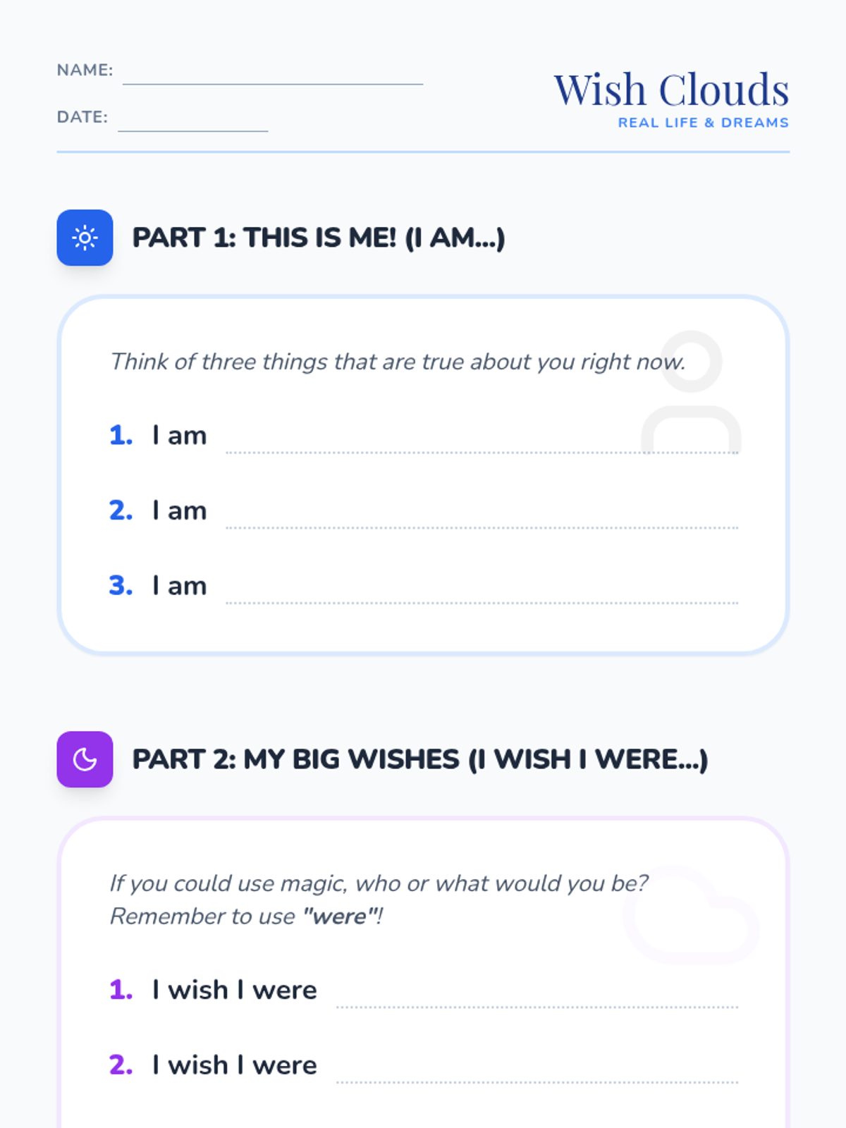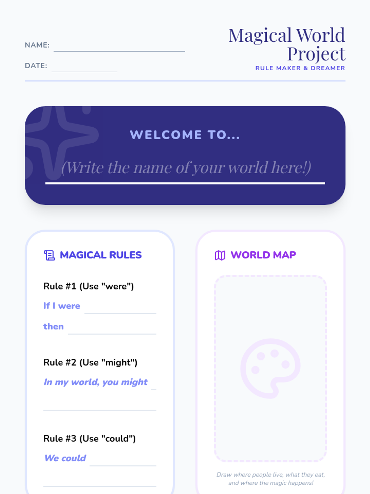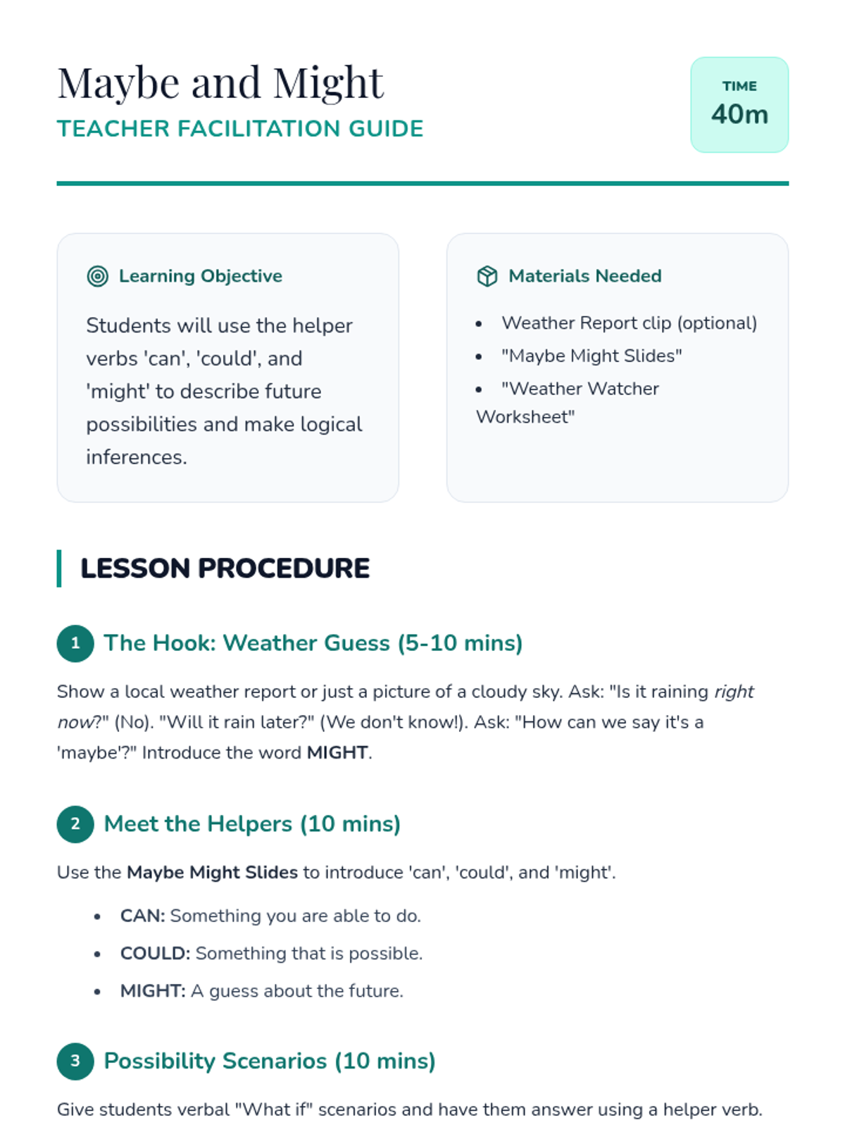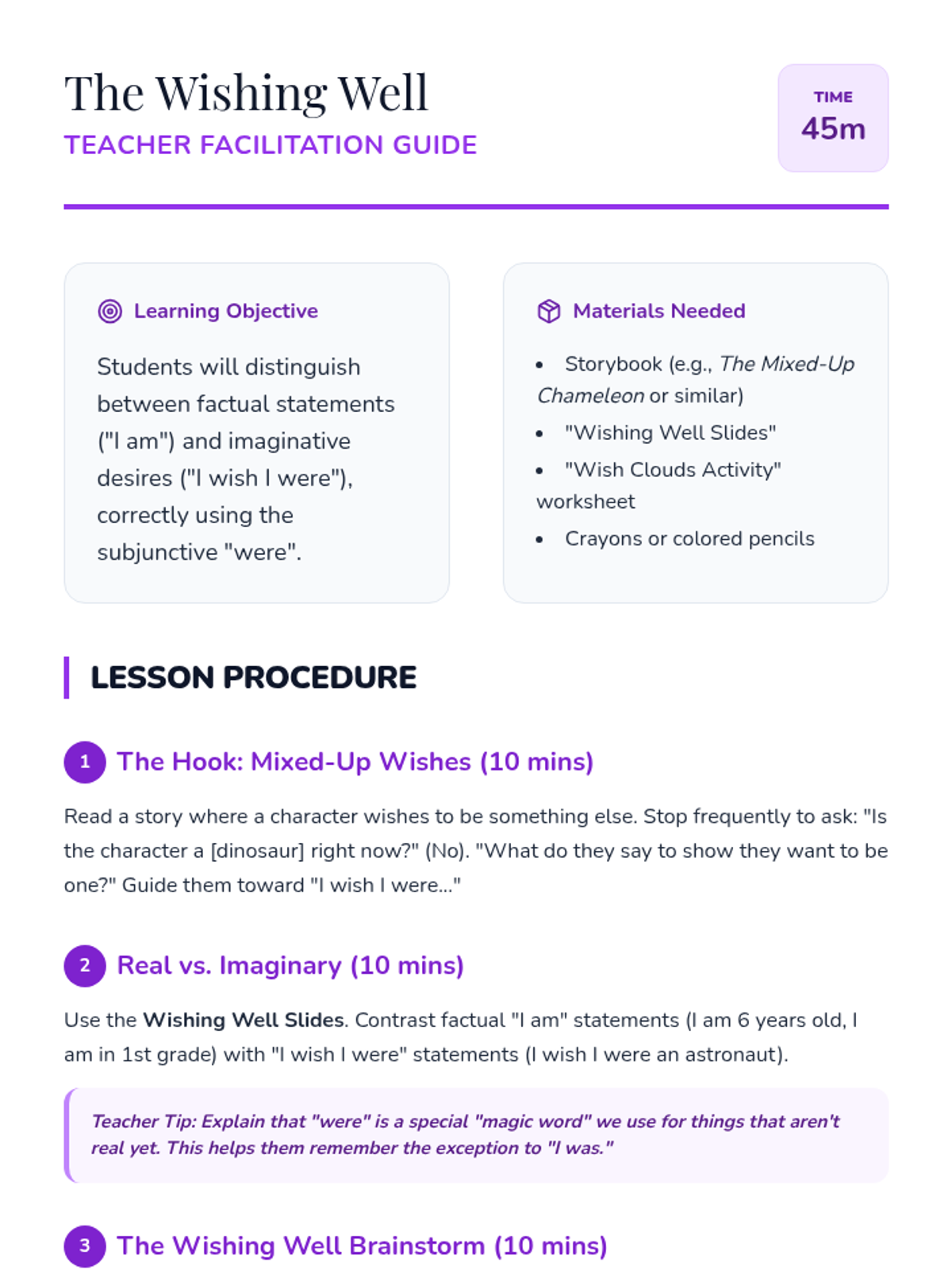 A 1st-grade grammar sequence exploring conditional and subjunctive moods through the lens of imagination. Students learn to use 'If/Then' structures, express wishes with 'I wish I were', and use helper verbs to describe possibilities and hypothetical worlds.