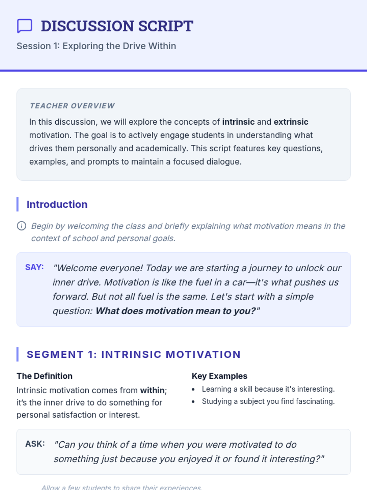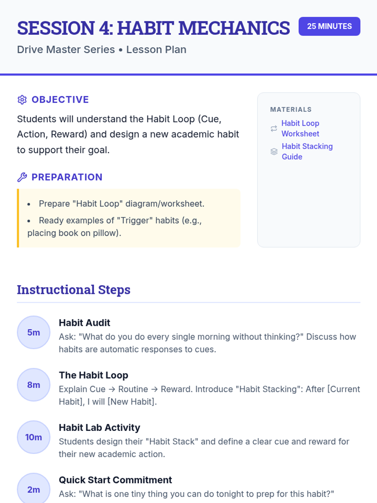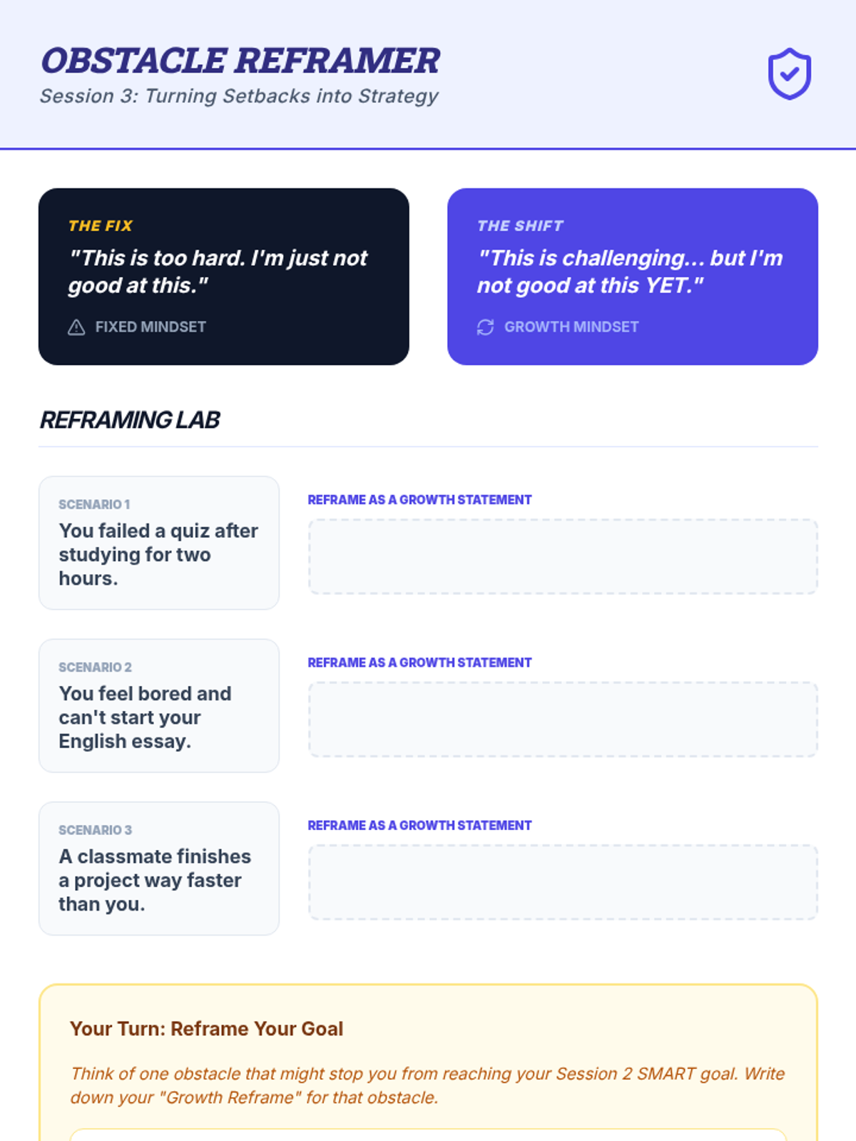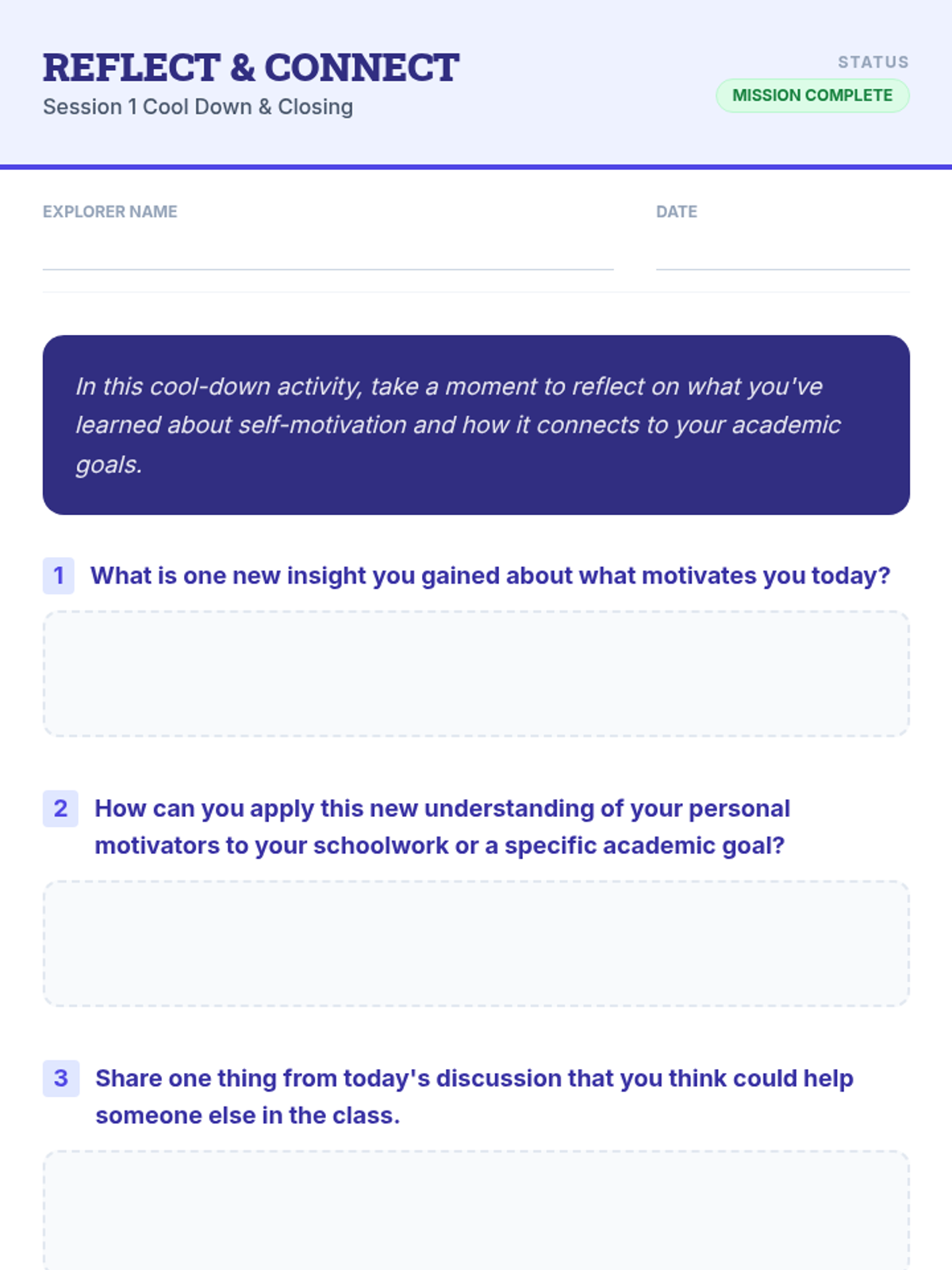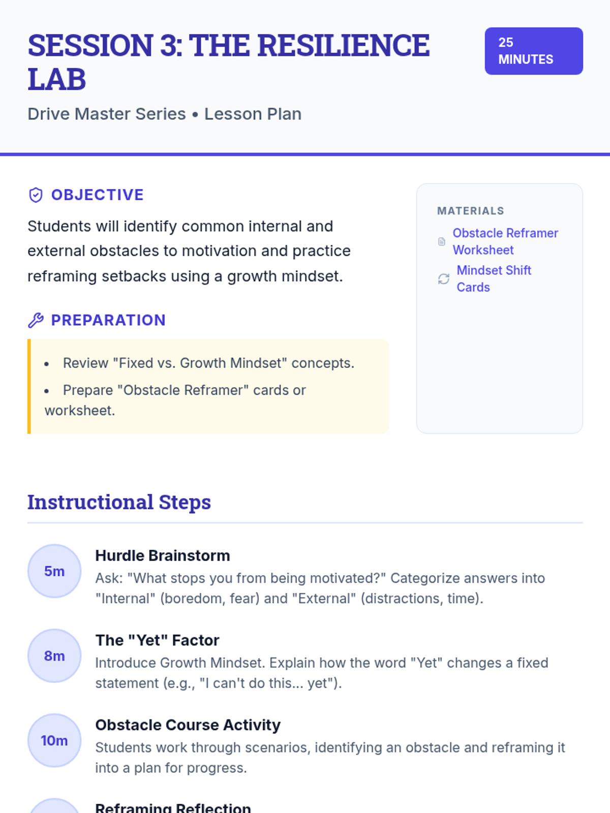 A comprehensive 6-session series designed for 8th-grade students to explore and enhance self-motivation. Students develop goal-setting skills, learn to overcome obstacles, and build habits that support long-term academic success through interactive workshops and personal reflection.