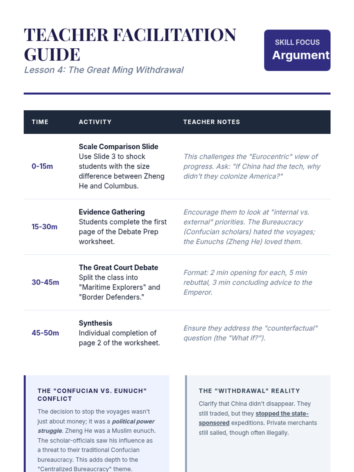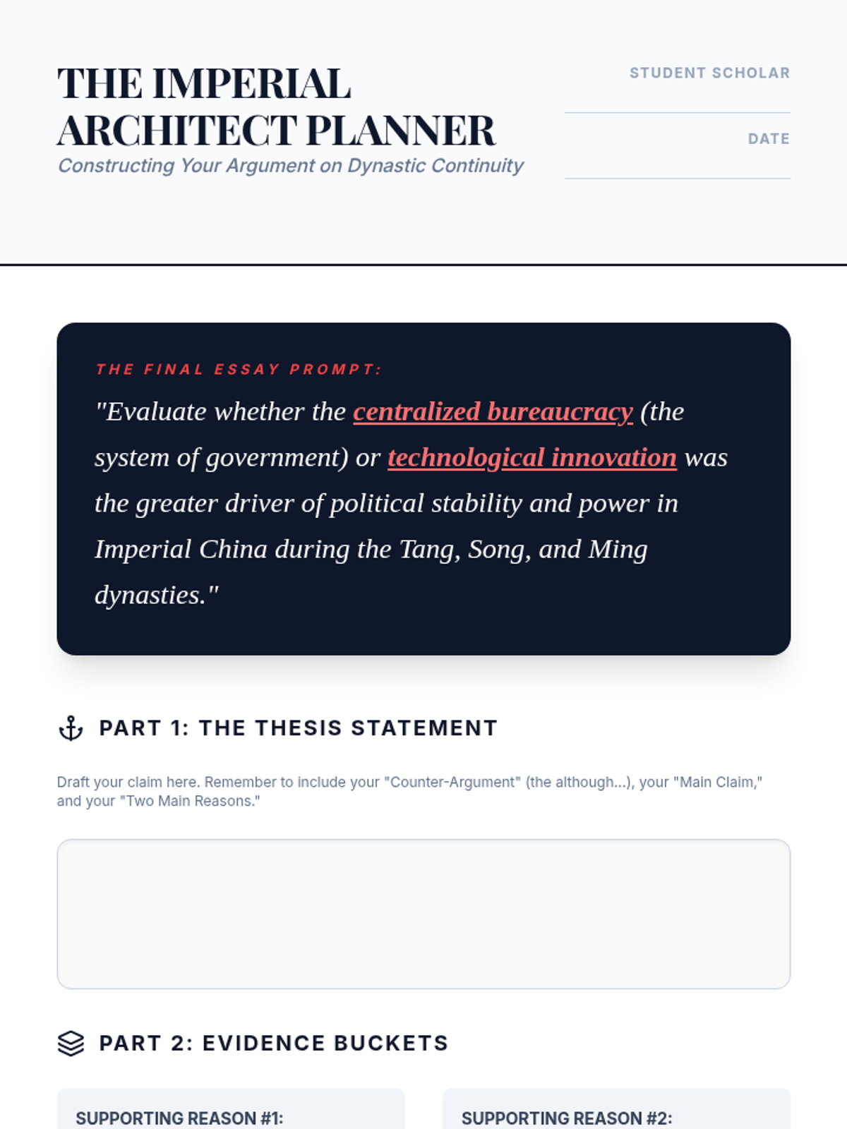 This sequence examines the political evolution and cultural achievements of China's Golden Ages through the Tang, Song, and Ming dynasties. Students will analyze how the Civil Service Examination system created a meritocratic bureaucracy that sustained stability and fostered technological innovation.