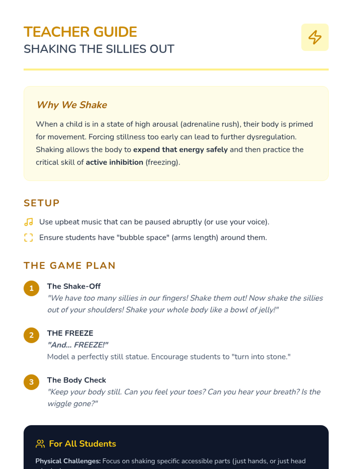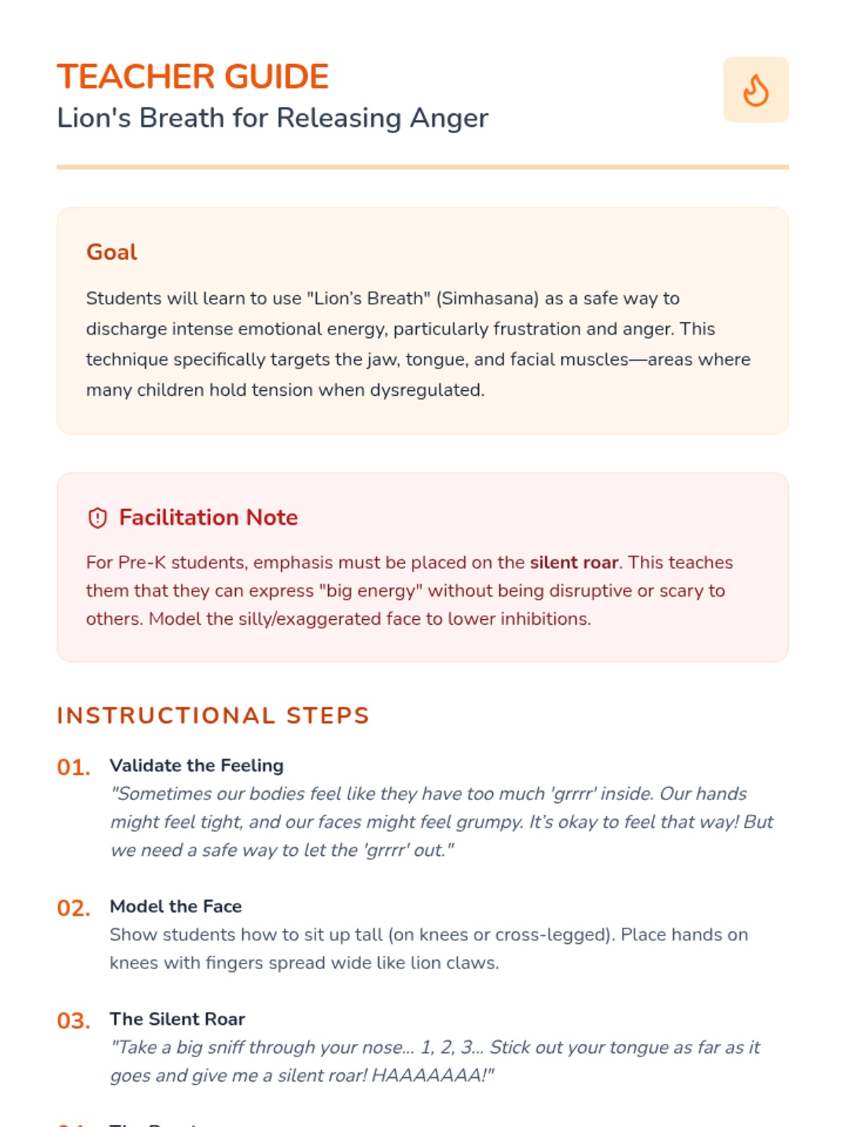 A sensory-focused sequence for Pre-K students to learn active breathwork and movement strategies for dysregulation recovery. Through animal imagery and tactile games, students build a toolkit of techniques to reset their nervous systems.