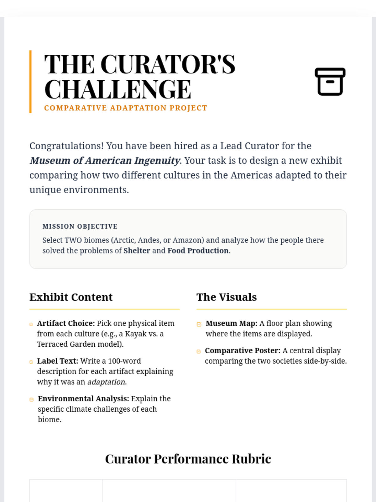 A 5-lesson sequence exploring how traditional societies in the Americas adapted to diverse biomes, focusing on Human-Environment Interaction (HEI) through case studies of the Arctic, Andes, and Amazon Rainforest.