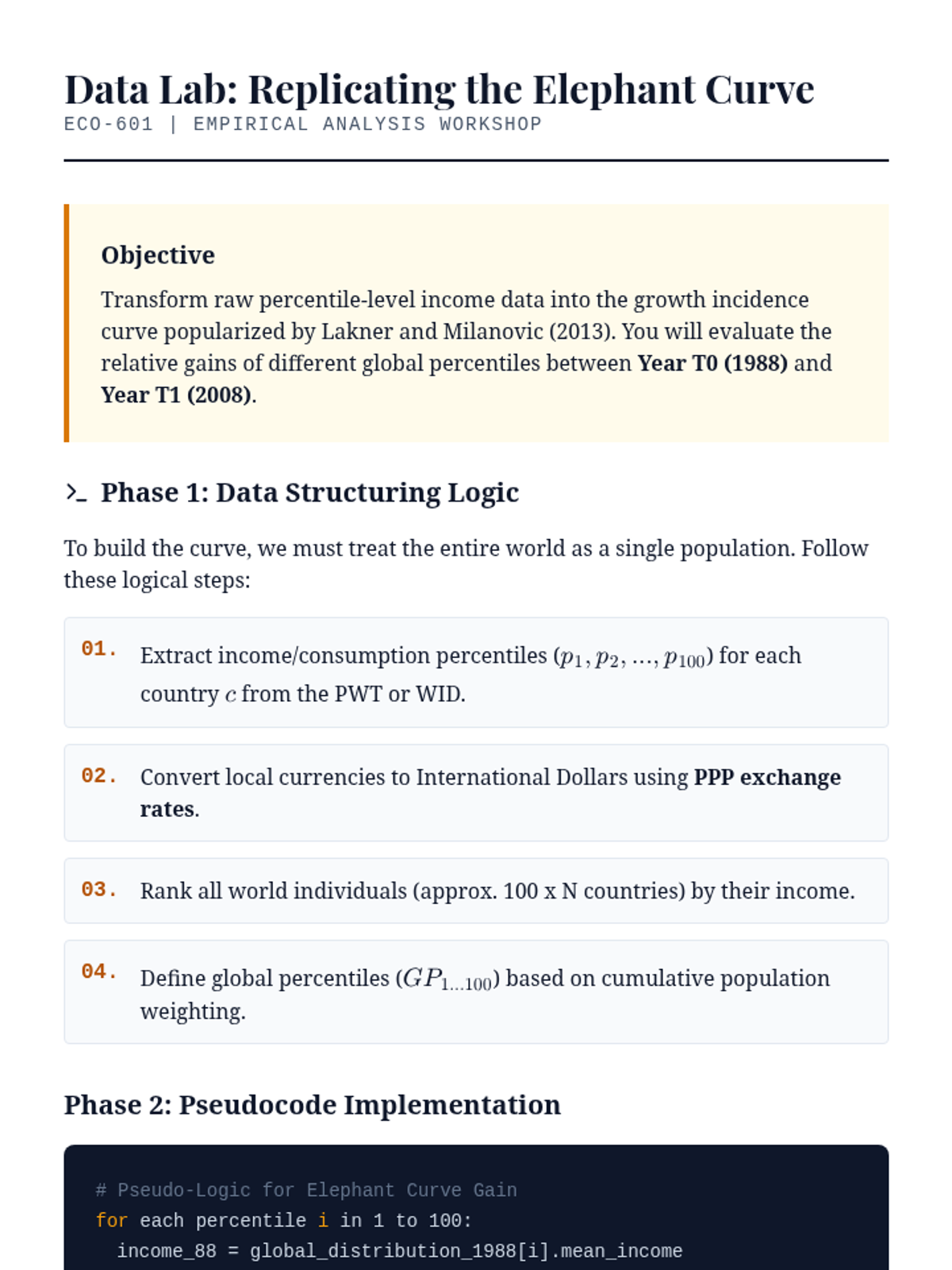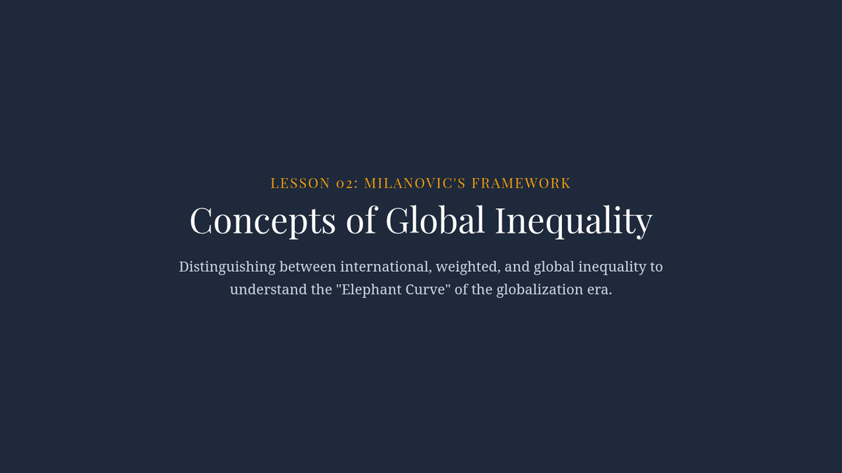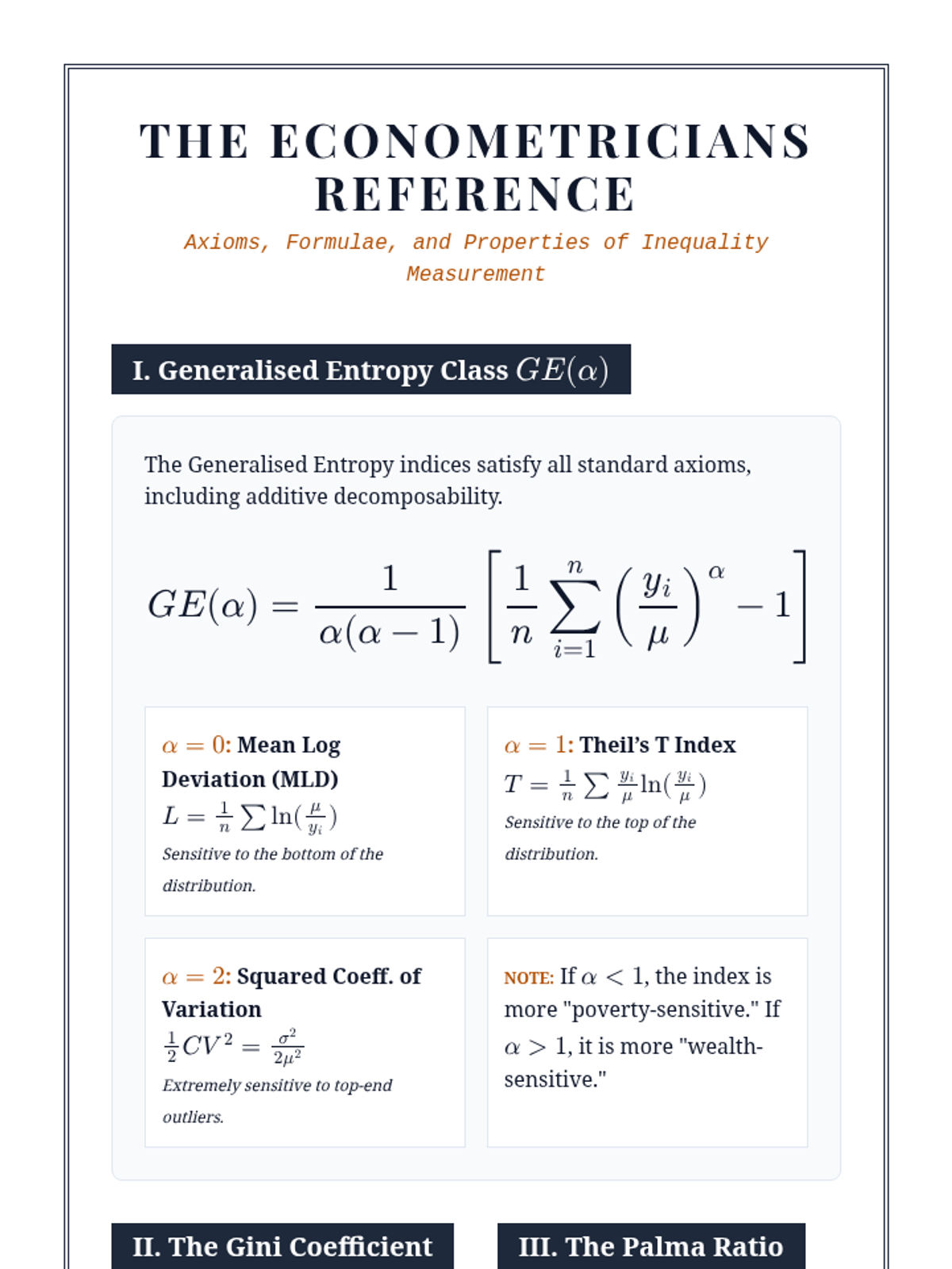 A graduate-level econometrics sequence focused on the rigorous measurement of global inequality. Students master advanced indices, decompose inequality components, evaluate PPP methodologies, and model economic convergence trends.