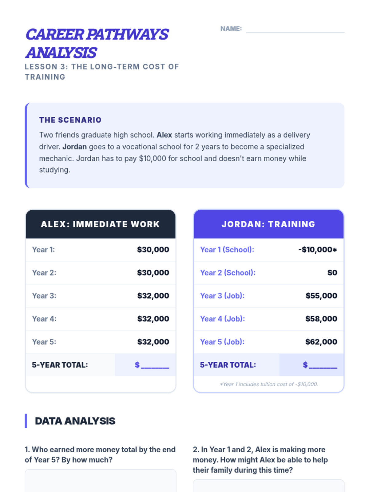 This sequence examines the practical barriers to social mobility through the lens of budgeting and cost-of-living analysis. Students analyze concrete data regarding income, housing, and unexpected expenses to understand the structural challenges of economic inequality.
