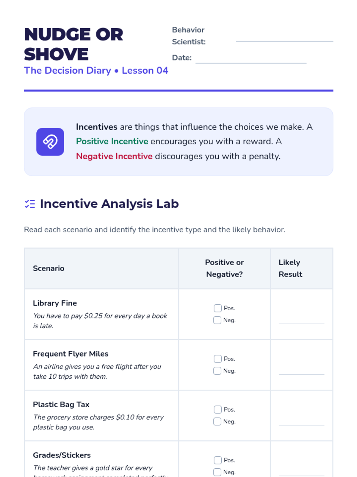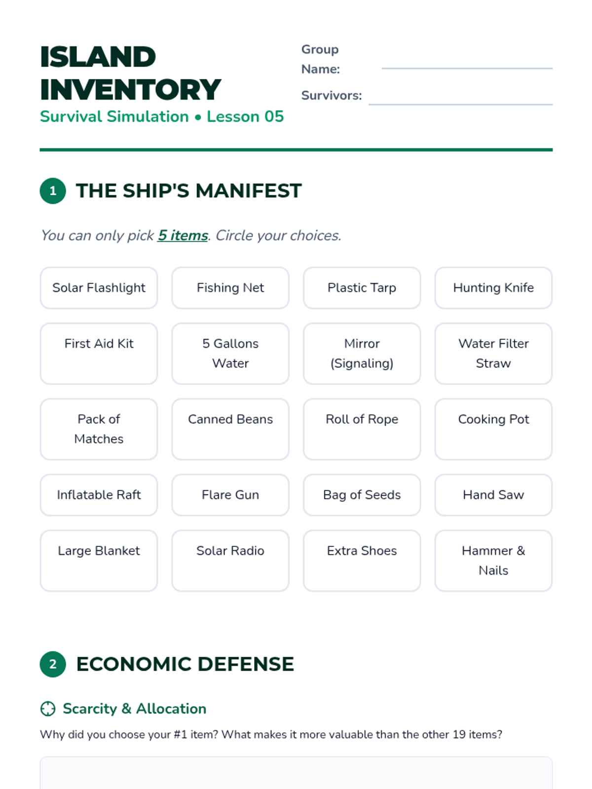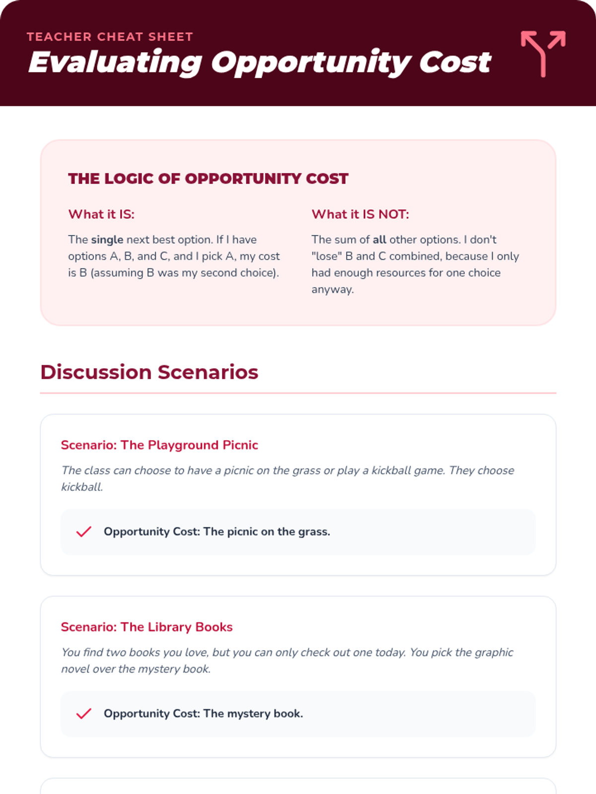 A comprehensive 4th Grade economics sequence focused on the fundamental problem of scarcity. Students explore needs vs. wants, the three factors of production, opportunity cost, and how incentives drive human behavior through hands-on simulations and real-world analysis.