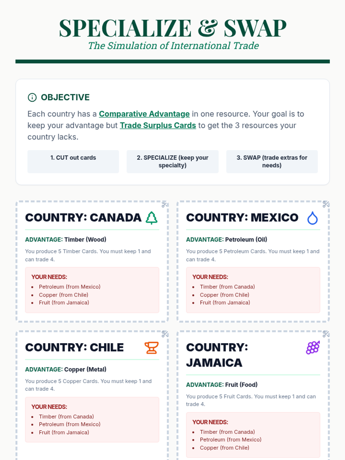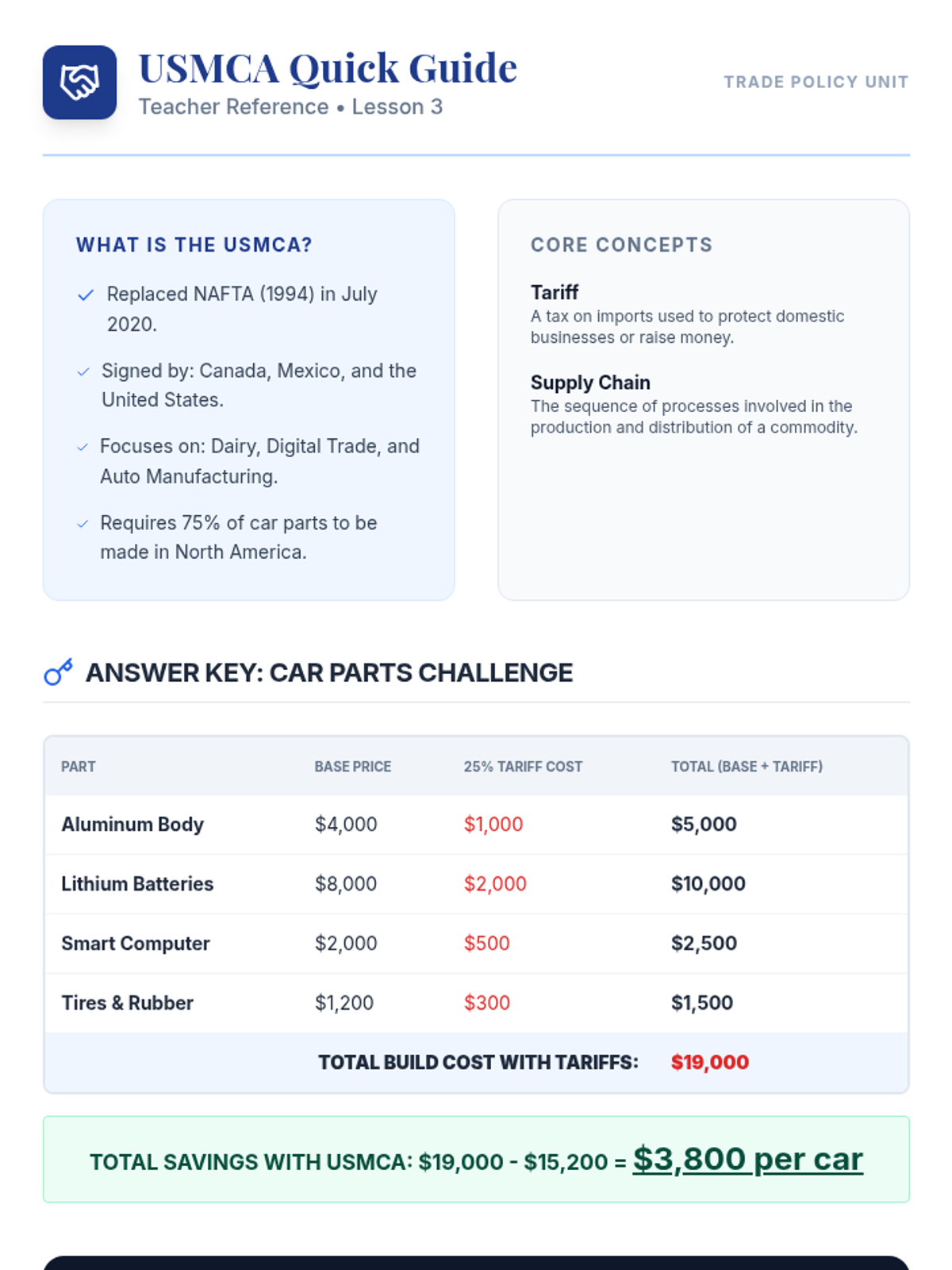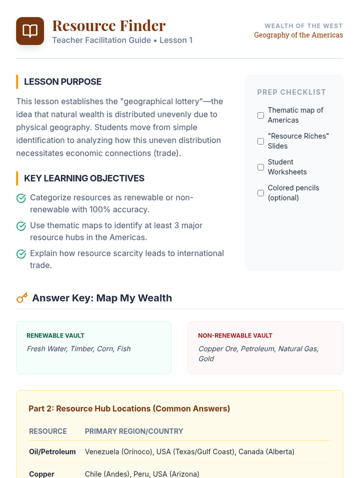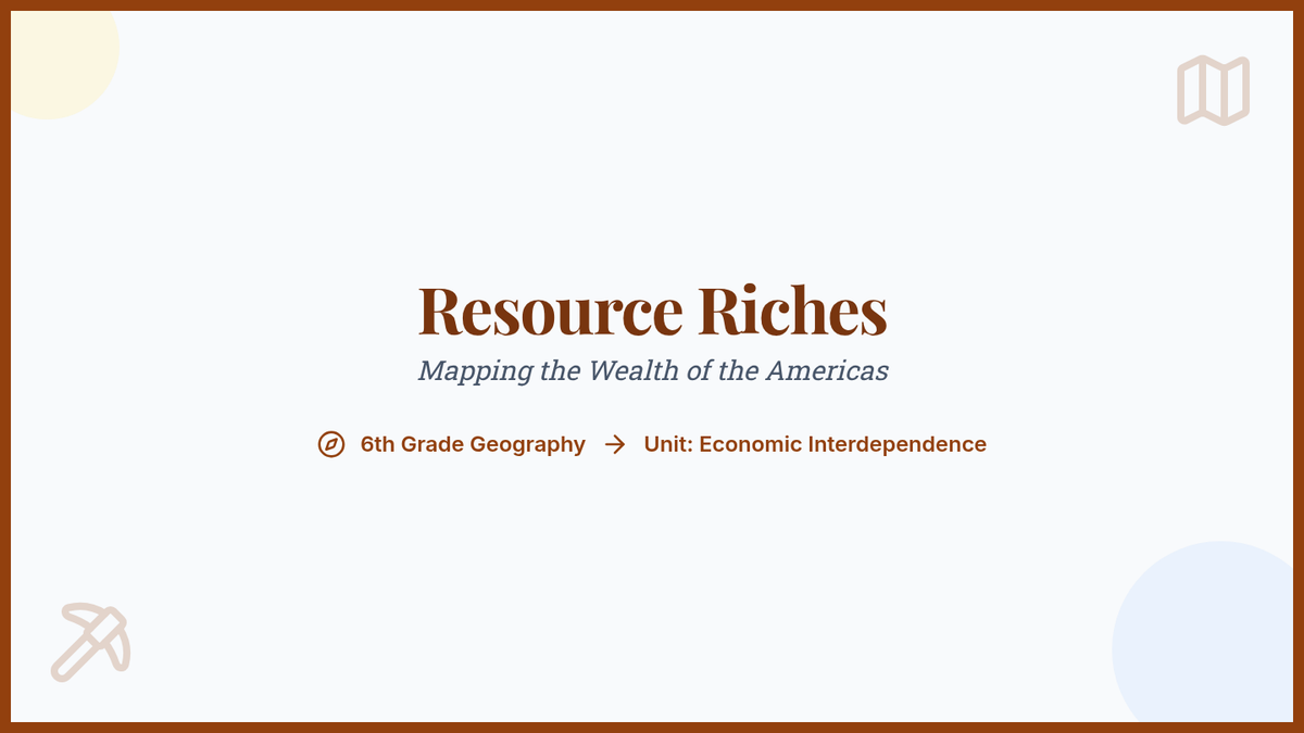 Students explore how geography influences the distribution of natural resources and how this leads to economic specialization, trade agreements like the USMCA, and global interdependence across the Americas.