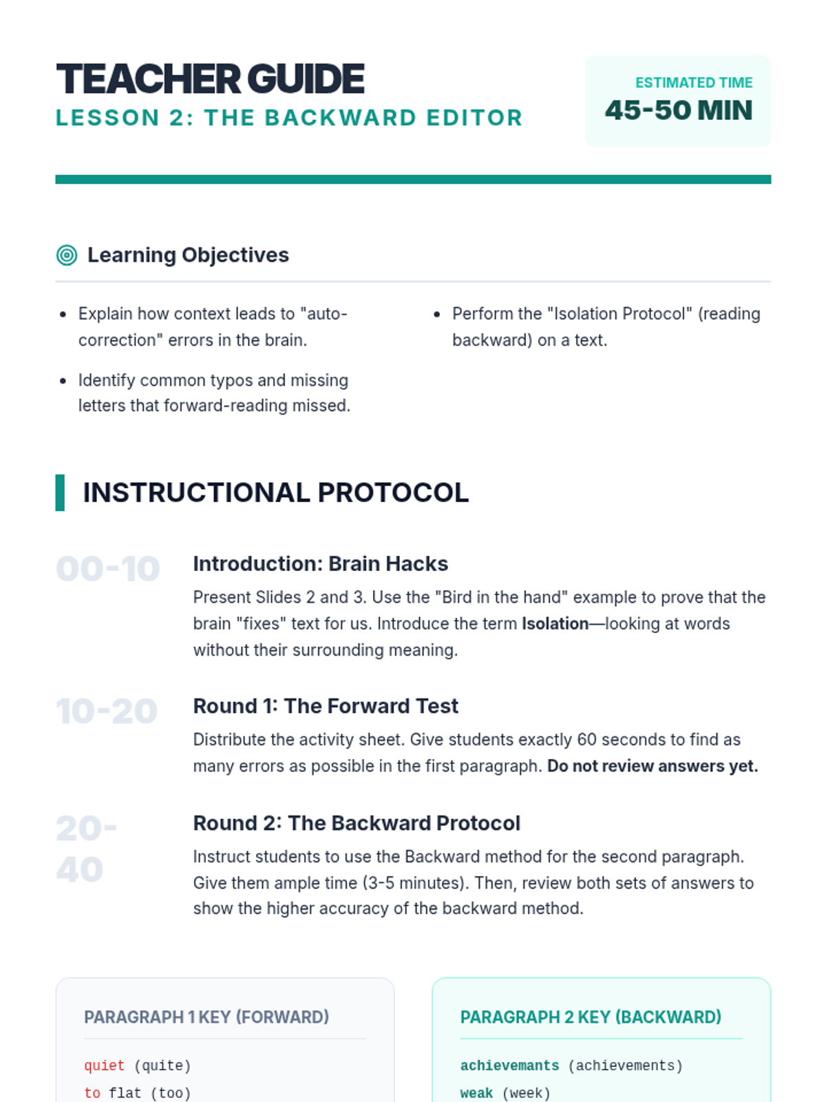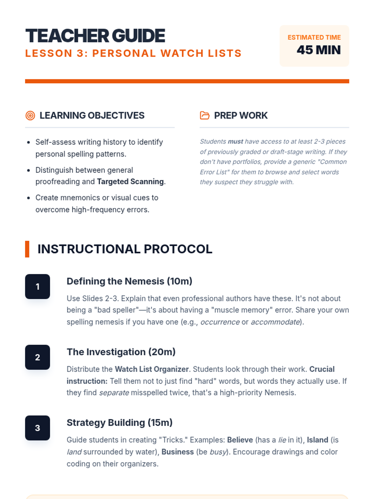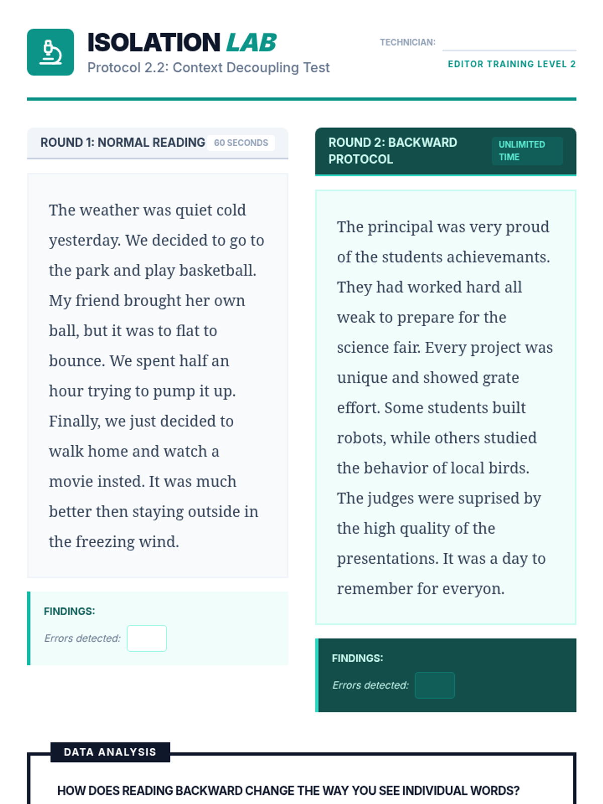 This sequence transforms students into professional copy editors, focusing on strategies to catch spelling errors that technology misses. Students explore the limitations of spell check, learn specialized proofreading techniques like reading backwards, and apply their skills in a high-stakes publishing simulation.