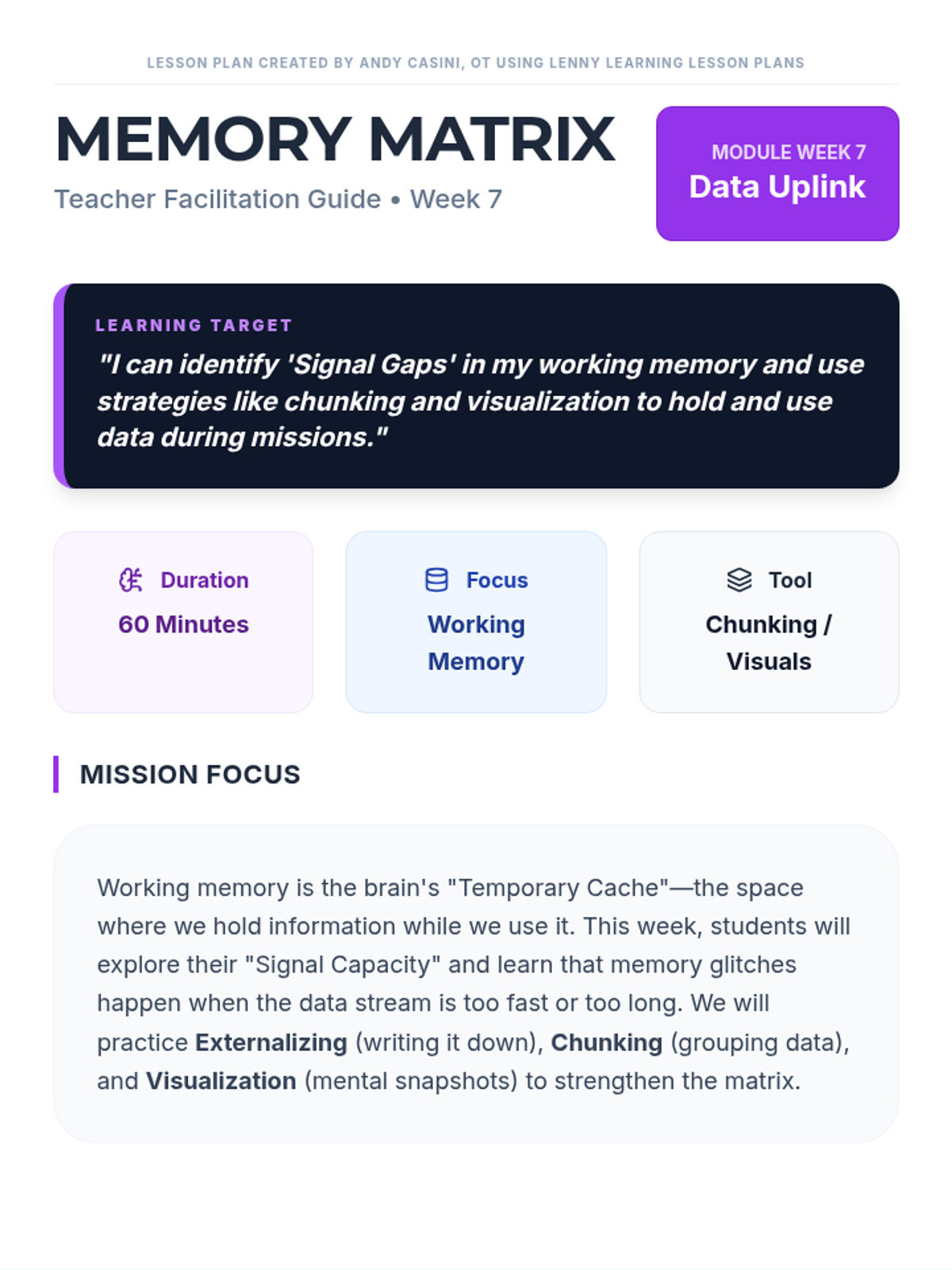 A comprehensive 10-week instructional module designed to build and refine 9 core executive functioning skills including goal setting, organization, and self-regulation.