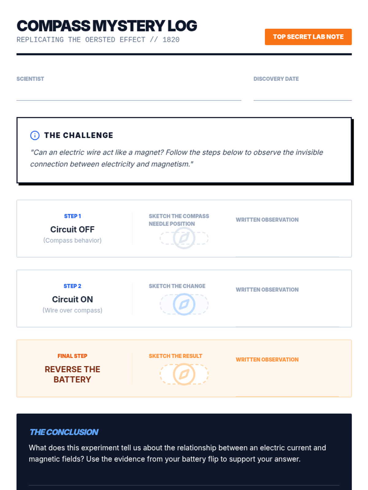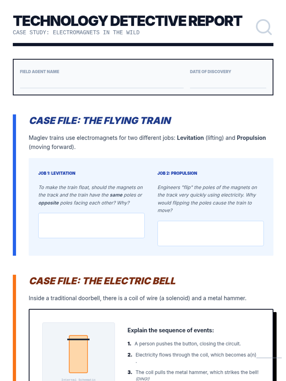 A project-based unit where students explore the relationship between electricity and magnetism. They will map magnetic fields, replicate Oersted's discovery, build their own electromagnets, and optimize them for maximum strength before investigating real-world applications like Maglev trains.