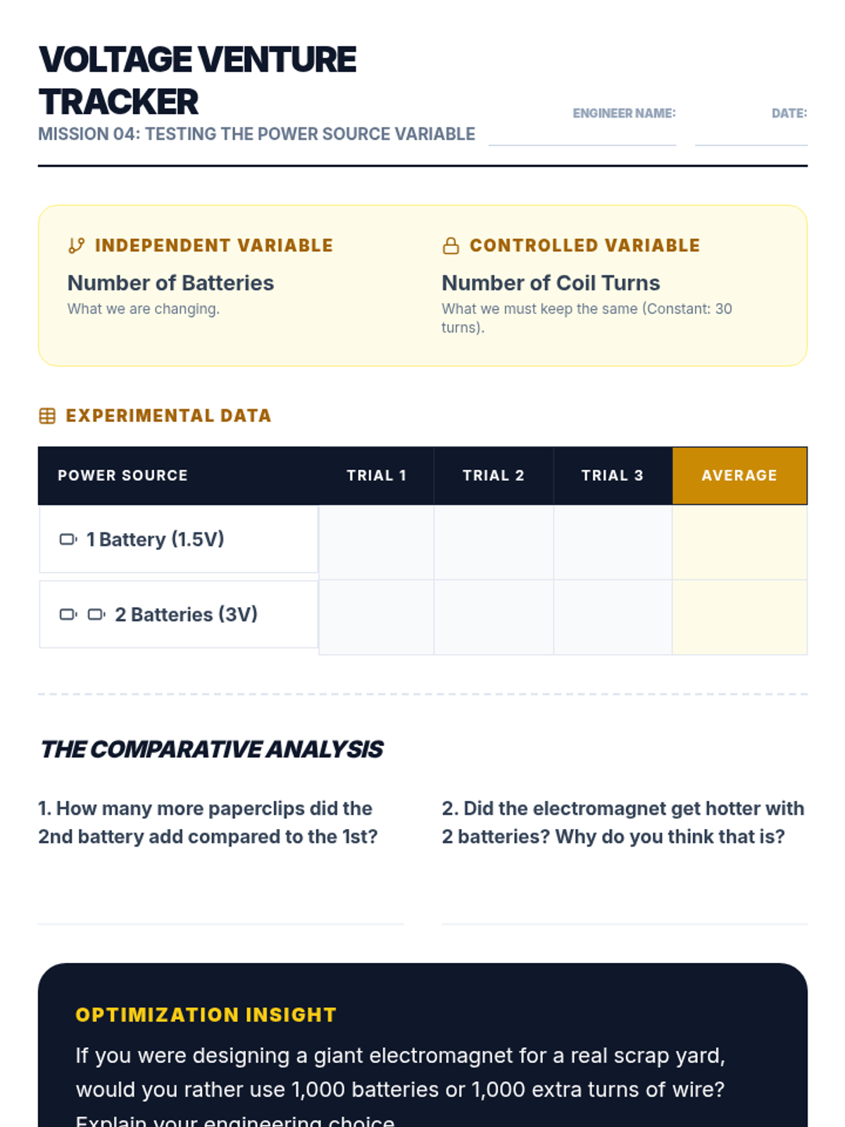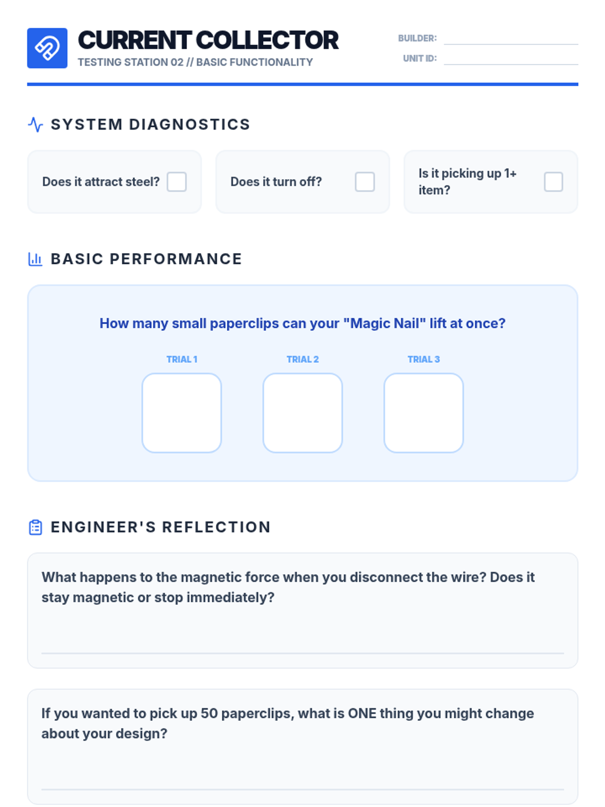 A hands-on engineering unit where 4th graders explore the relationship between electricity and magnetism. Students build, test, and optimize electromagnets to solve a real-world scrap yard sorting challenge.