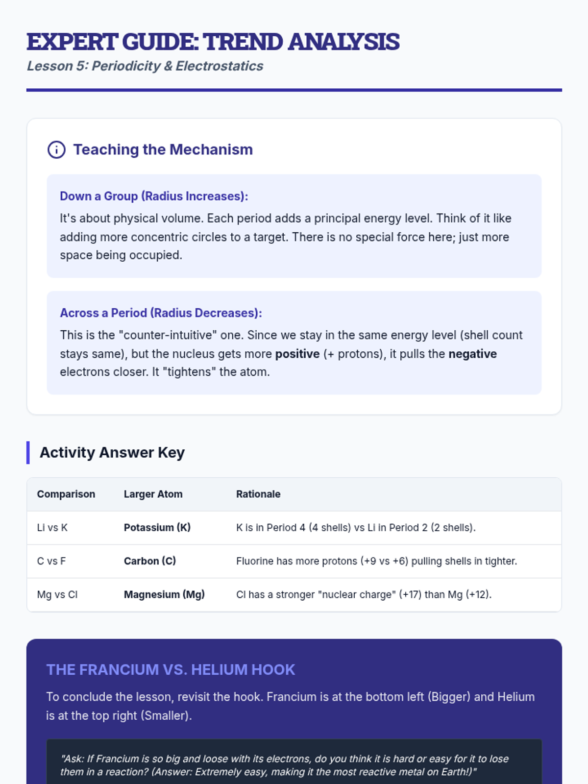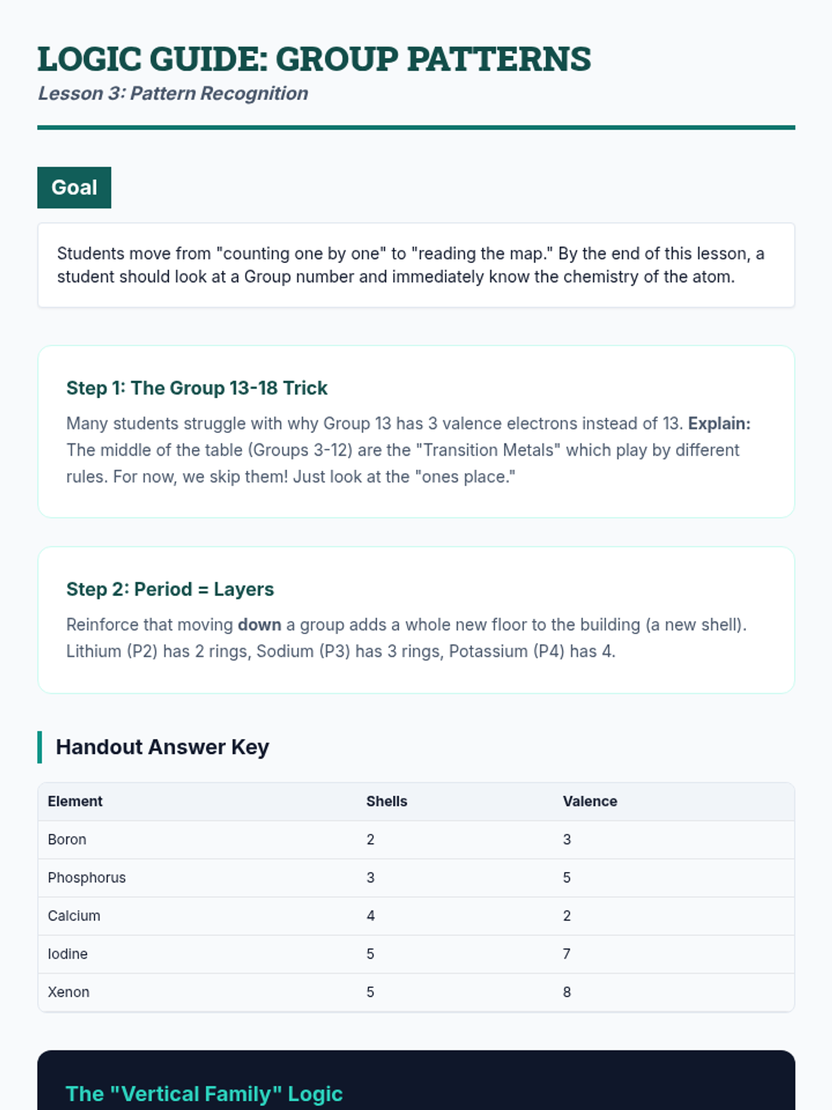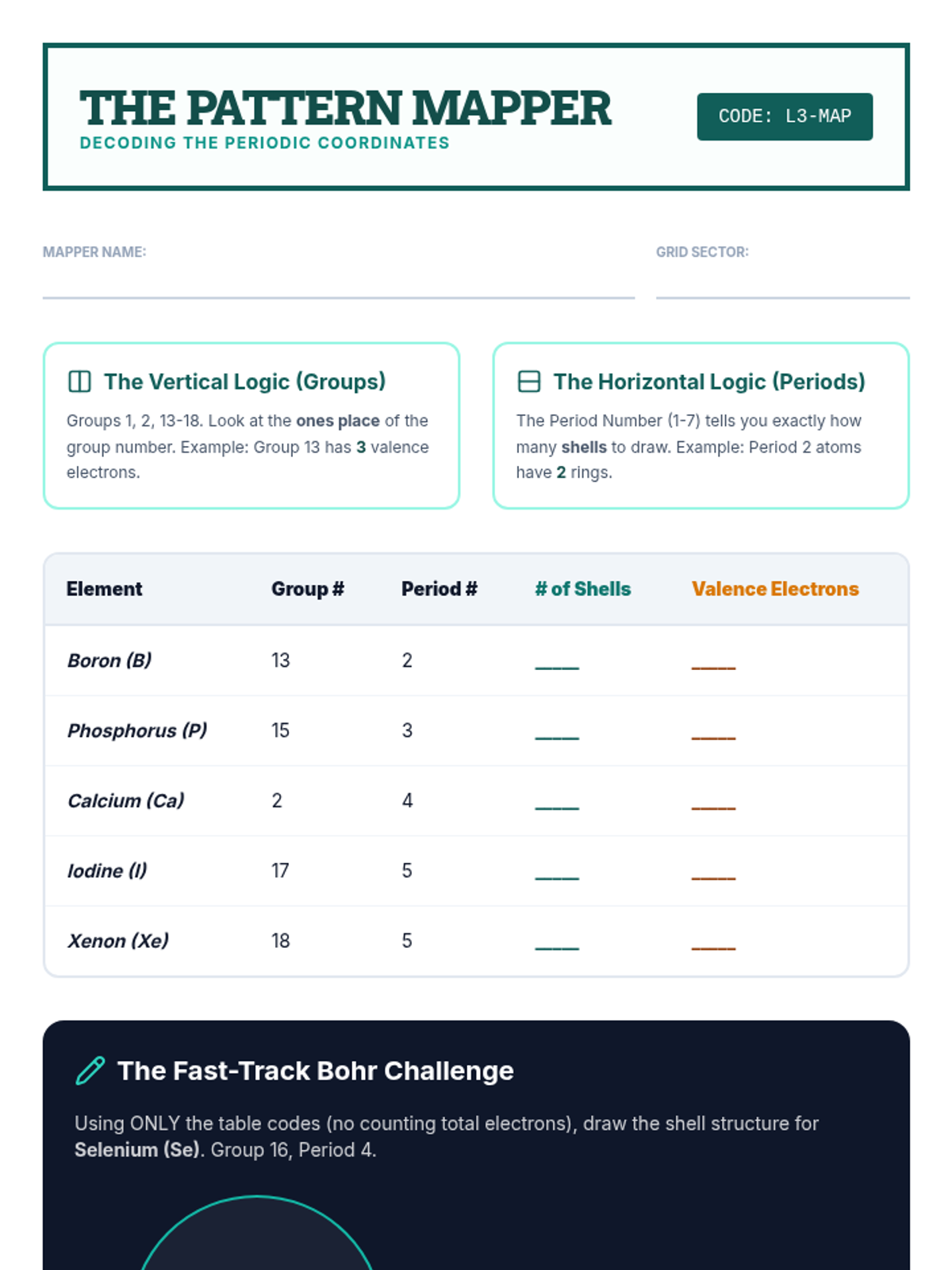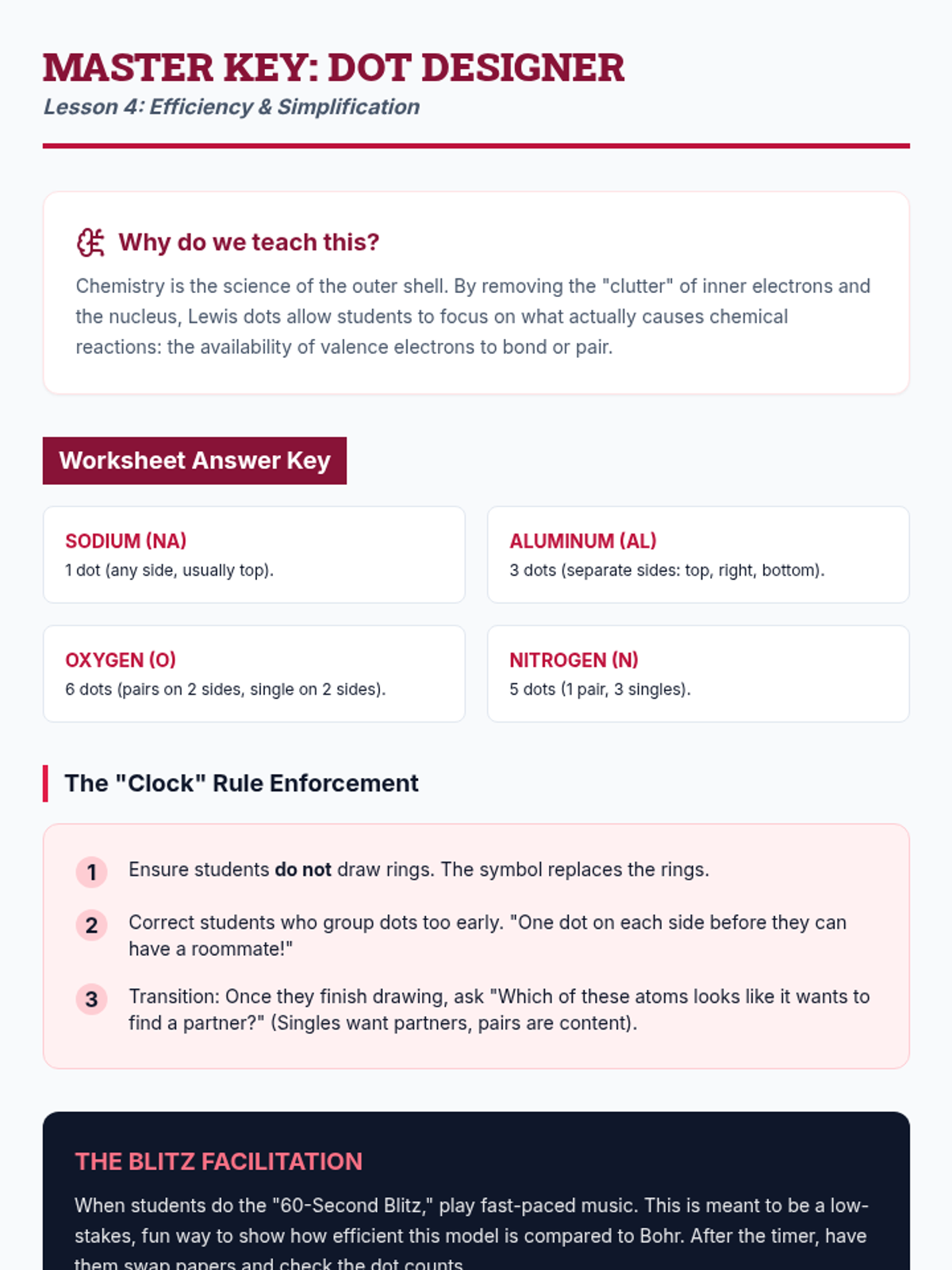 This sequence guides 7th-grade students through the visualization of electron arrangements. From drawing Bohr models for the first 18 elements to mastering Lewis dot structures, students learn how an atom's 'address' on the periodic table reflects its electron configuration and influences its chemical properties and trends.