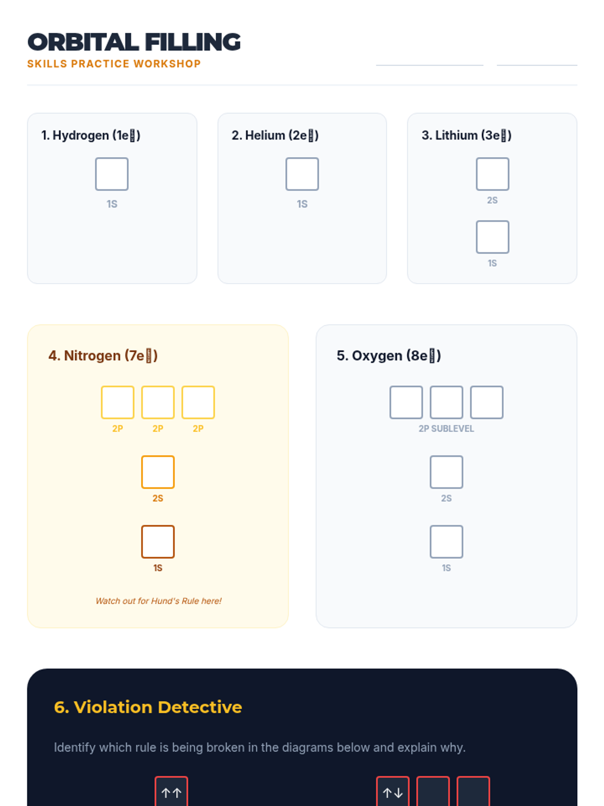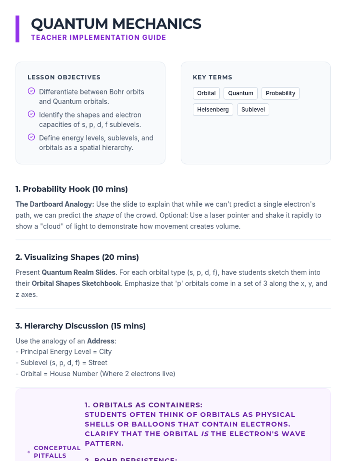 A comprehensive exploration of the quantum mechanical model, focusing on how electron configurations and orbital mechanics define the Periodic Table's structure. Students progress from basic atomic identity to predicting elemental properties based on quantum numbers.
