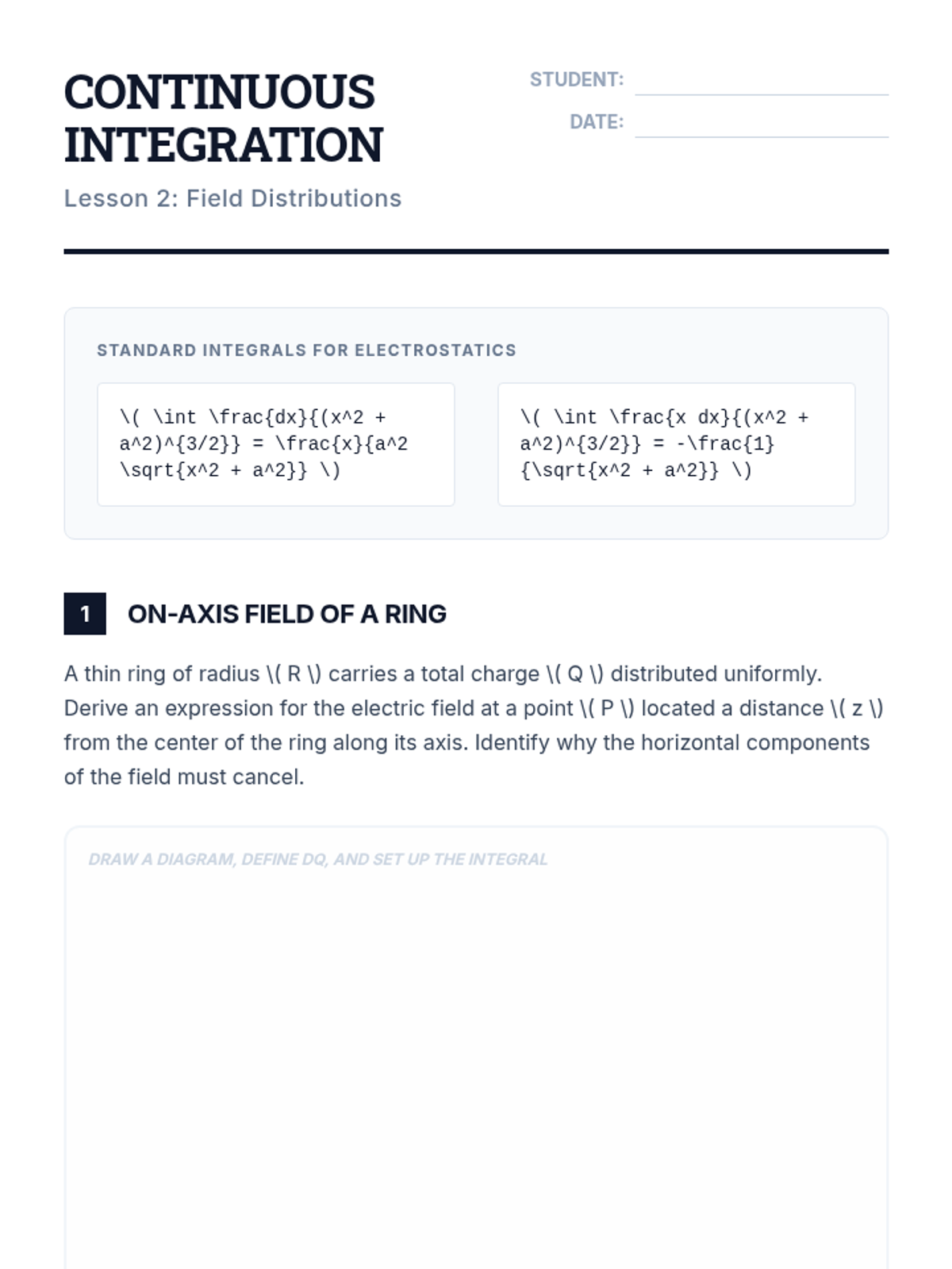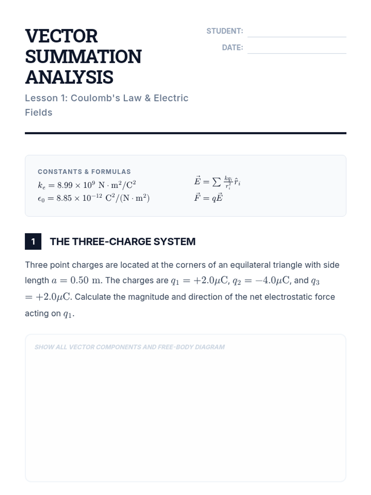 A comprehensive undergraduate-level sequence covering the mathematical foundations of electrostatics, from point charges to complex distributions and capacitance. Students utilize calculus and symmetry to solve high-level physics problems.