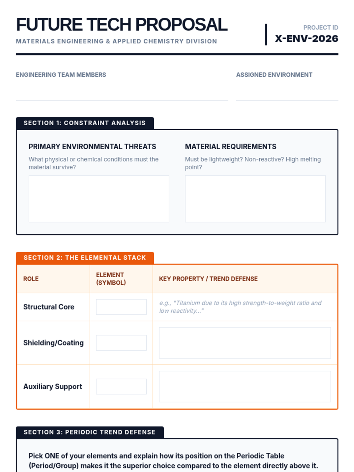 A project-based unit where 7th-grade students act as materials engineers, exploring how the unique properties of elements on the Periodic Table are harnessed to create modern technology and solve future design challenges.