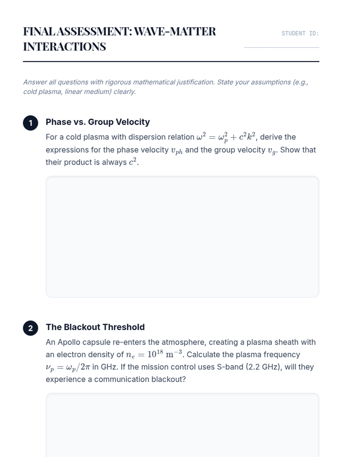 A comprehensive graduate-level sequence exploring how microscopic atomic interactions determine the macroscopic propagation of electromagnetic waves through conductors, dielectrics, and plasmas. This series covers Maxwell's equations in matter, boundary conditions, dispersion models (Drude/Lorentz), Fresnel equations, and ionospheric plasma physics.
