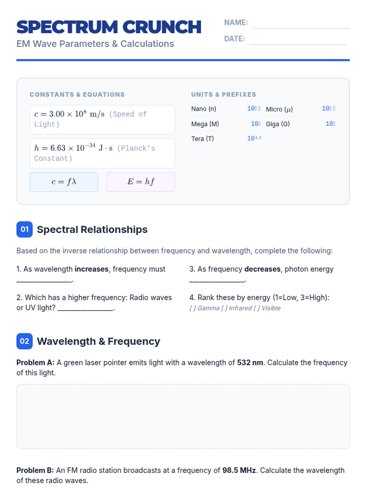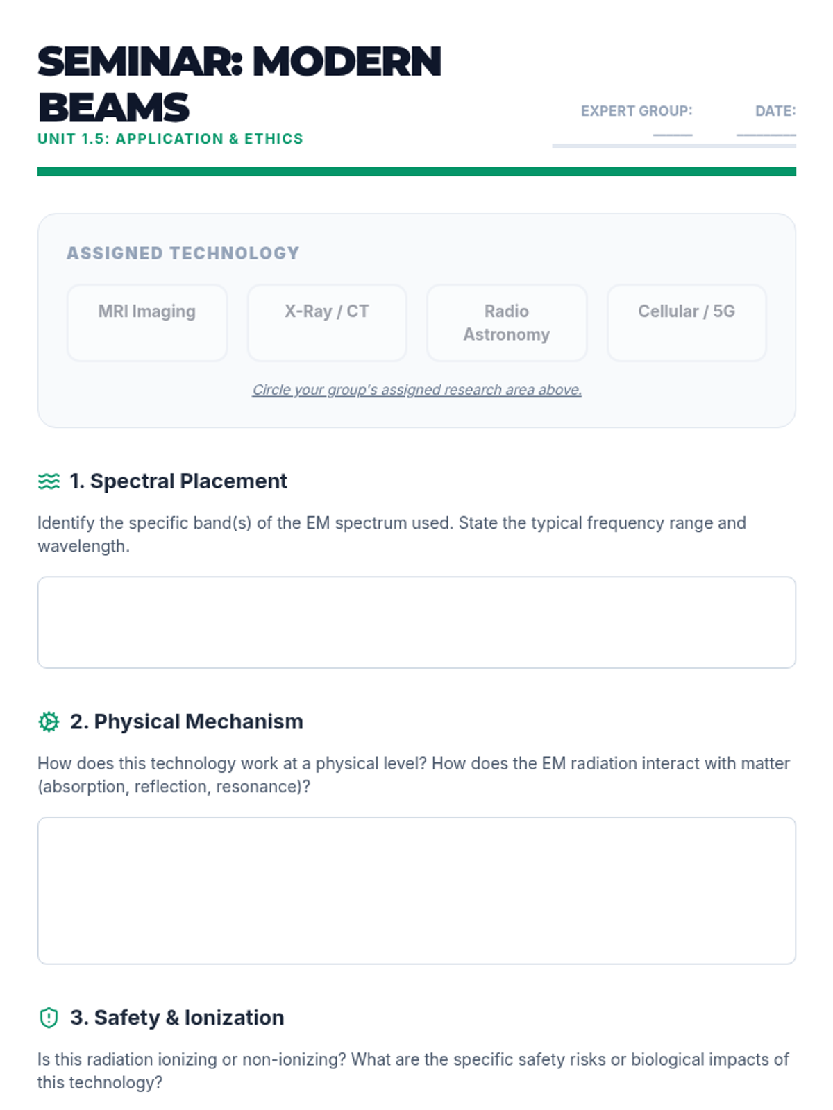 This 11th-grade physics sequence explores the electromagnetic spectrum, from radio waves to gamma rays. Students investigate the relationship between frequency, energy, and wavelength, dive into the physics of color perception, and use spectroscopy to identify chemical elements in stars and gases.