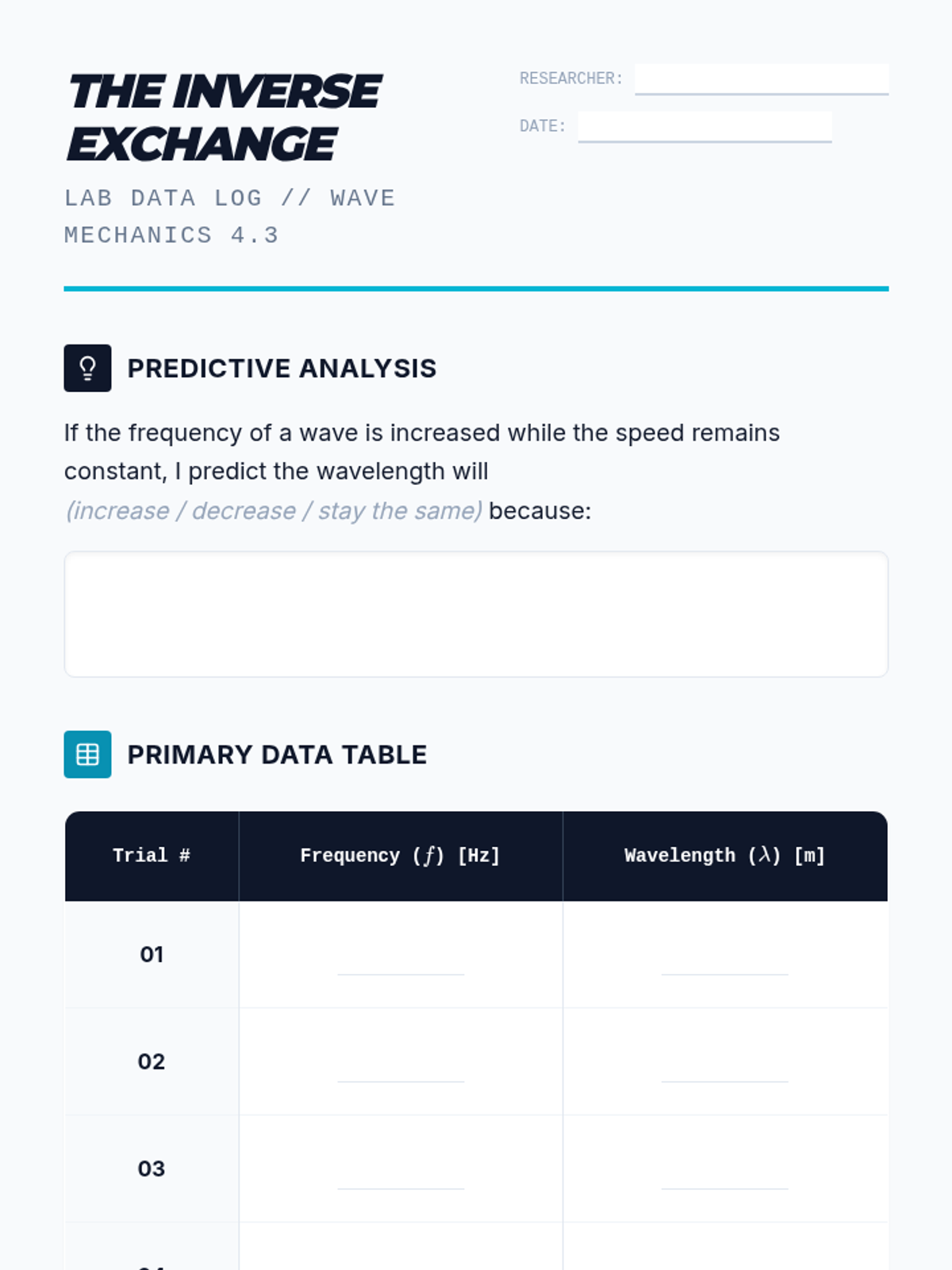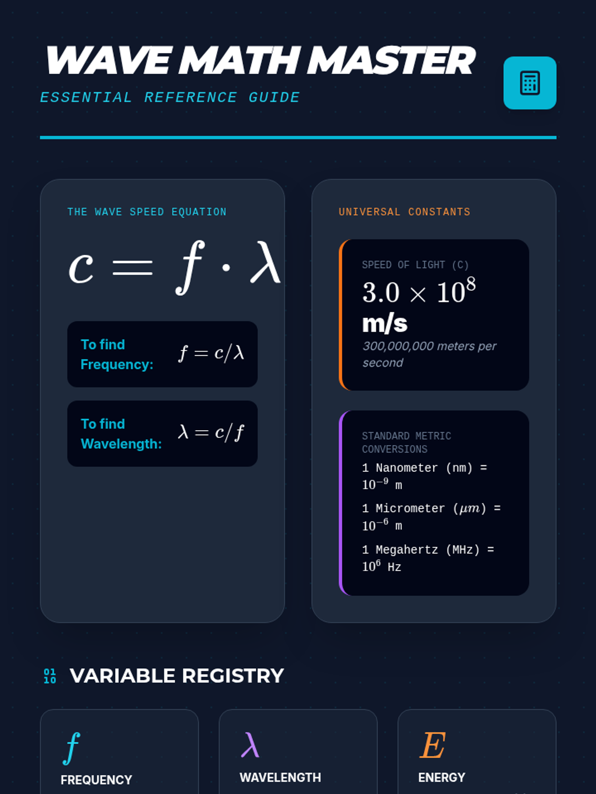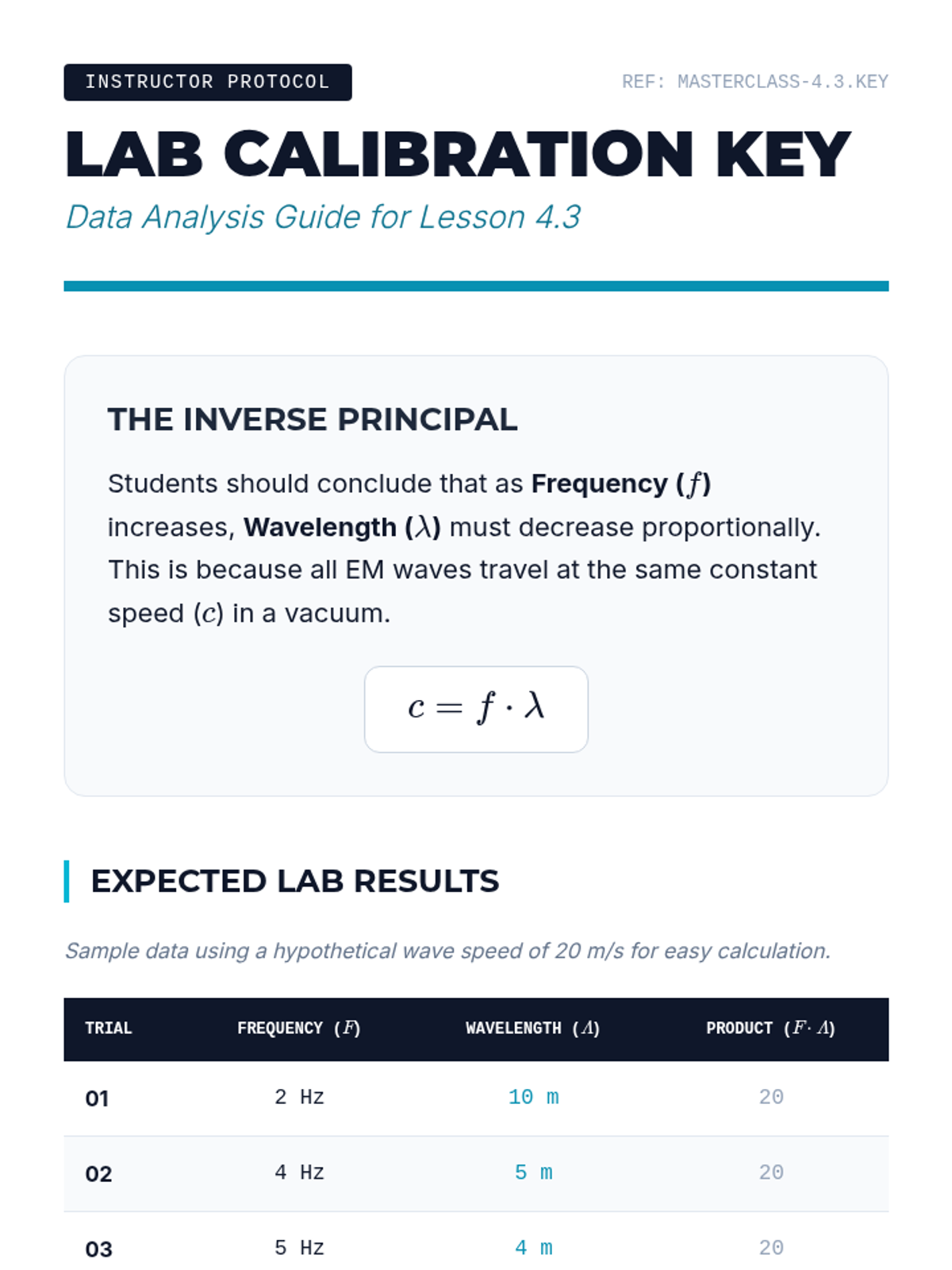 This sequence guides 8th-grade students through the physical and mathematical properties of electromagnetic waves, moving from basic wave types to complex calculations and the full scale of the electromagnetic spectrum. Students explore the inverse relationship between frequency and wavelength through inquiry-based labs and synthesis projects.