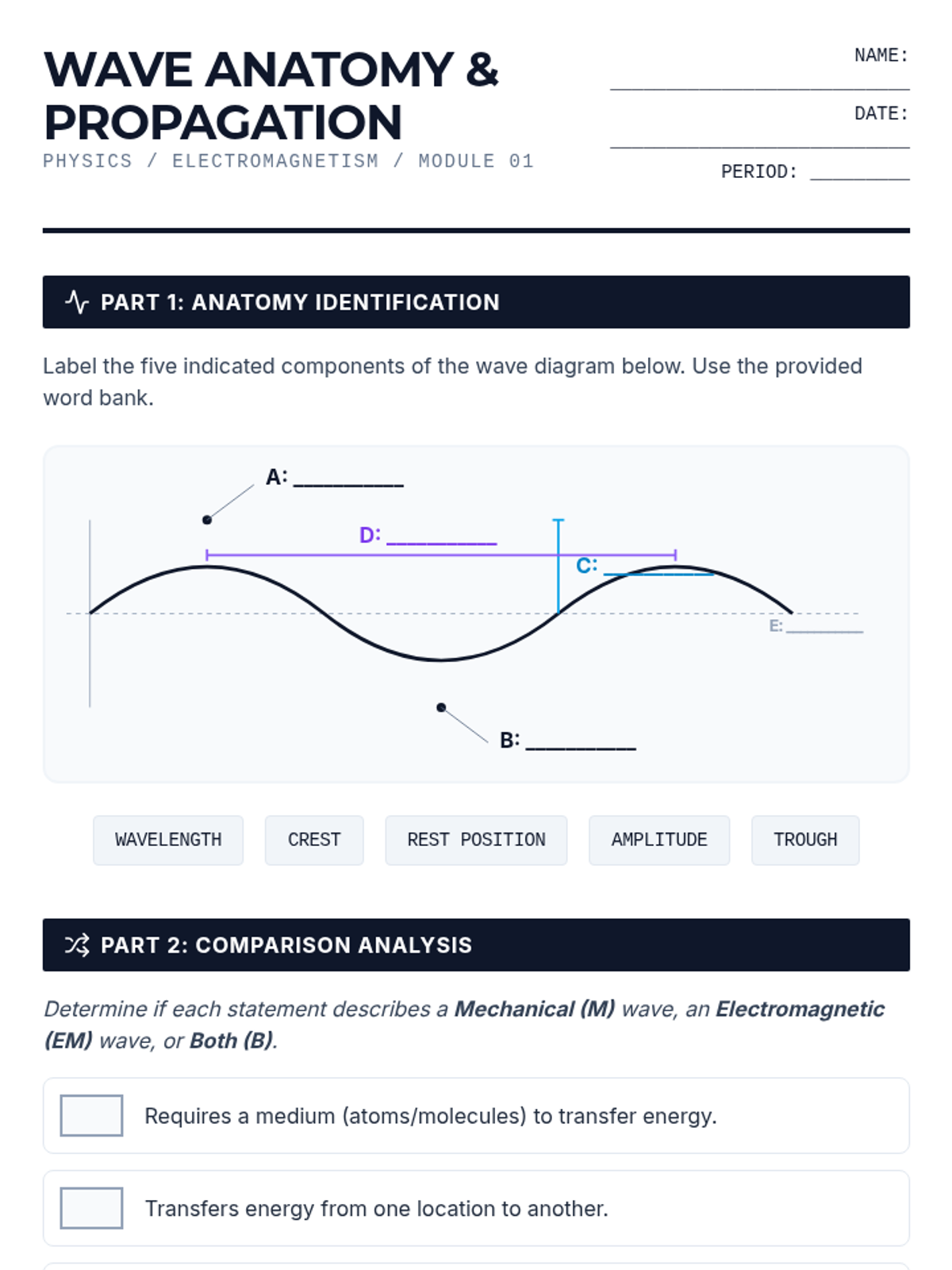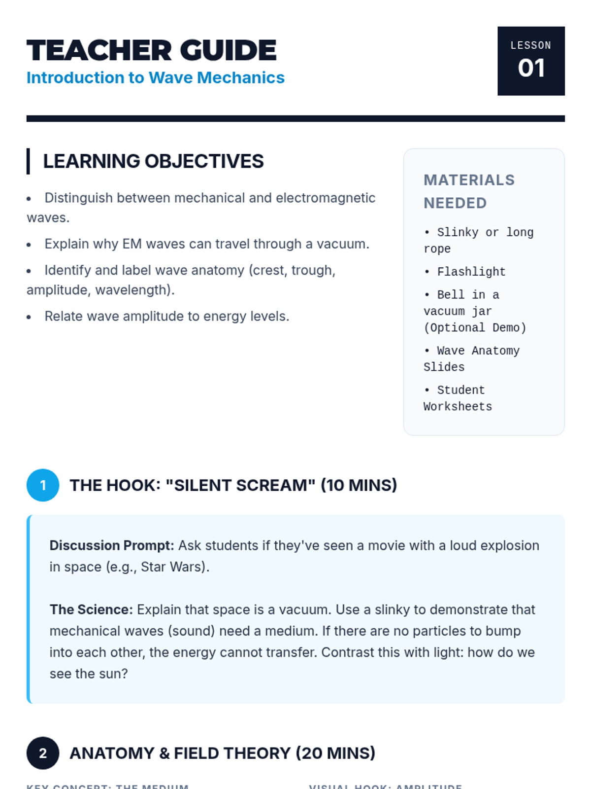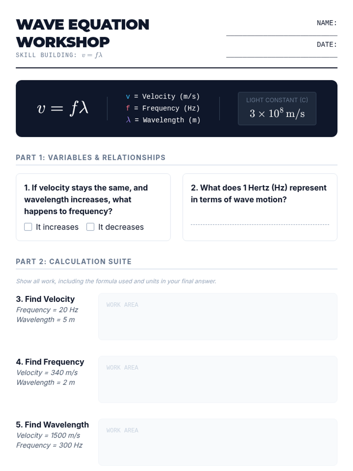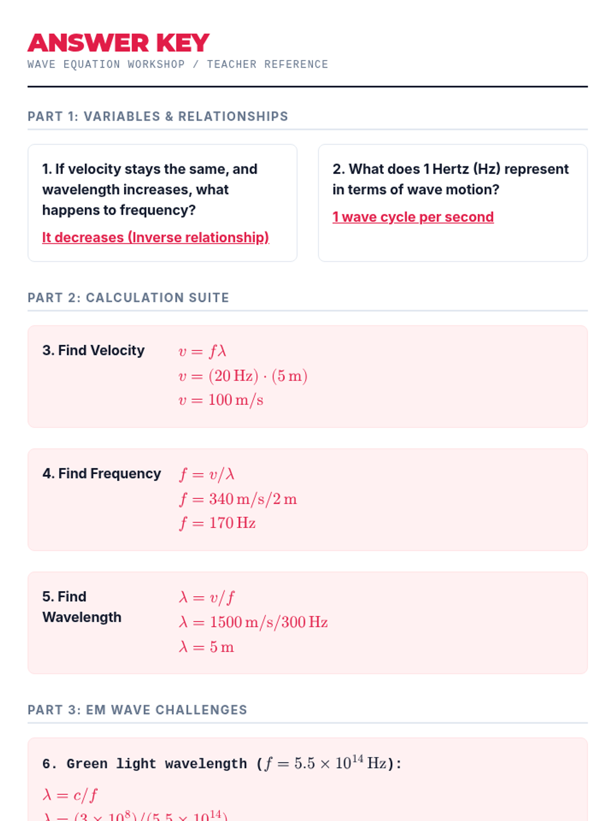 A comprehensive 9th-grade physics sequence exploring the mathematical and conceptual foundations of electromagnetic waves. Students master wave anatomy, the wave equation, the constant speed of light, the organization of the EM spectrum, and the relationship between frequency and photon energy.