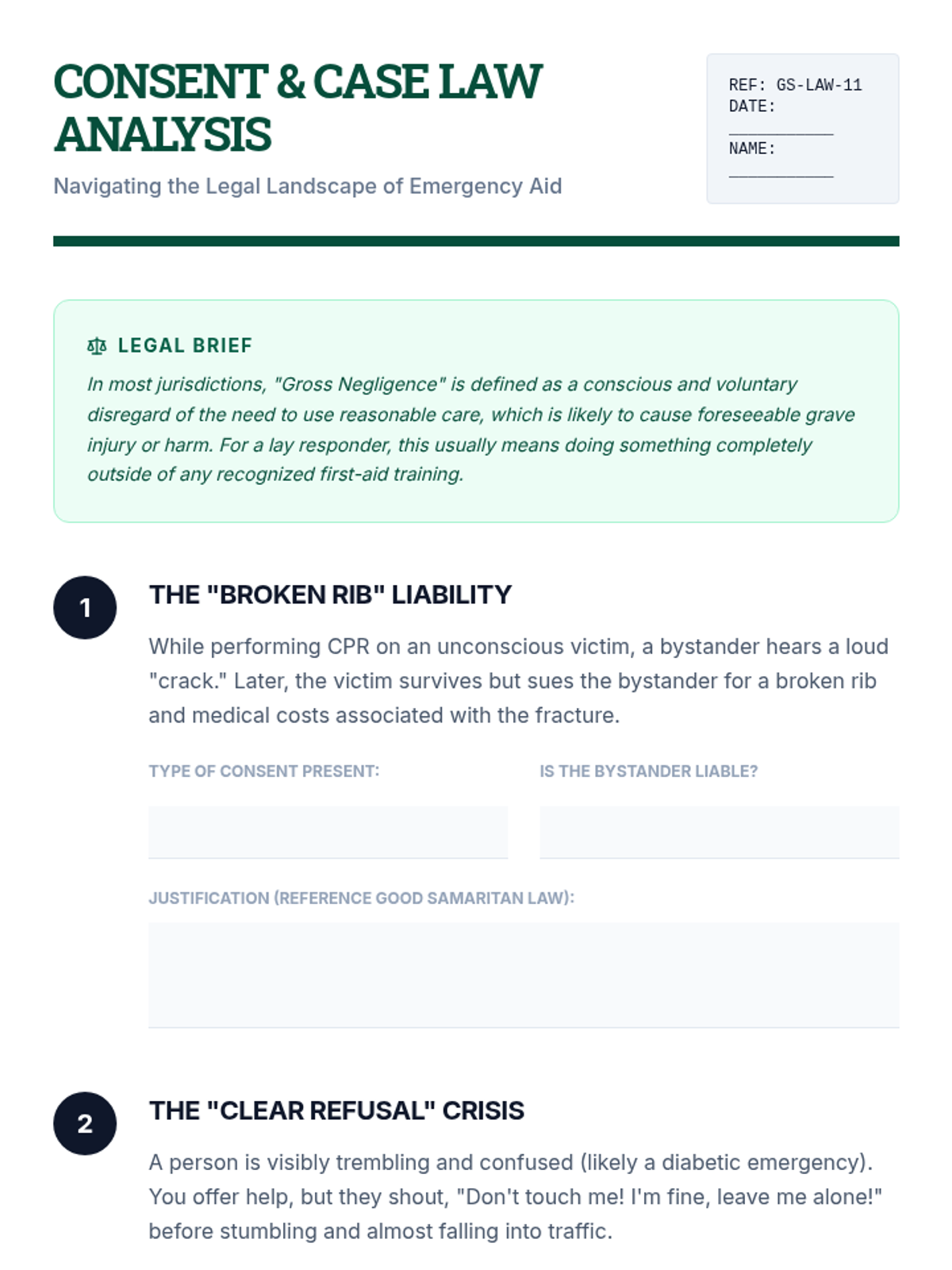 A comprehensive 11th-grade health sequence focusing on the psychological, medical, and legal dimensions of emergency response, from overcoming the bystander effect to advanced triage.