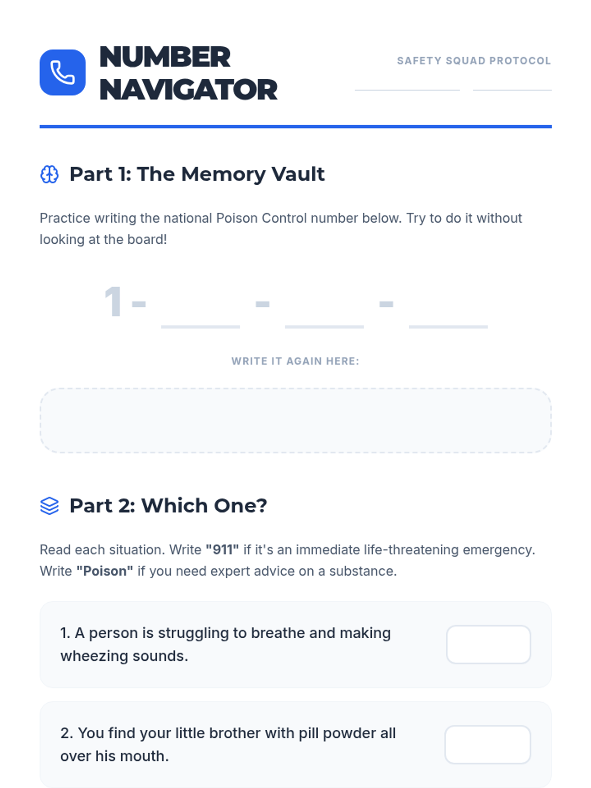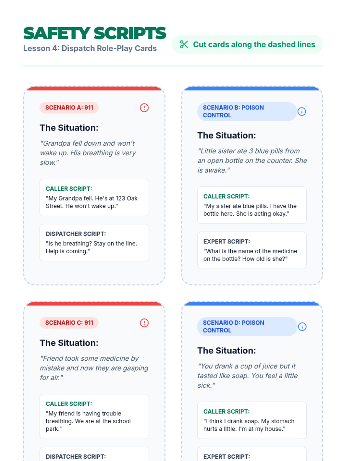 This sequence empowers 4th-grade students with the knowledge and skills to respond to medication-related emergencies. Students learn to differentiate between candy and medicine, identify signs of distress, and master the protocols for contacting 911 and Poison Control.