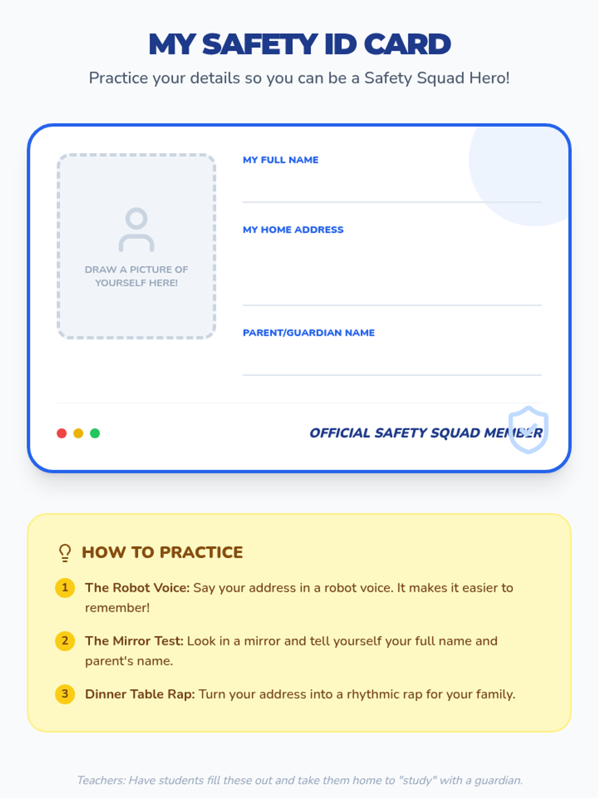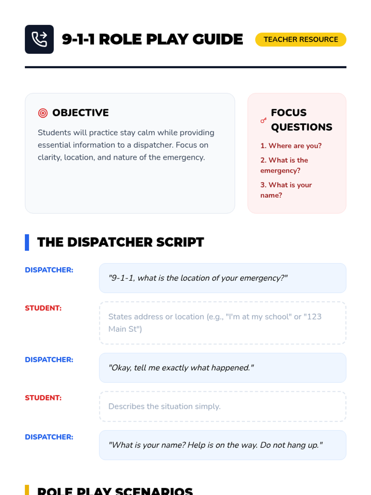 A comprehensive first-grade unit on identifying emergencies, communicating with dispatchers, memorizing personal safety info, and executing physical safety protocols like fire drills.