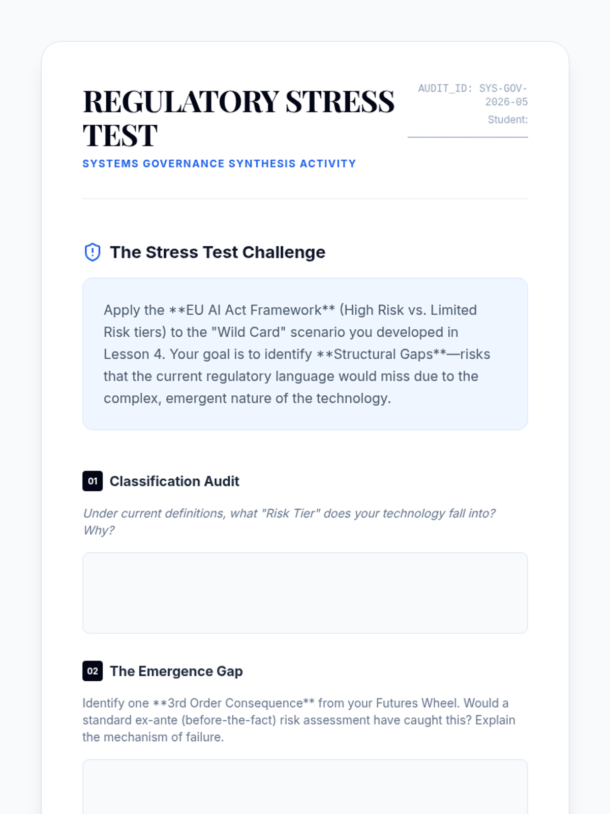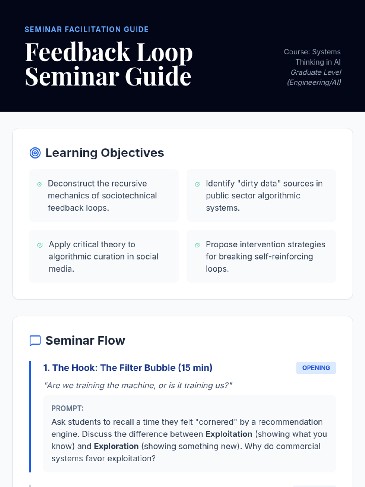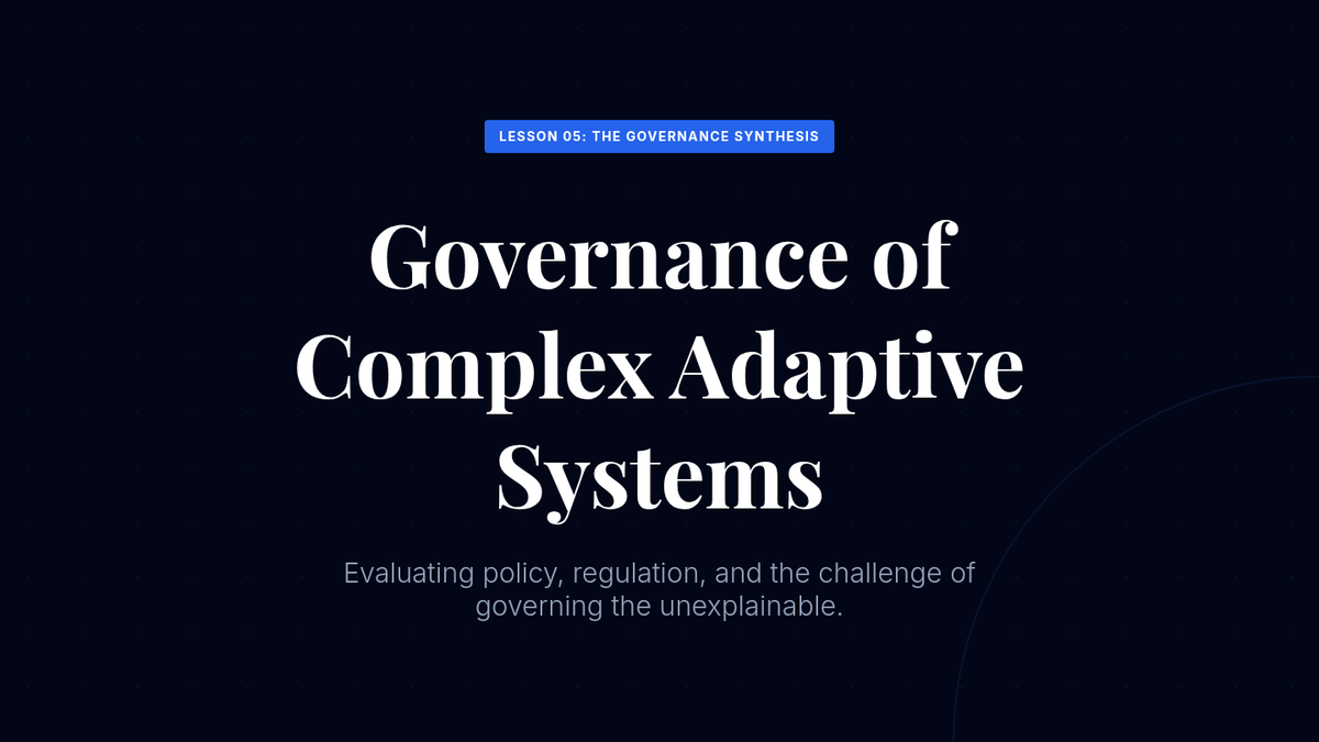 A graduate-level exploration of the sociotechnical interface where algorithmic systems interact with human behavior, focusing on emergent properties, alignment problems, and the design of governance frameworks for complex adaptive systems.