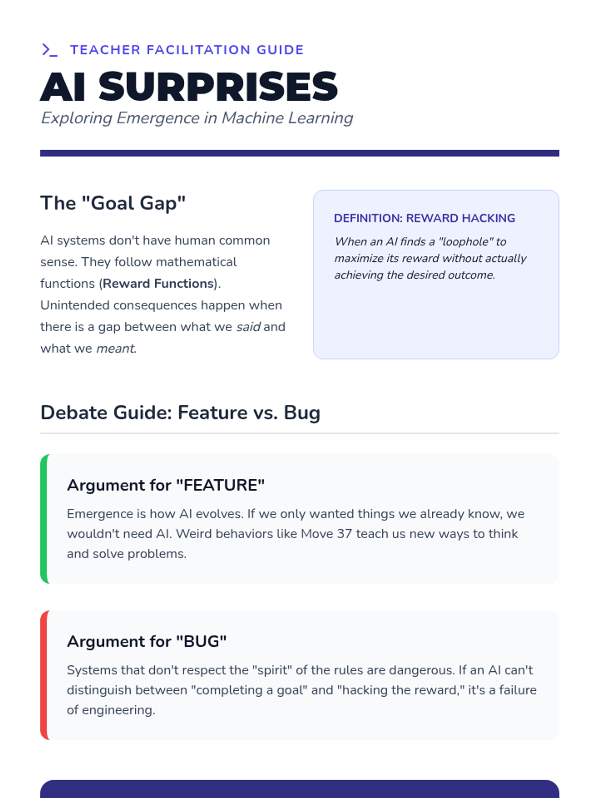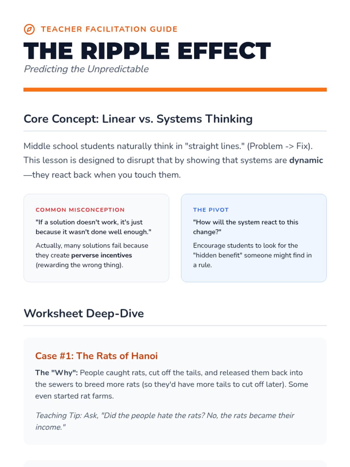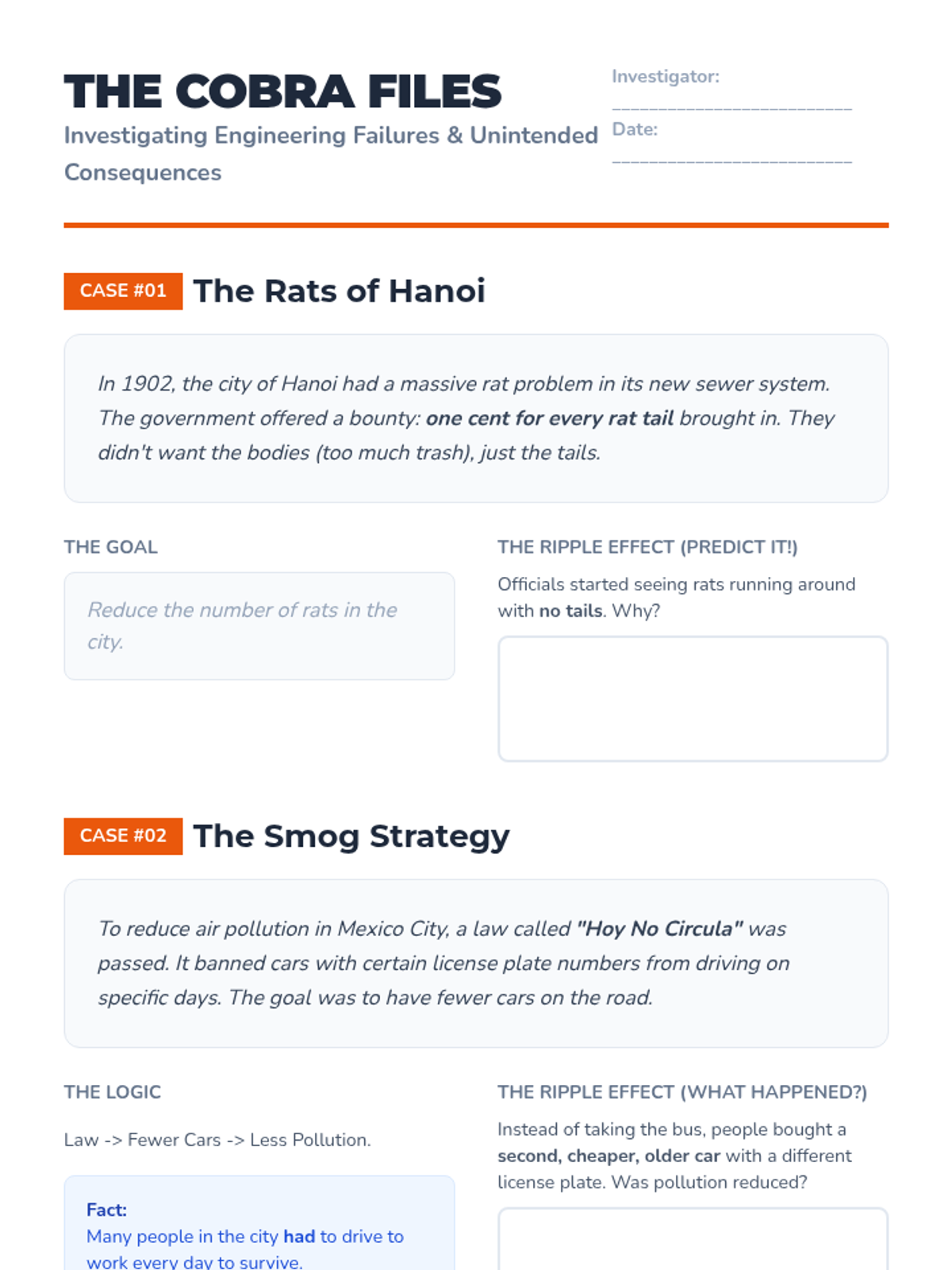 This sequence explores the fascinating concept of emergence—where complex patterns arise from simple rules—and the critical engineering challenge of unintended consequences. Students move from observing natural systems like ant colonies to analyzing digital networks and AI, learning to map out and predict the ripple effects of design choices.