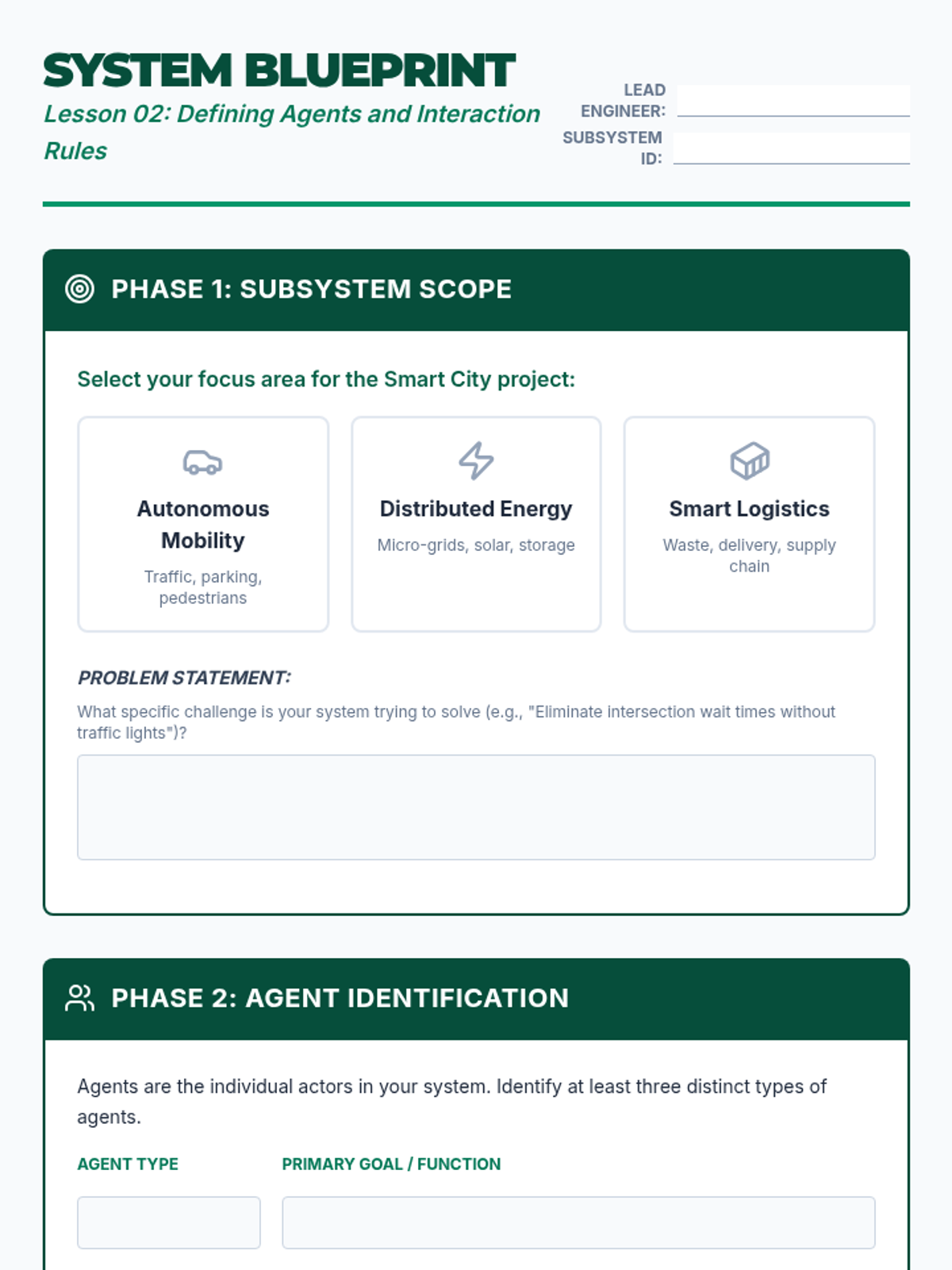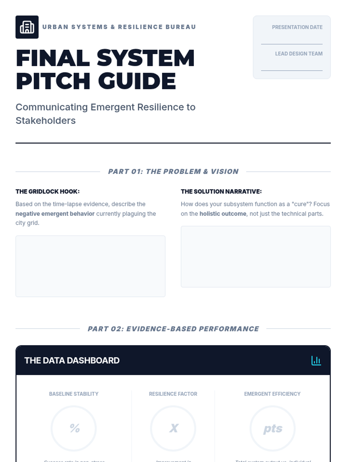 A project-based unit exploring emergent behaviors in urban engineering, where students design, simulate, and stress-test smart city subsystems using systems thinking.