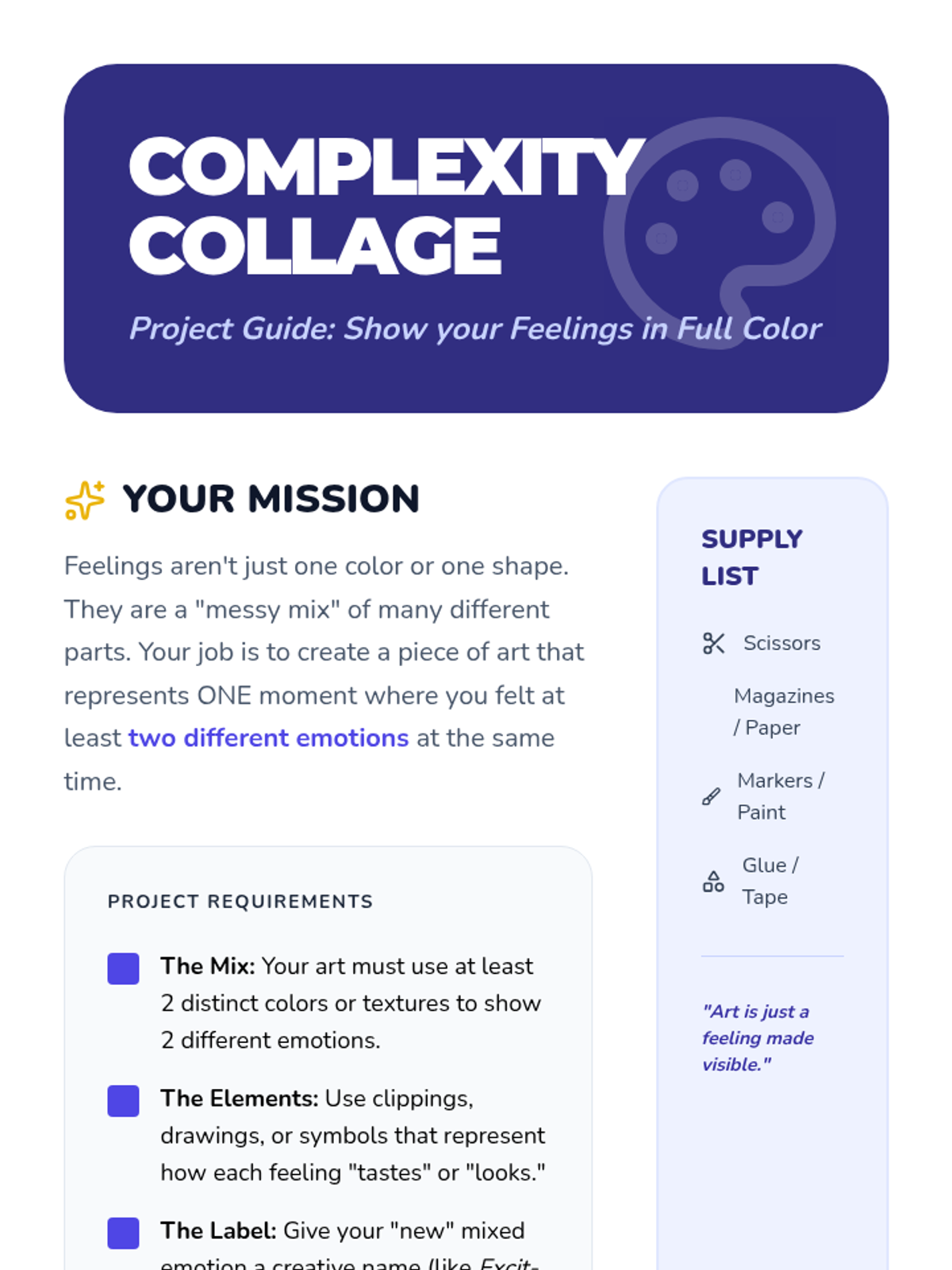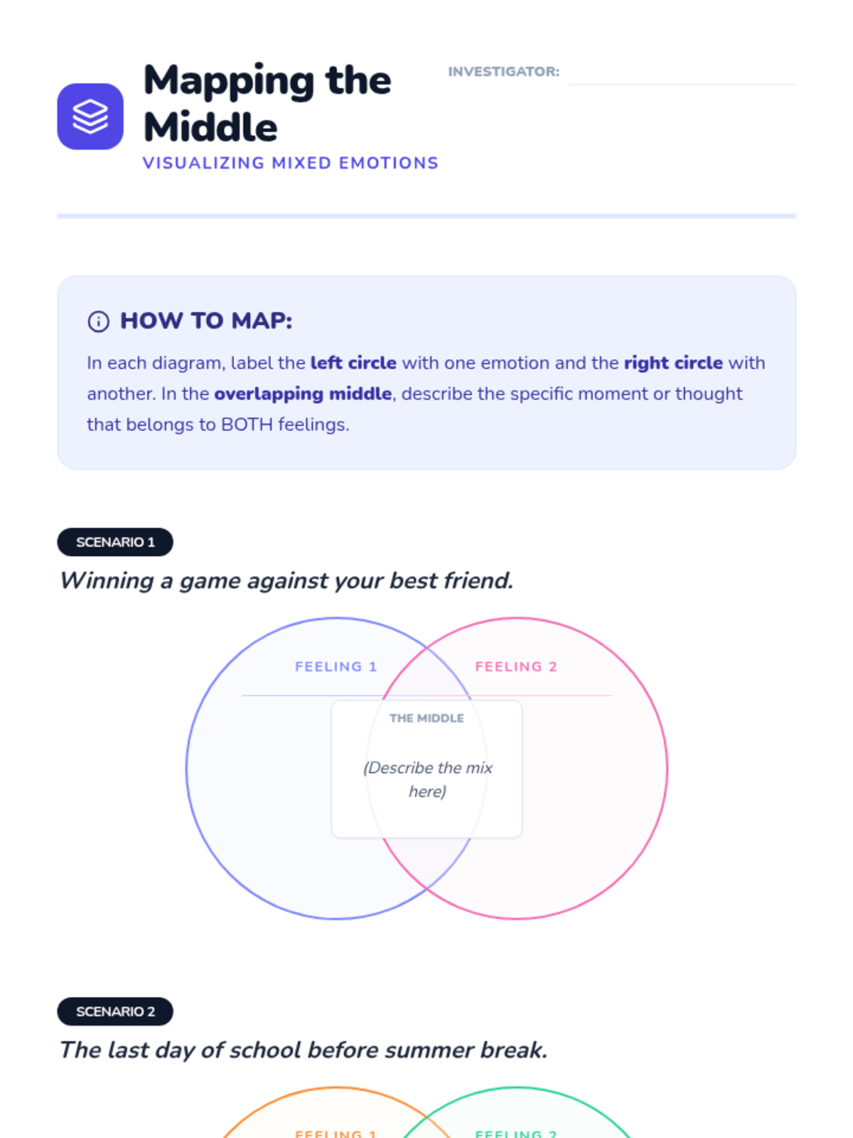 A sequence for 4th graders to explore the complexity of mixed emotions and ambivalence, moving beyond single-emotion labeling to understand how opposite feelings can coexist. Students use metaphors like color mixing and Venn diagrams to analyze 'bittersweet' moments and conflicting perspectives.