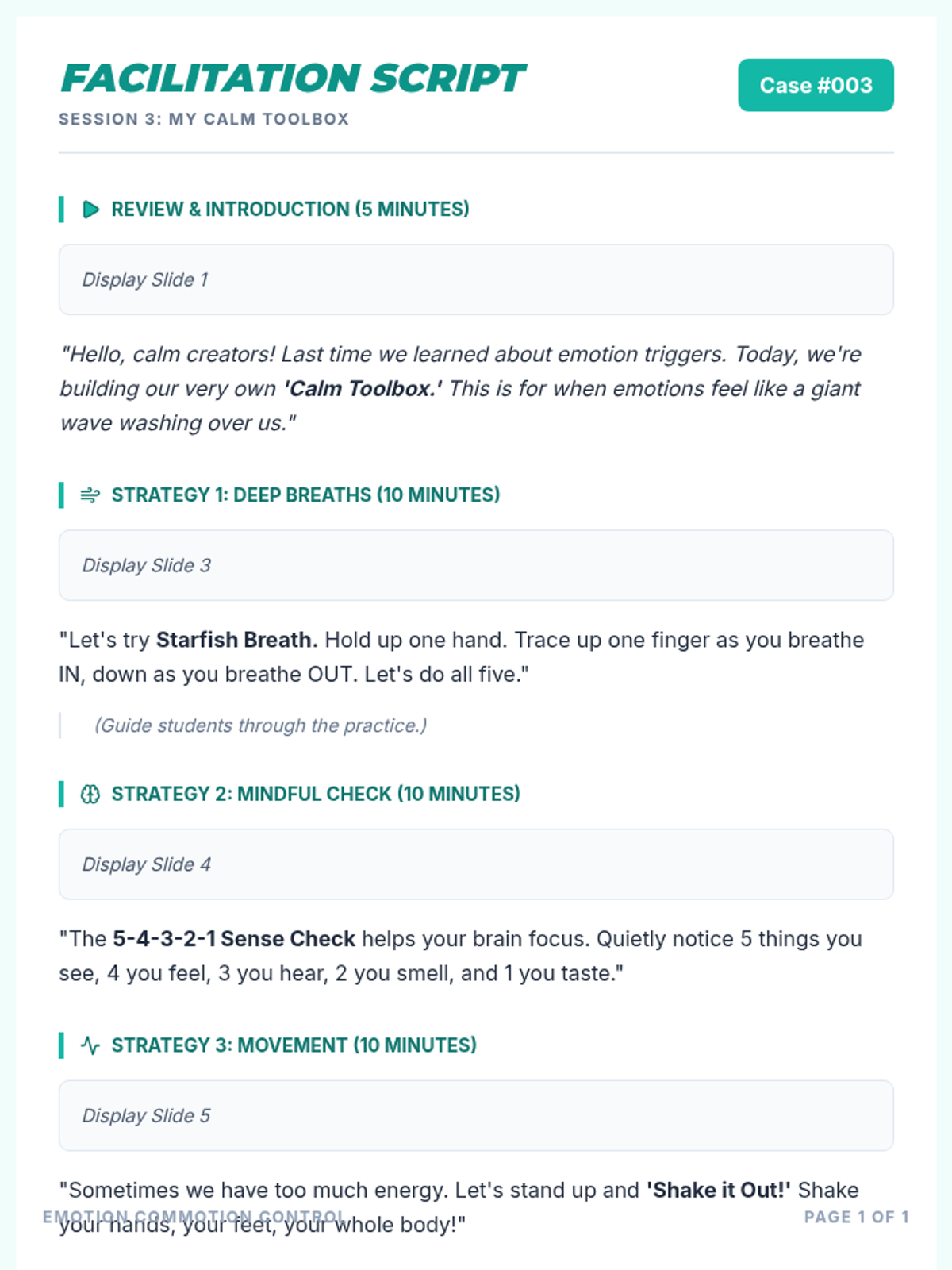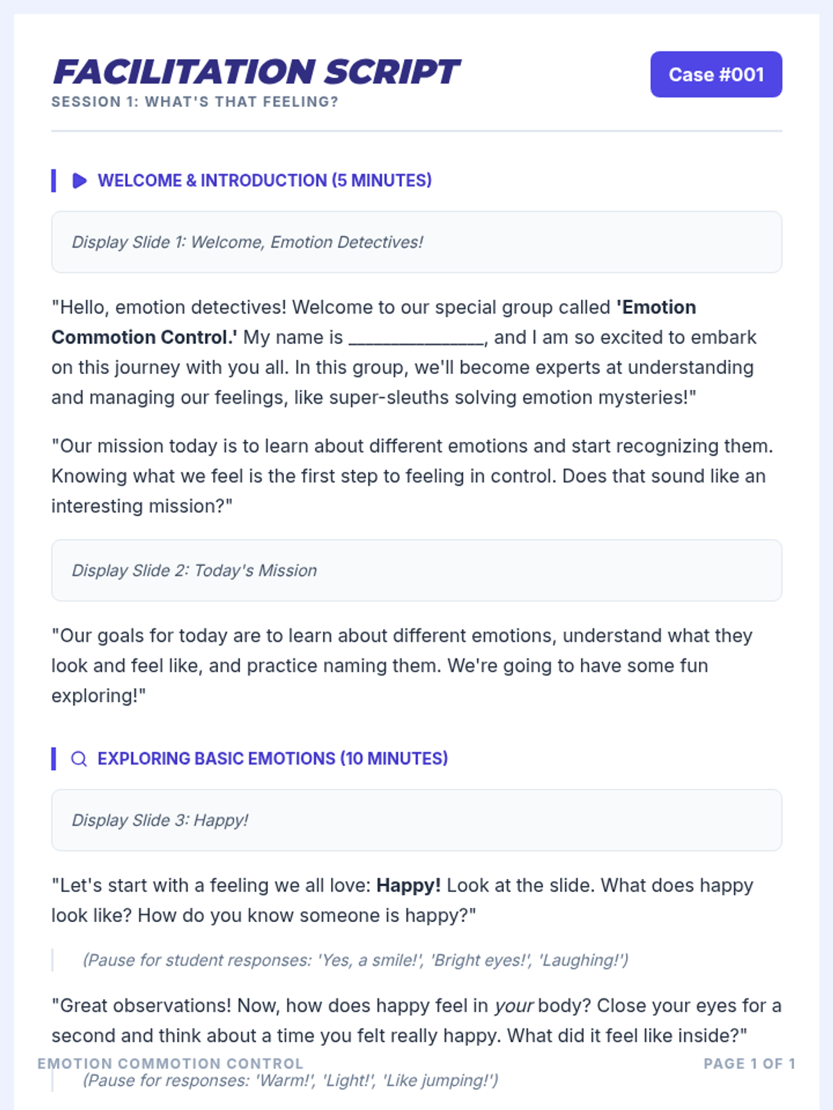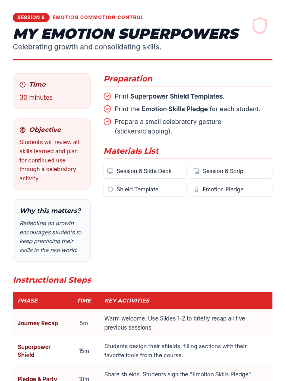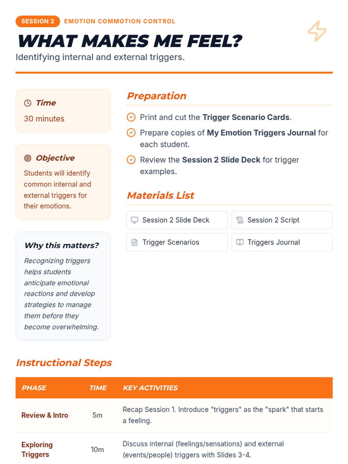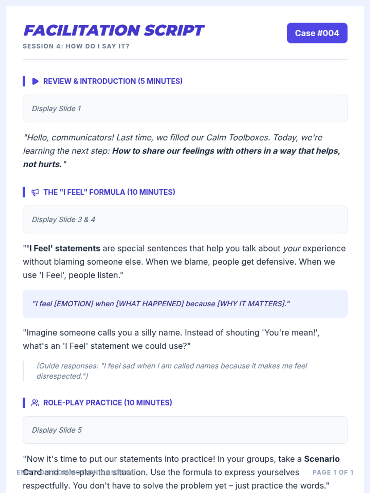 A 6-session Tier 2 social-emotional learning curriculum for 4th graders, focusing on identifying emotions, understanding triggers, developing calming strategies, and effective communication.
