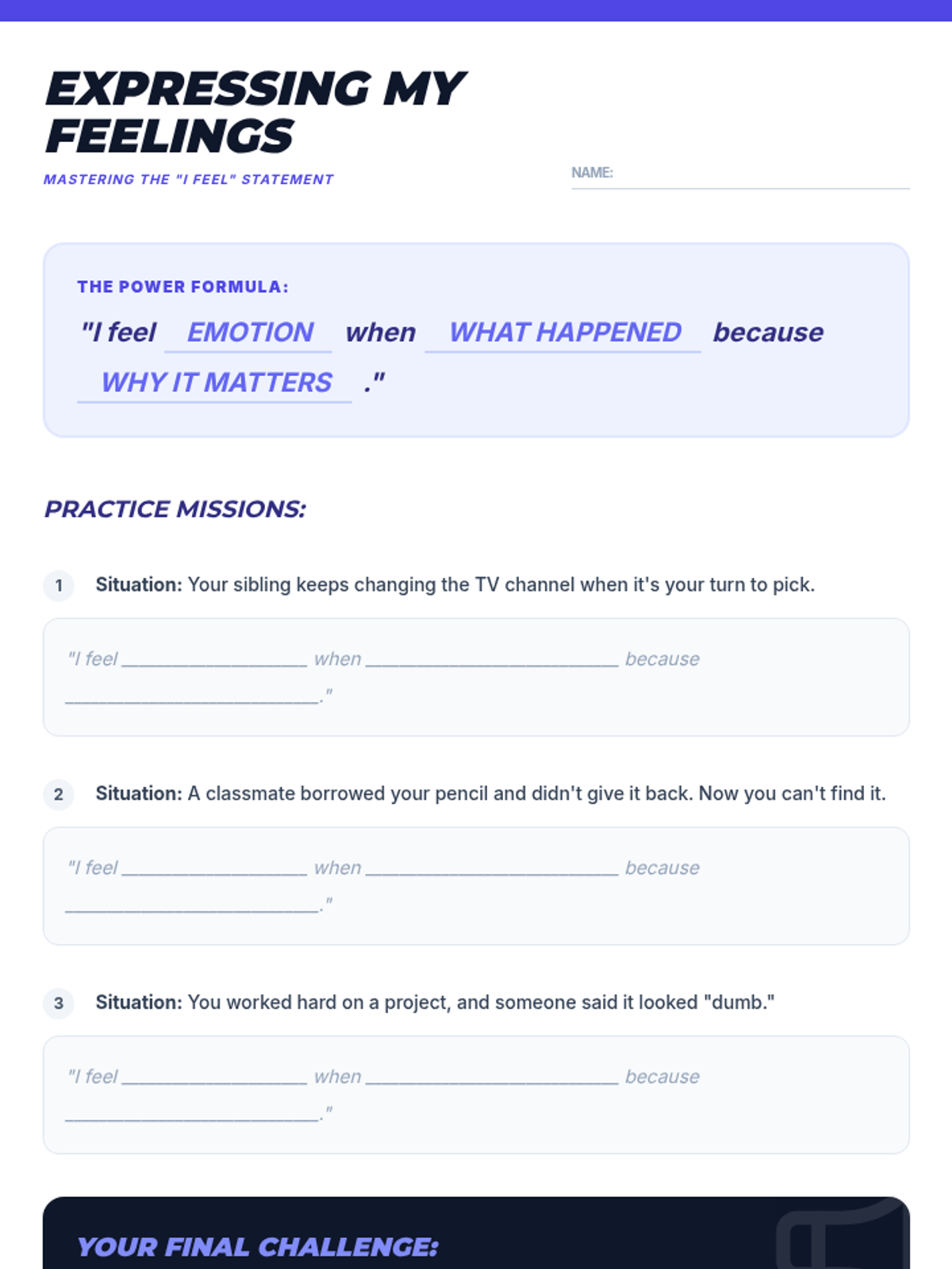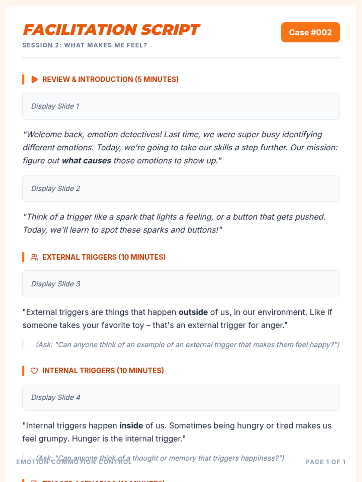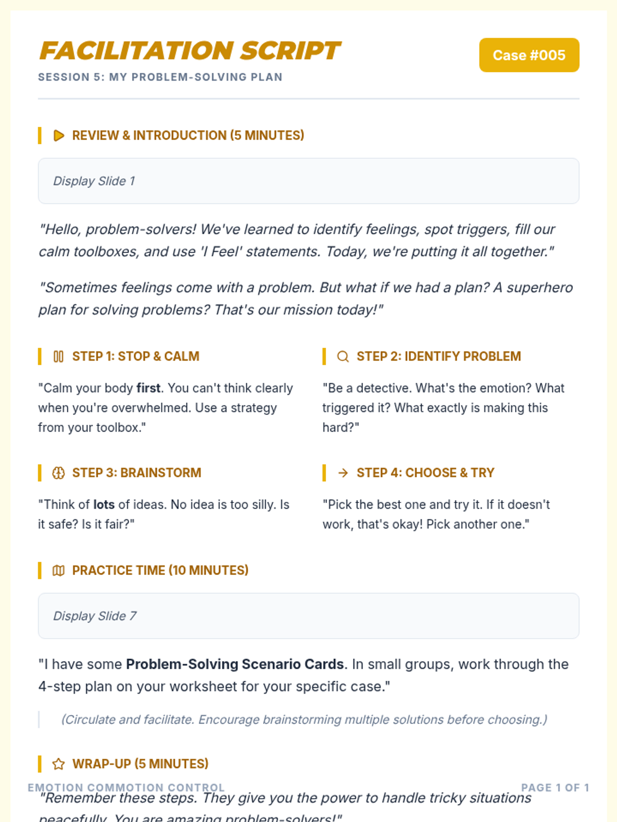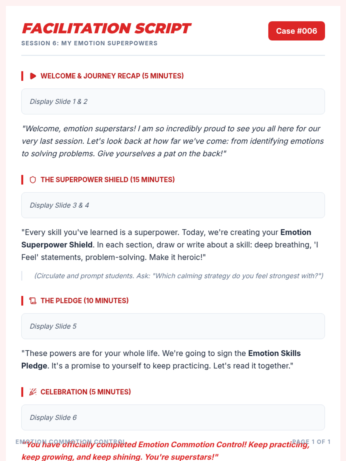 A 6-session Tier 2 social-emotional learning curriculum for 4th graders, focusing on identifying emotions, understanding triggers, developing calming strategies, and effective communication.