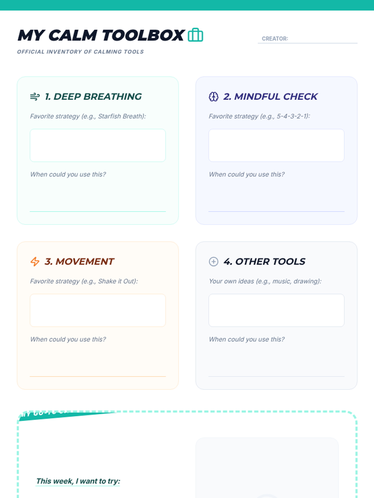 A 6-session counseling group designed to help students identify triggers, understand physical symptoms of anxiety, and build a personalized toolkit of coping strategies through a 'Calm Explorer' theme.