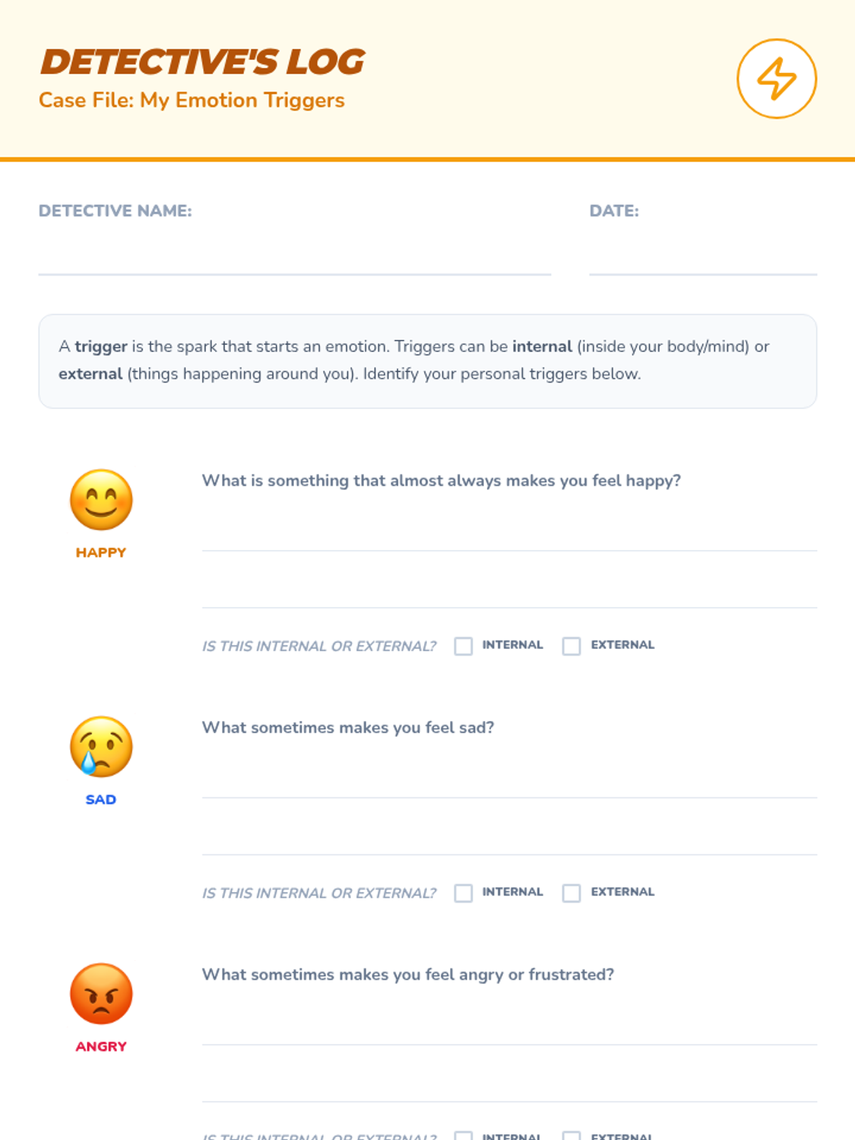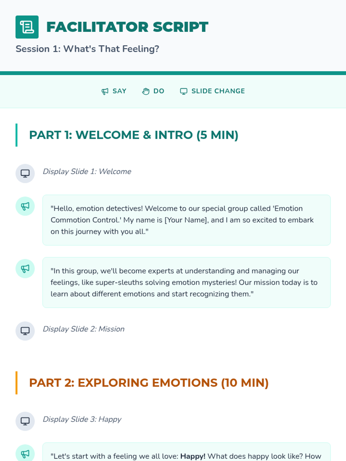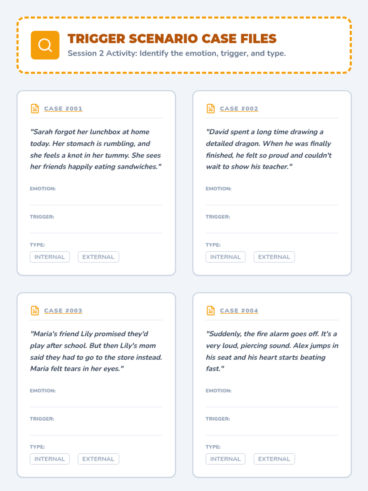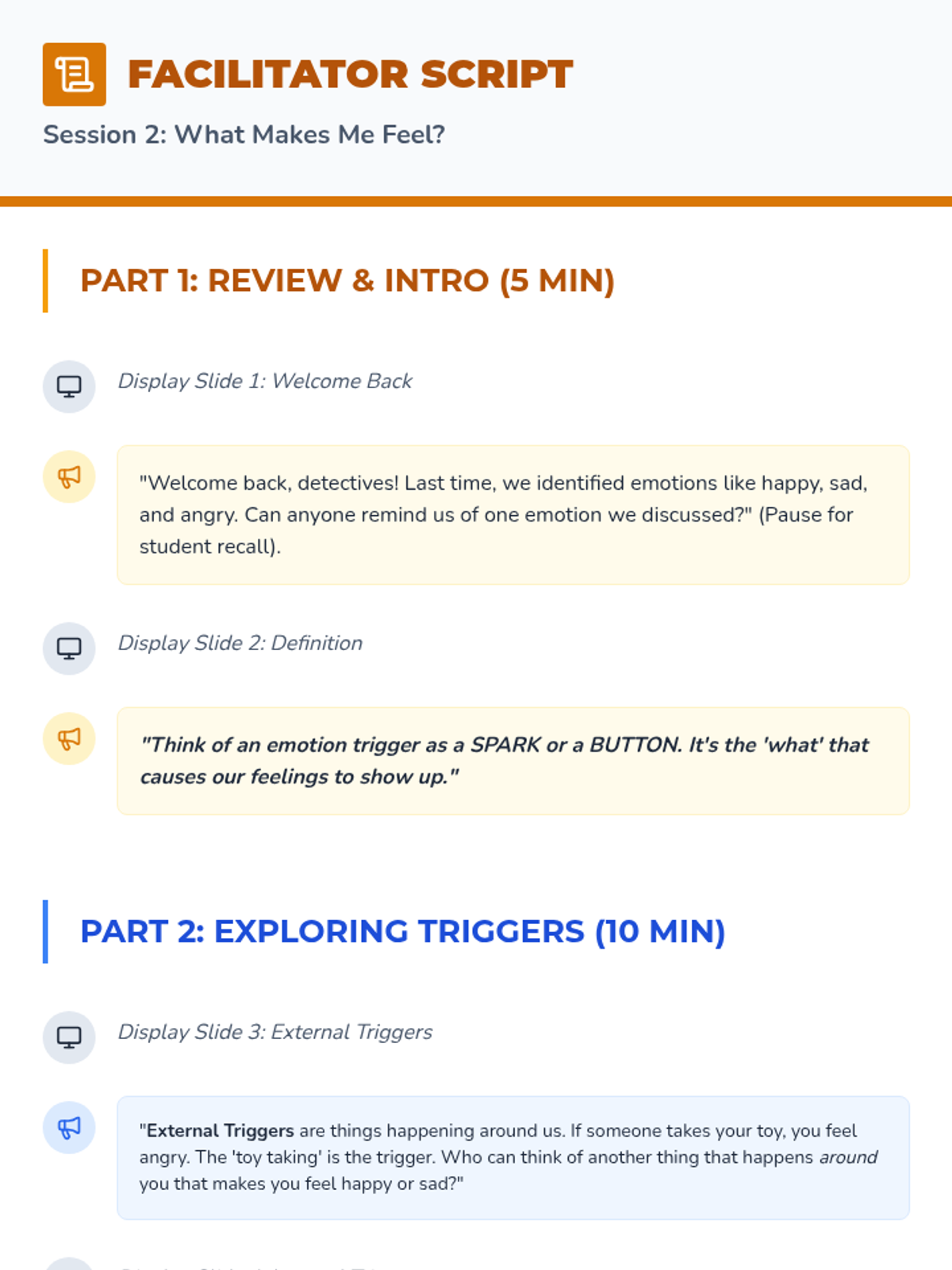 A comprehensive 6-session Tier 2 intervention curriculum for 4th-grade students focused on emotional identification, trigger awareness, calming strategies, assertive communication, and problem-solving.