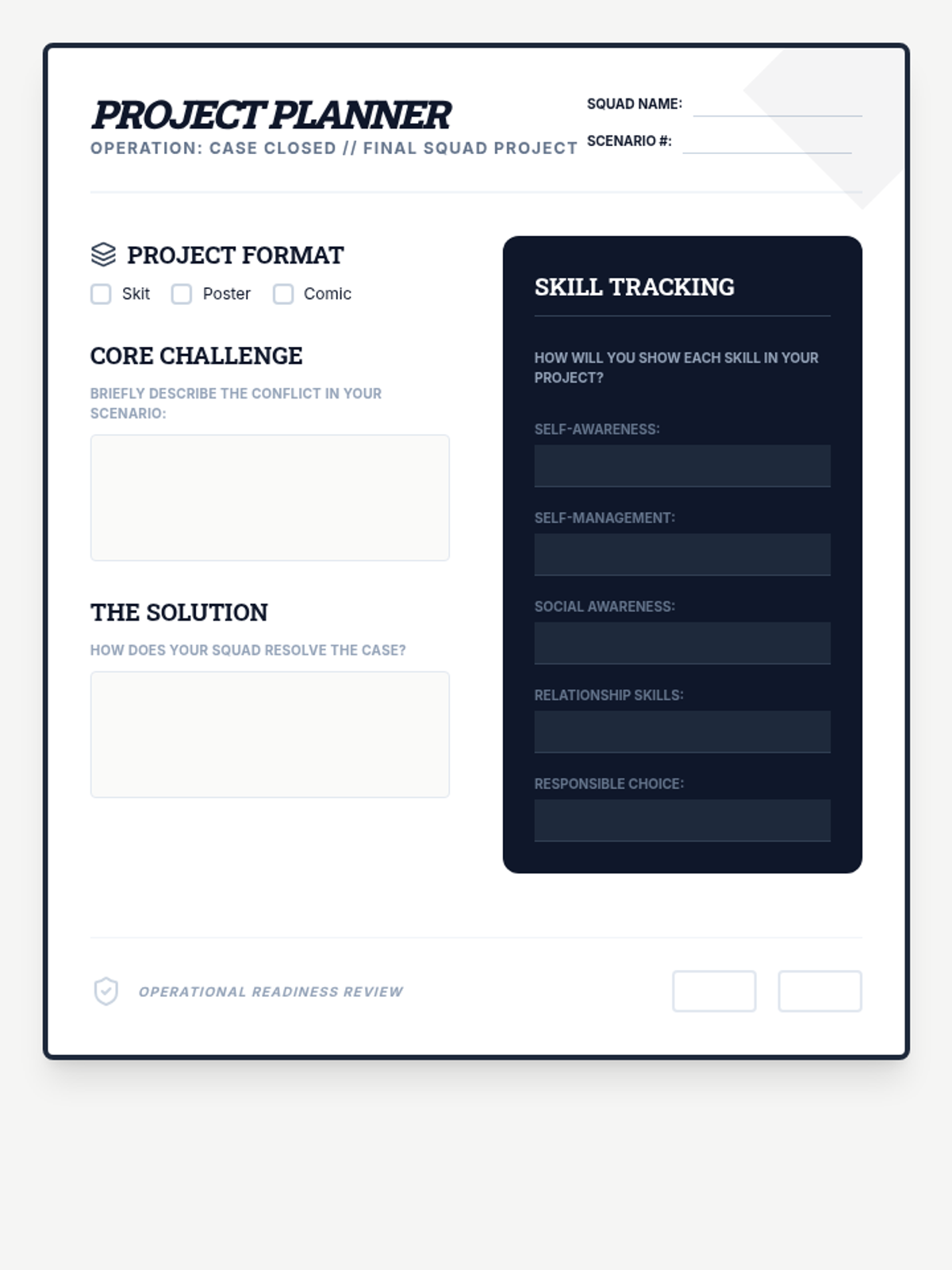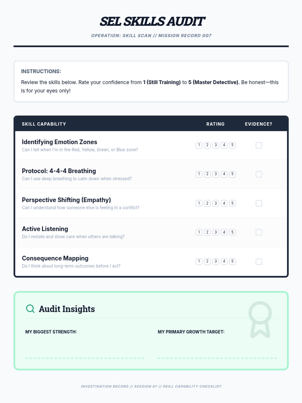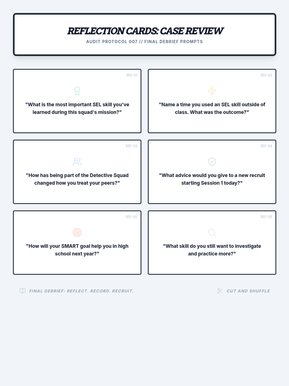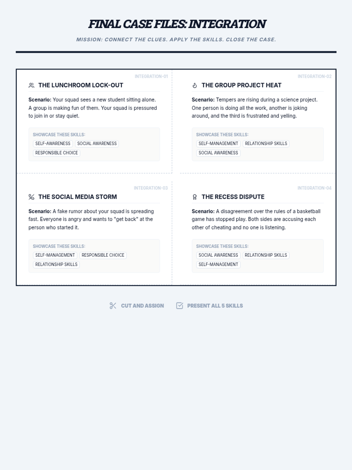 An 8-session intensive social-emotional learning program designed for middle school students with emotional disturbances and ODD, using a detective-themed approach to master self-awareness and relationship skills.