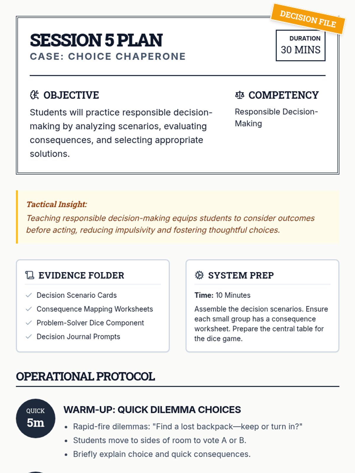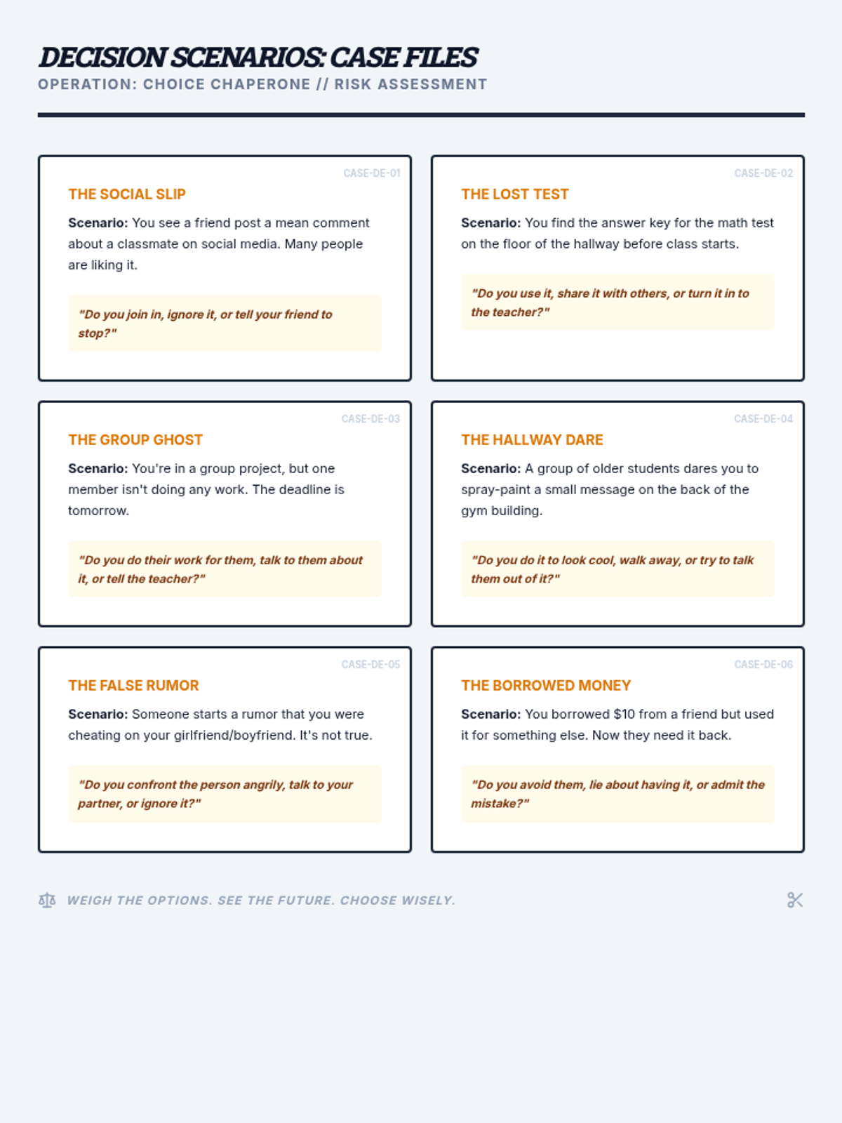 A series of lessons designed to equip middle school students with critical thinking and decision-making skills for academic and personal success.