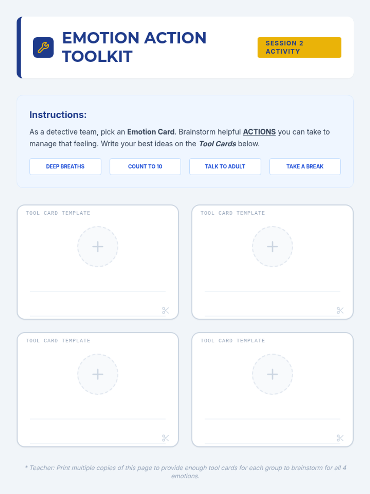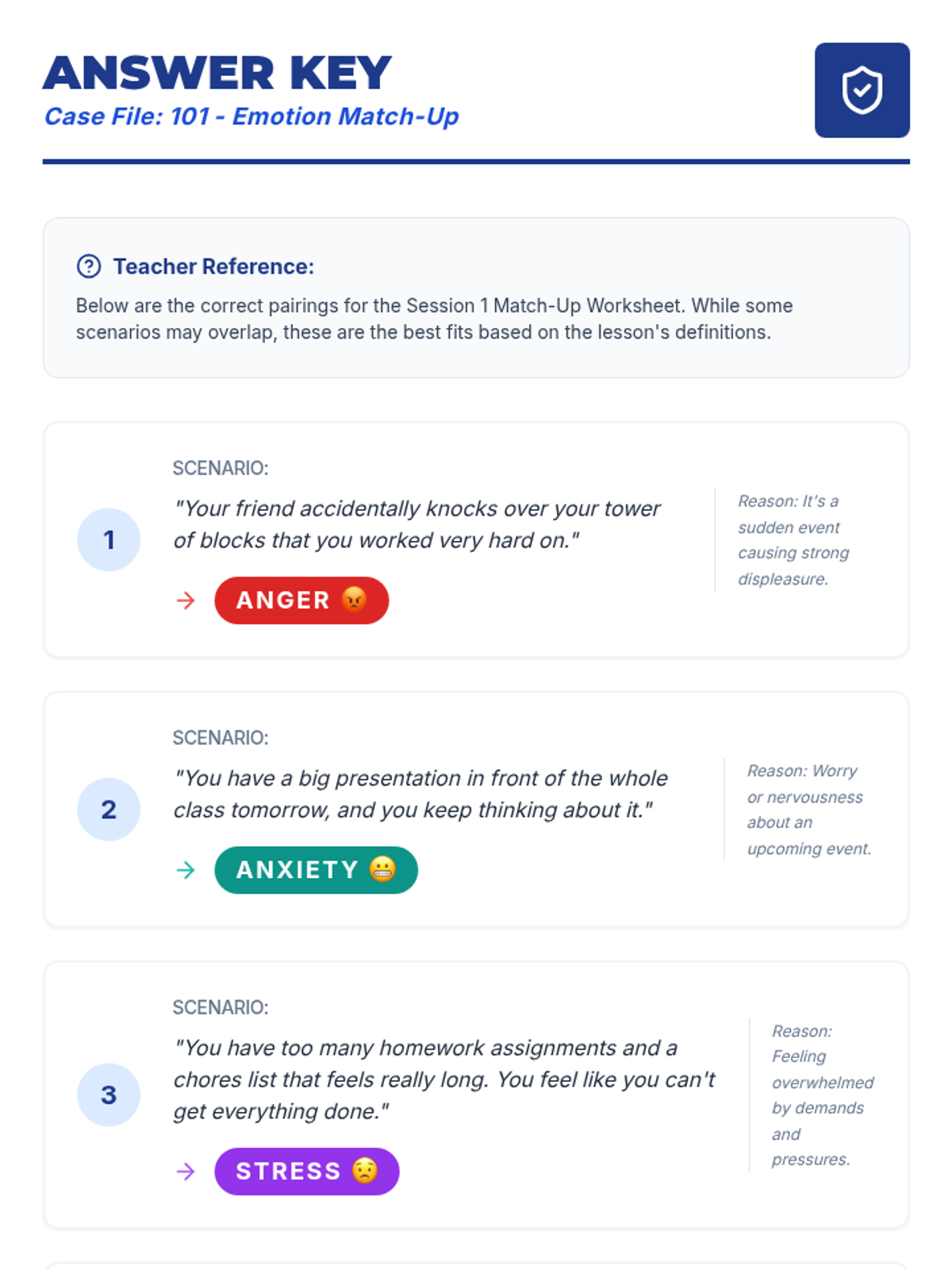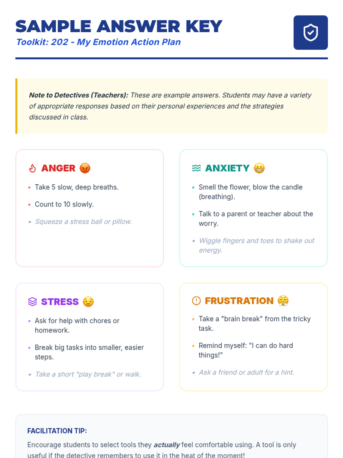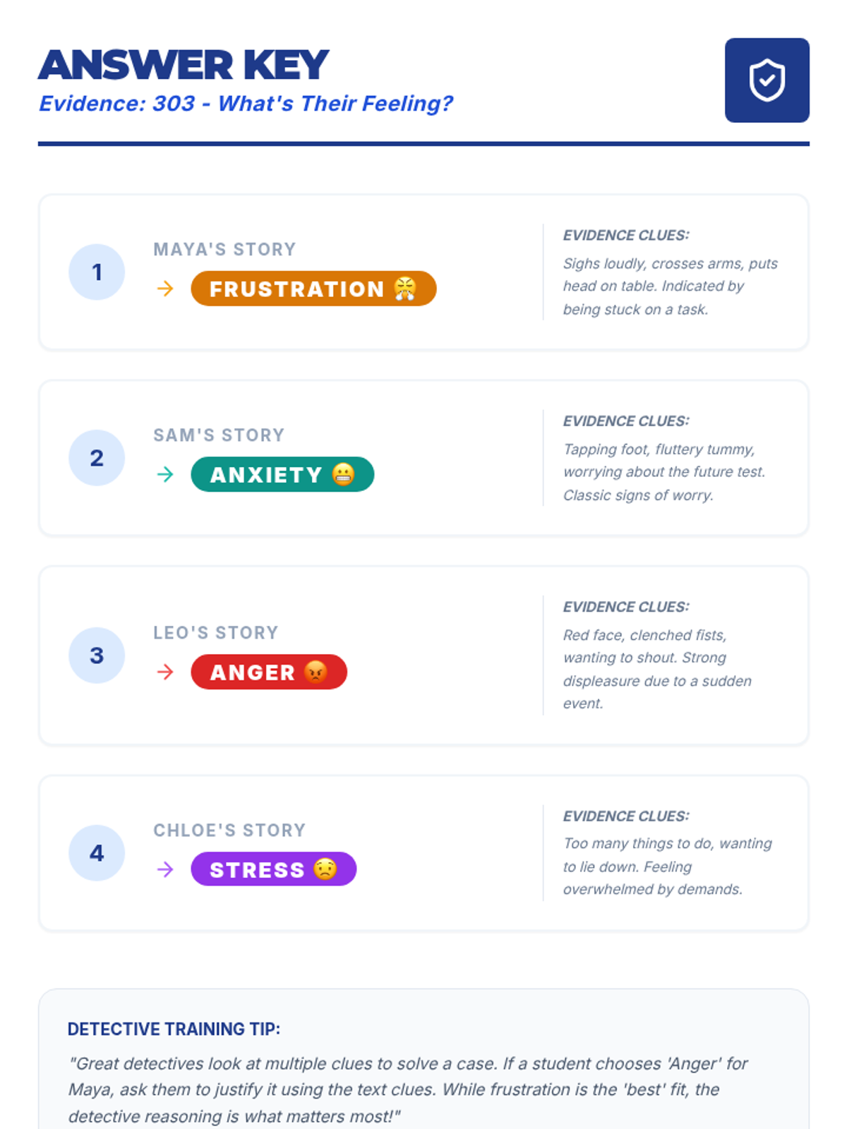 A 6-week Tier 2 social-emotional learning series for 3rd graders focused on identifying, managing, and expressing complex emotions through a detective-themed lens.
