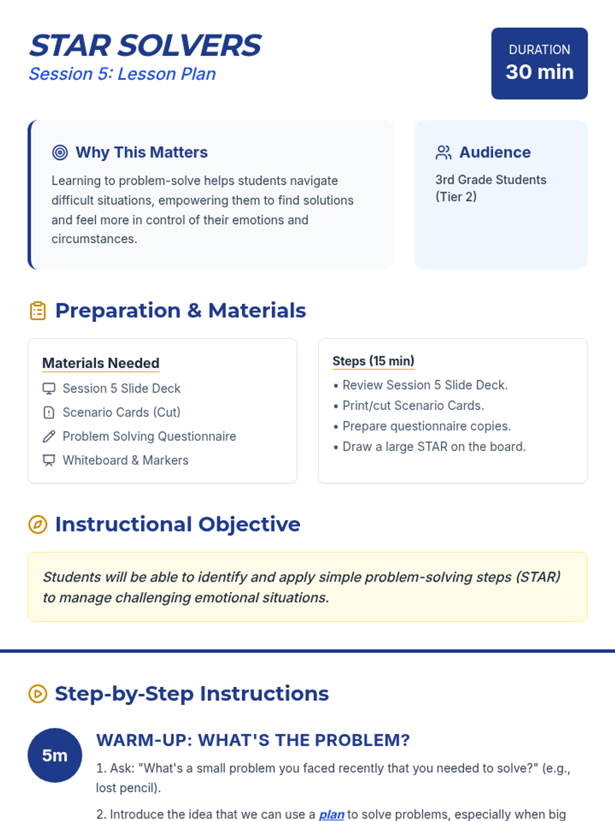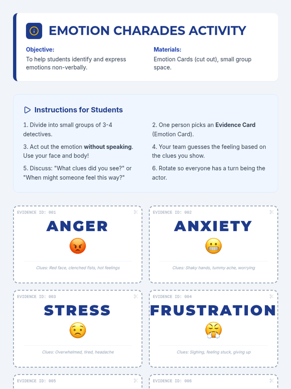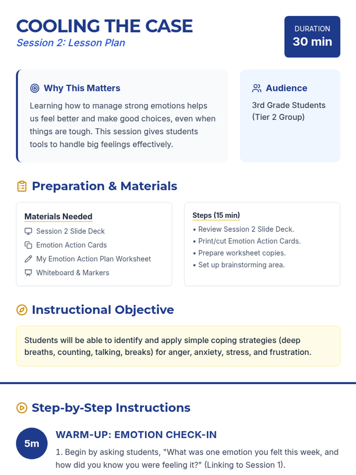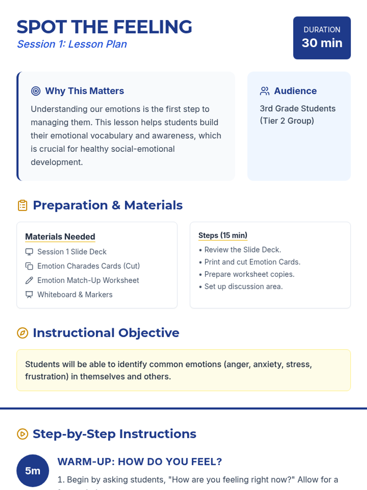 A 6-week Tier 2 social-emotional learning series for 3rd graders focused on identifying, managing, and expressing complex emotions through a detective-themed lens.