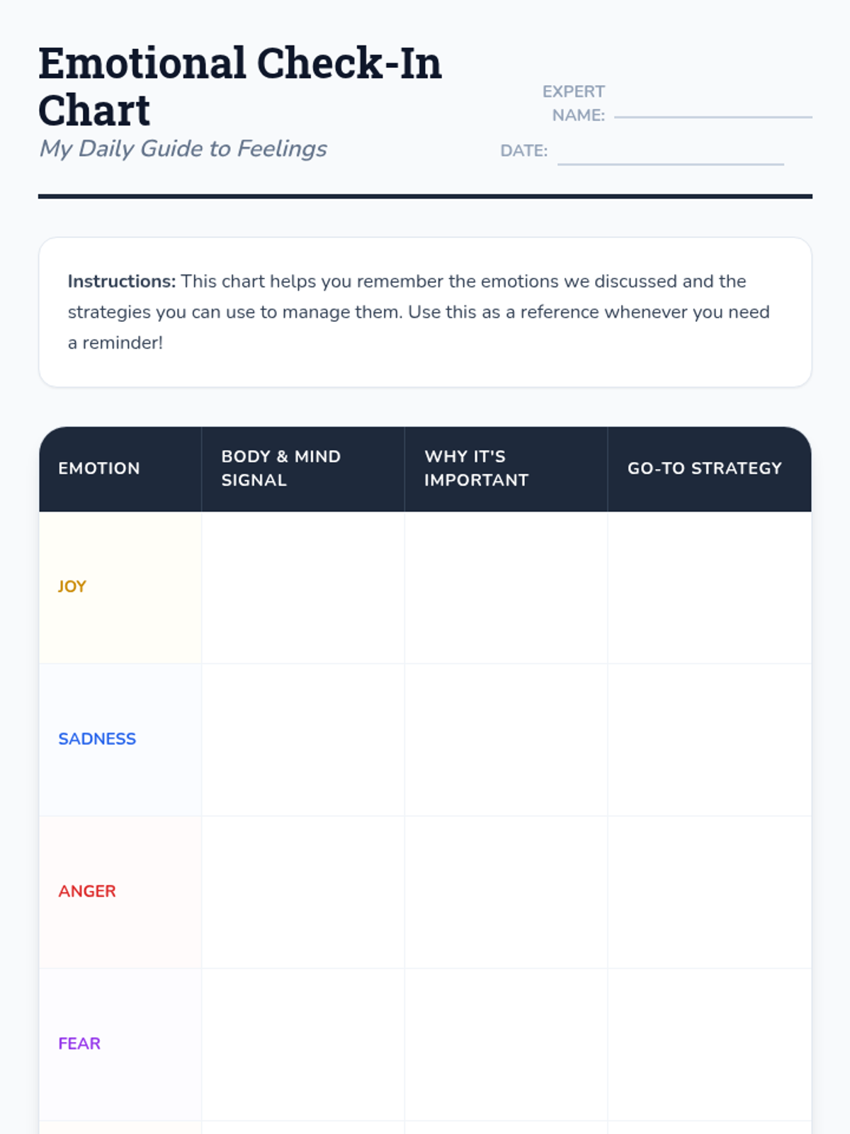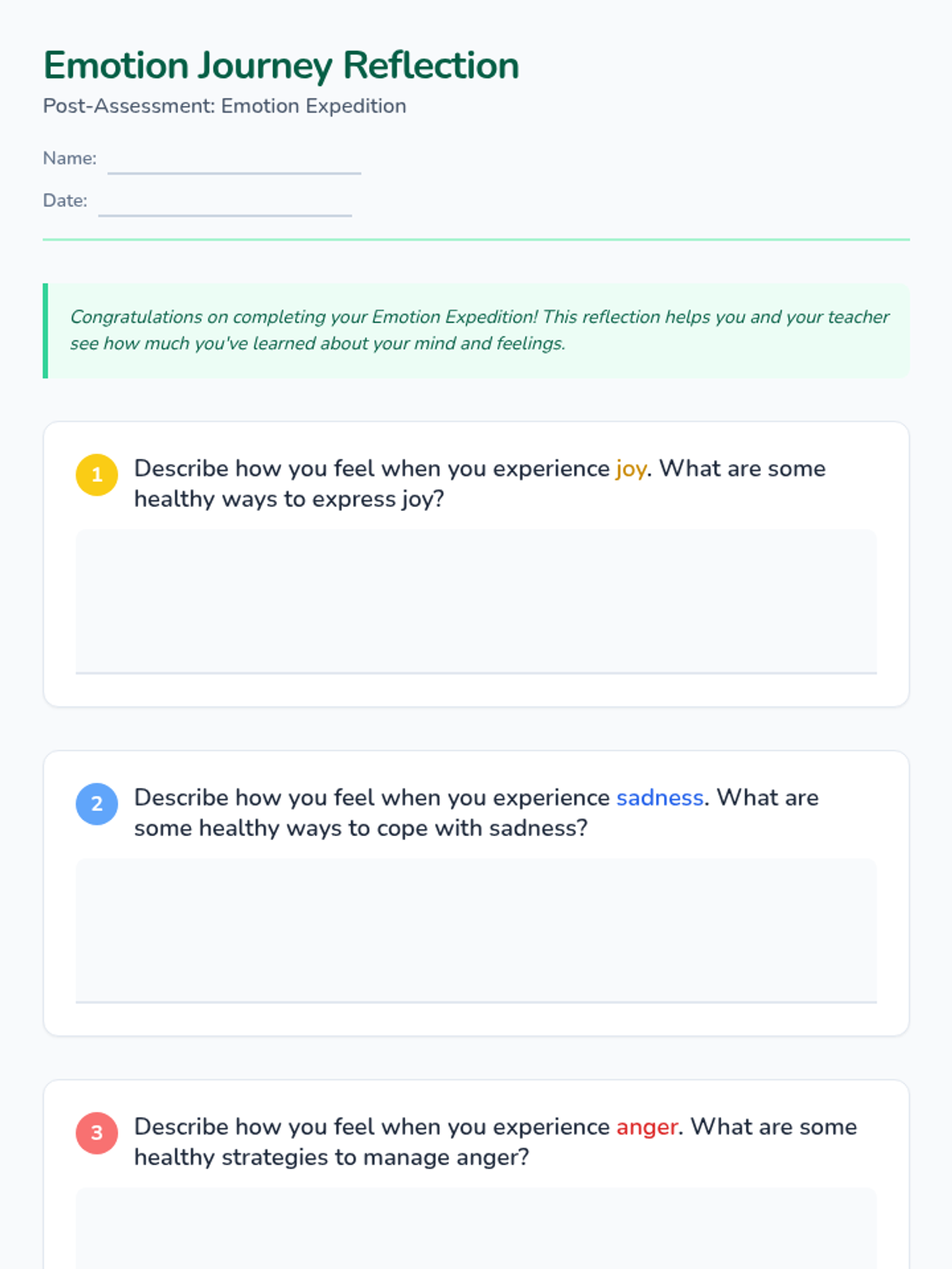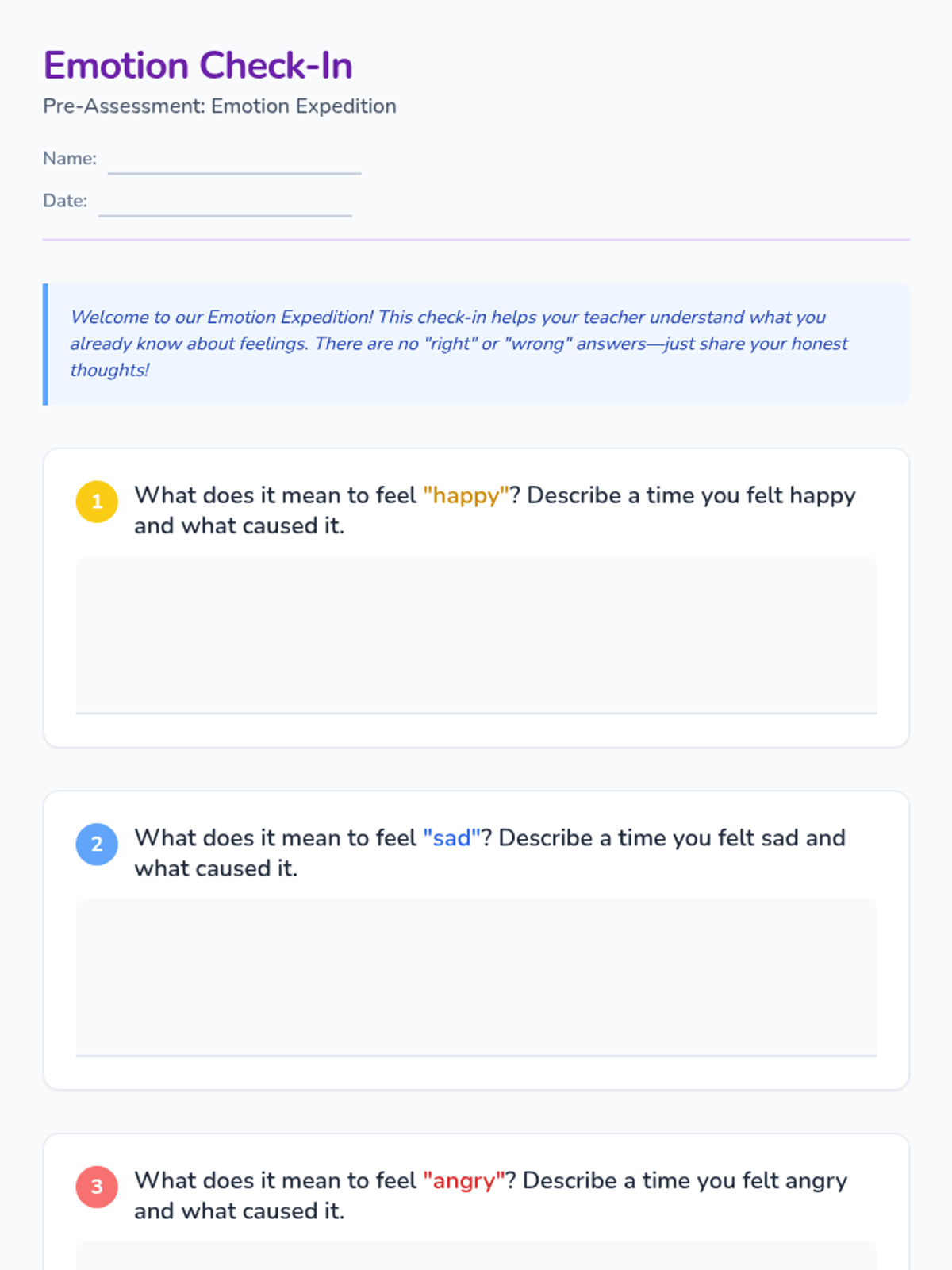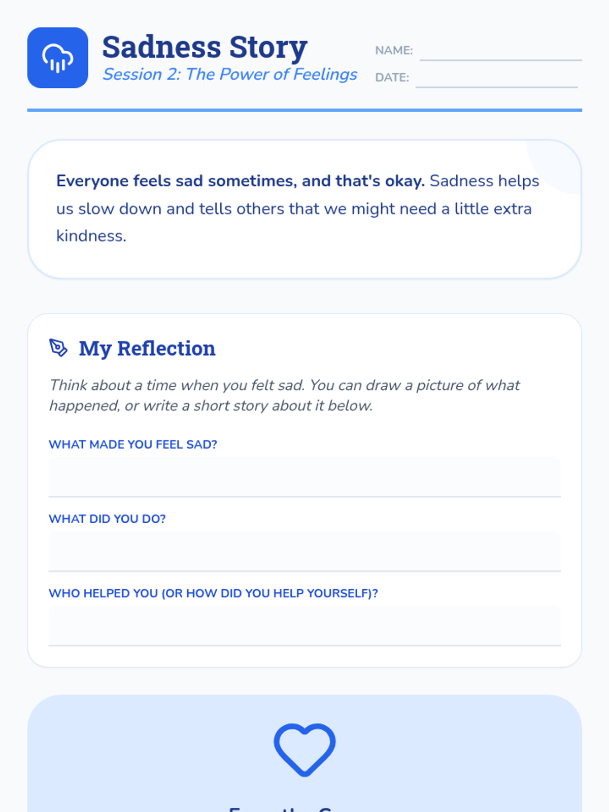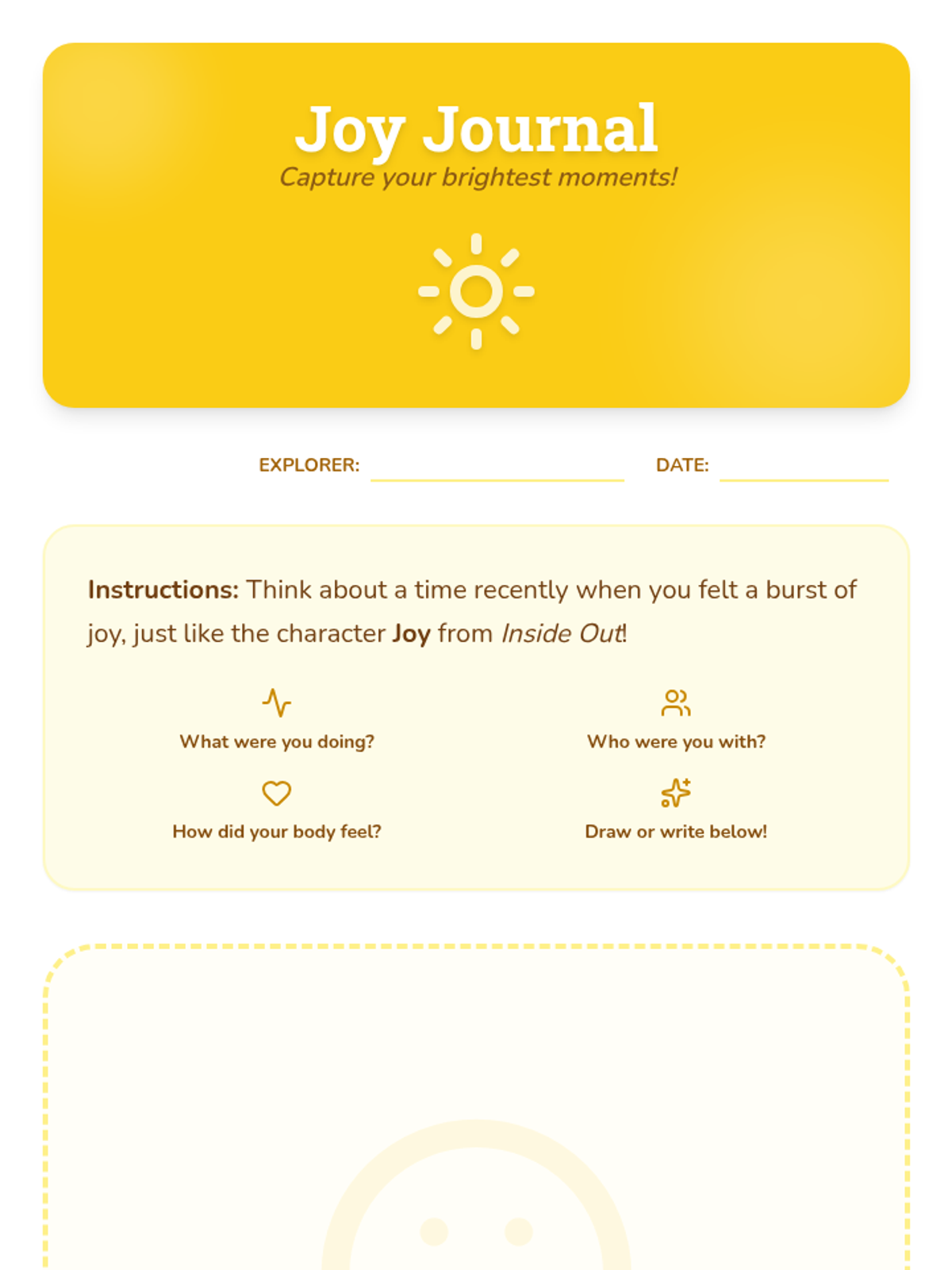 An 8-session Tier 2 emotional regulation curriculum for 4th and 5th graders using characters from Inside Out. Students explore identifying and managing Joy, Sadness, Anger, Fear, and Anxiety through interactive activities and reflection.