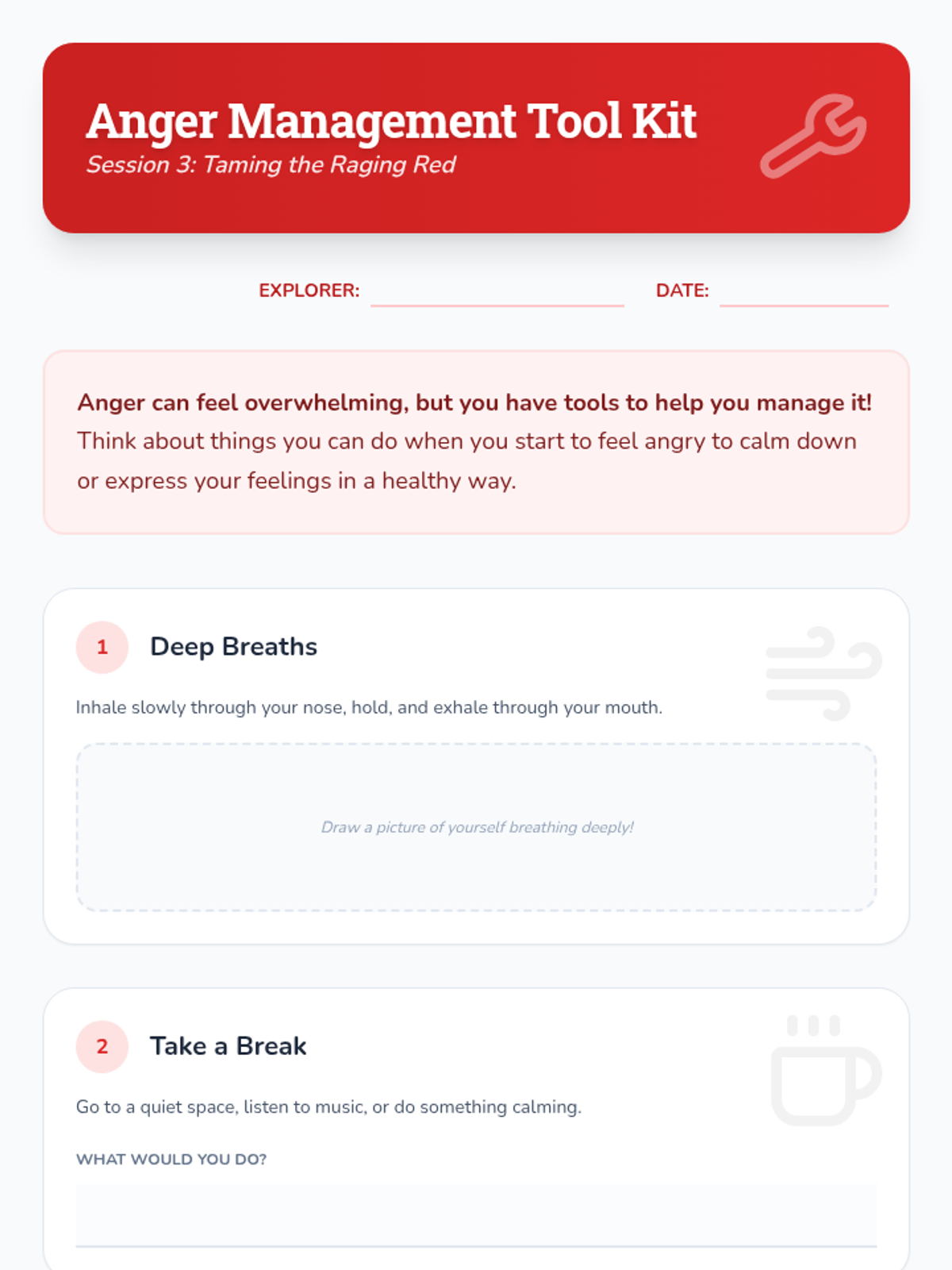 A 4-week small group series for 6th graders focused on identifying frustration triggers and implementing healthy coping strategies for academic, athletic, and home-based stress.