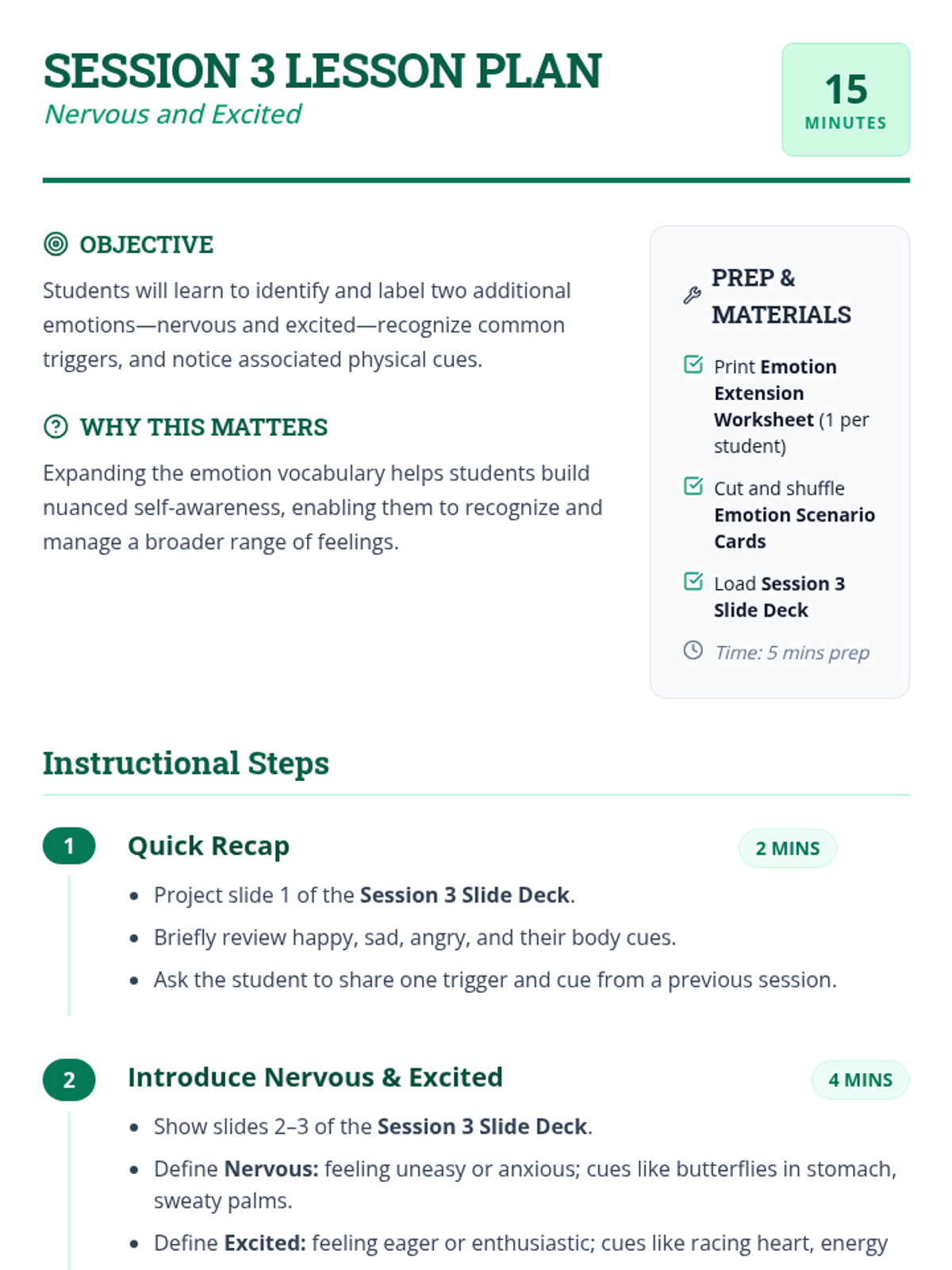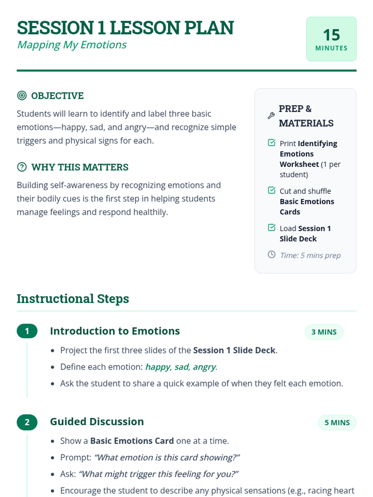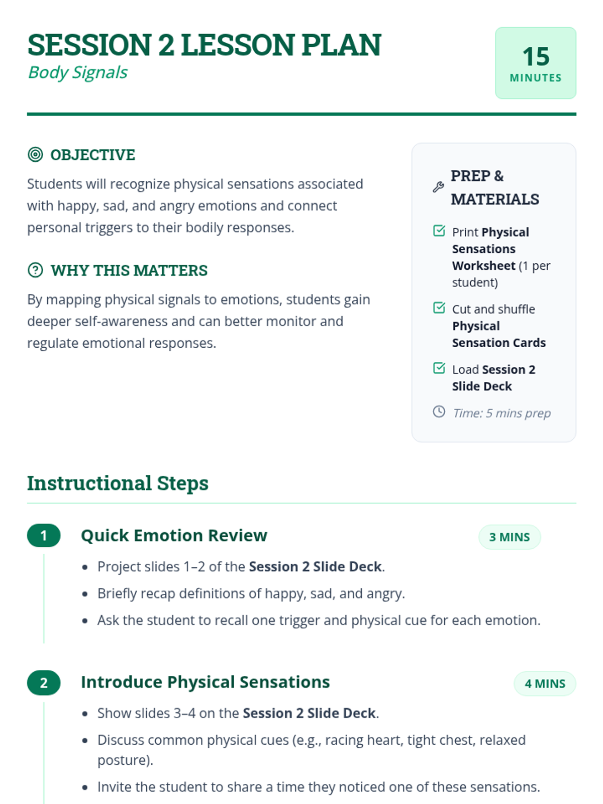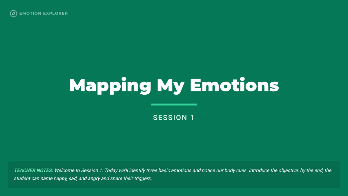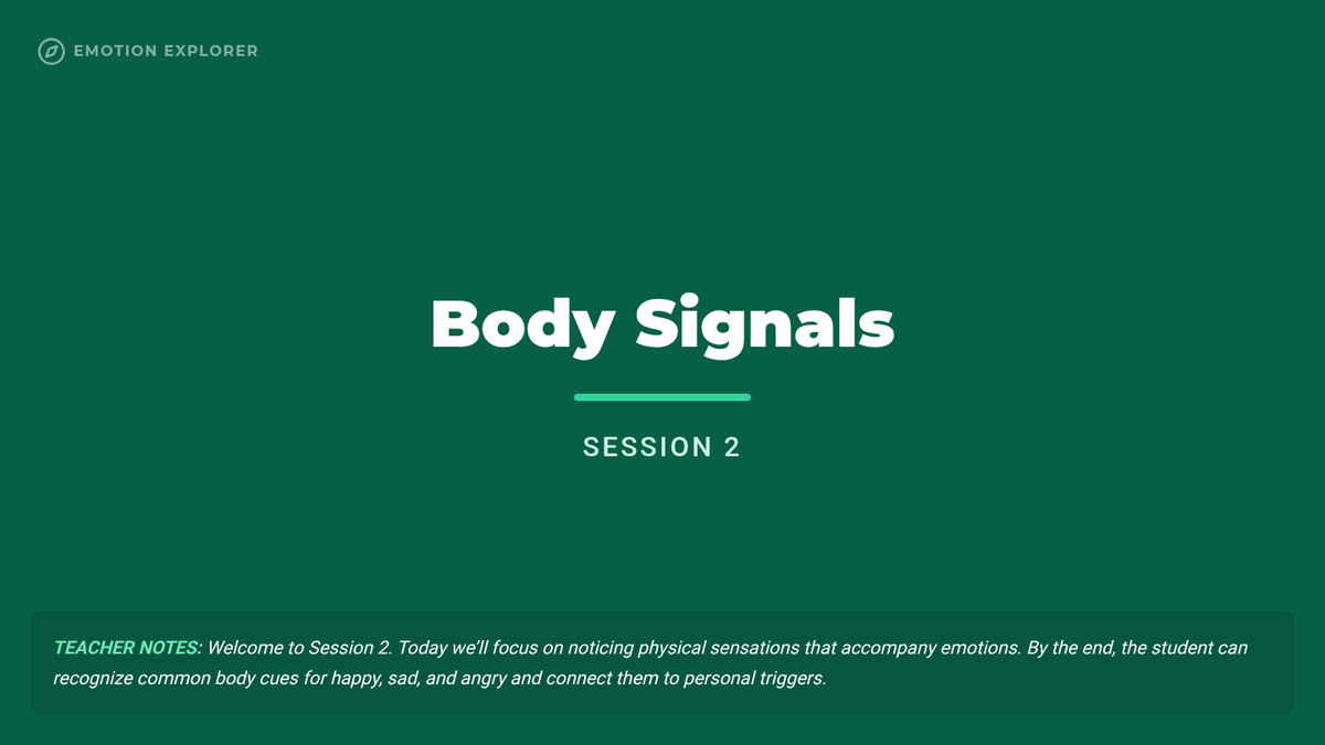 A 6-session mini-course for middle school students to build self-awareness, identify emotional triggers, and recognize bodily signals for healthy emotional regulation.