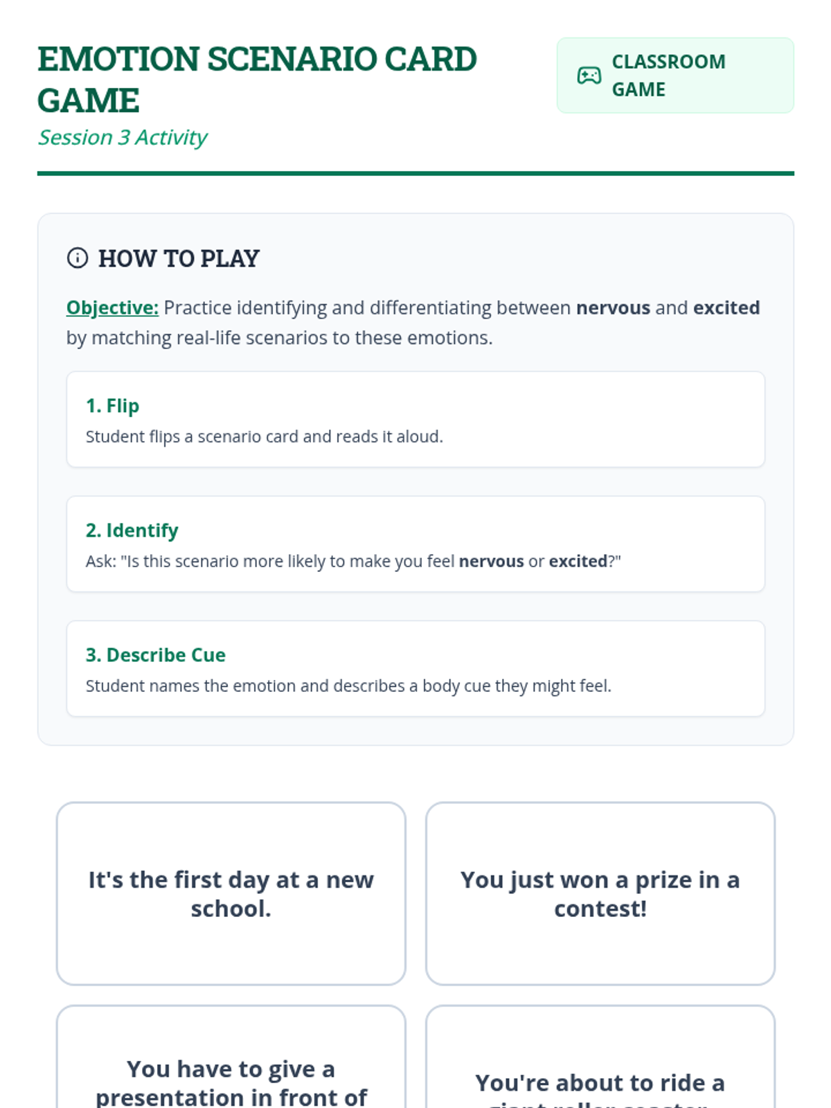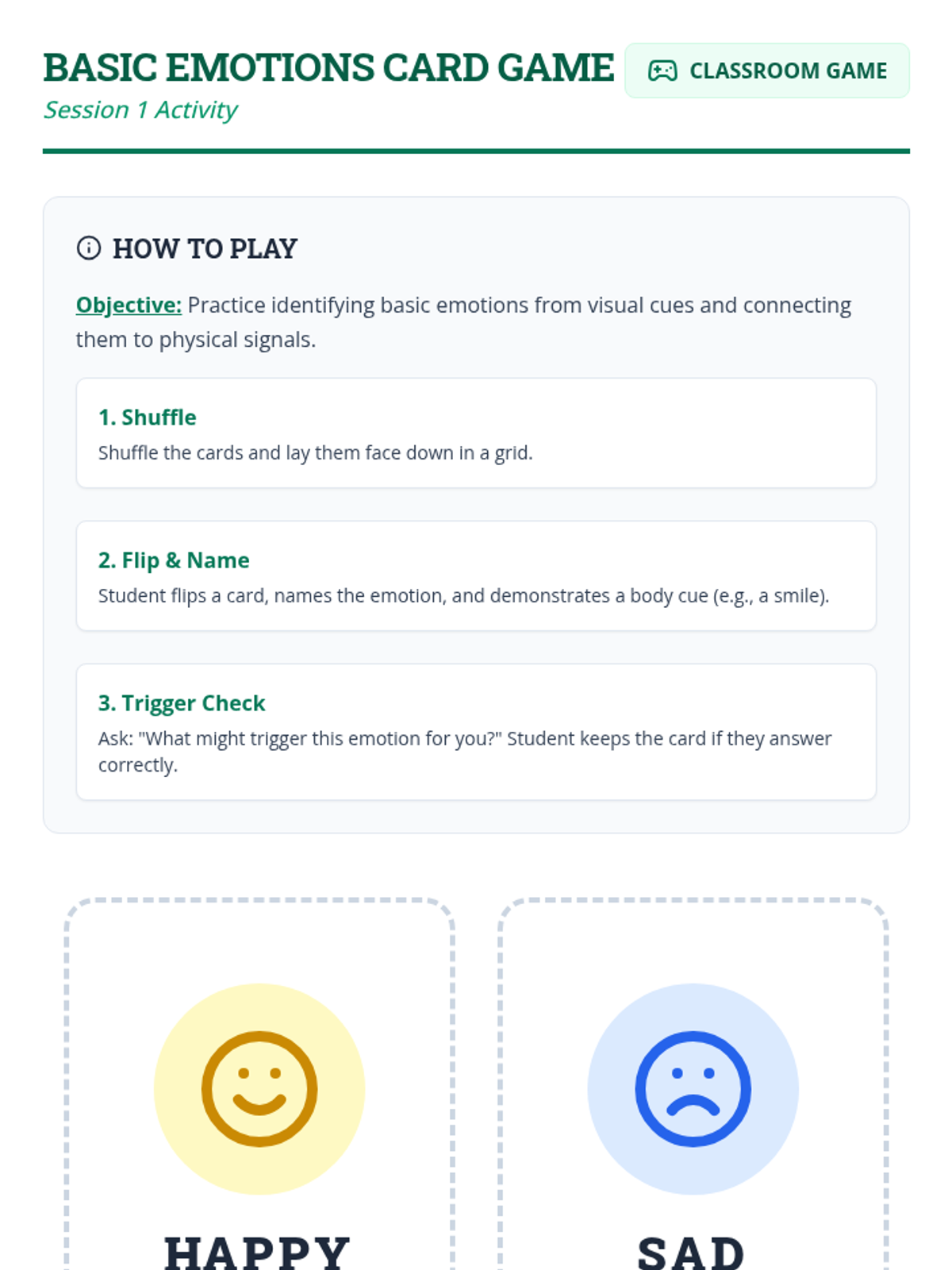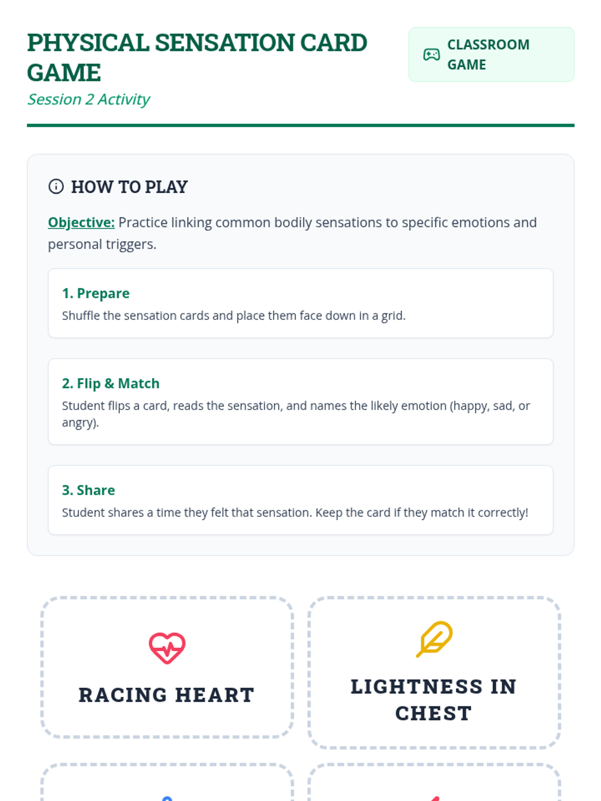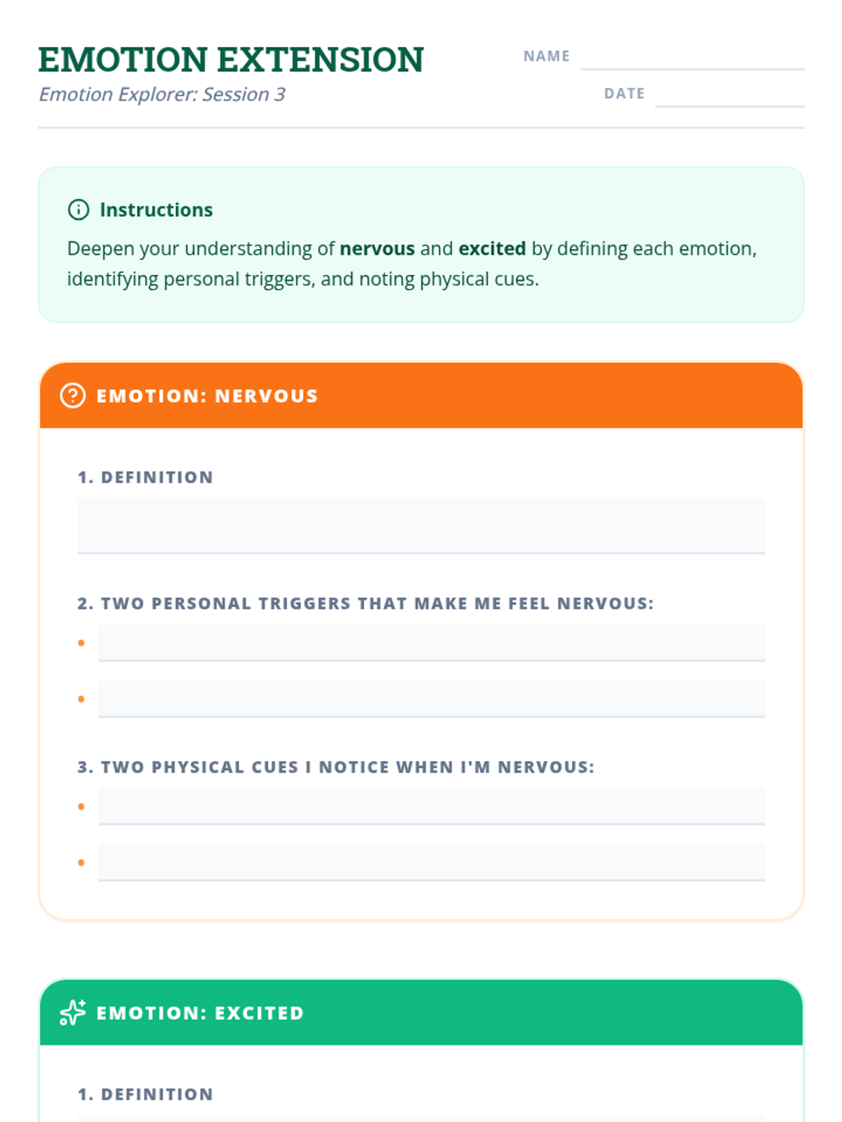 A 6-session mini-course for middle school students to build self-awareness, identify emotional triggers, and recognize bodily signals for healthy emotional regulation.